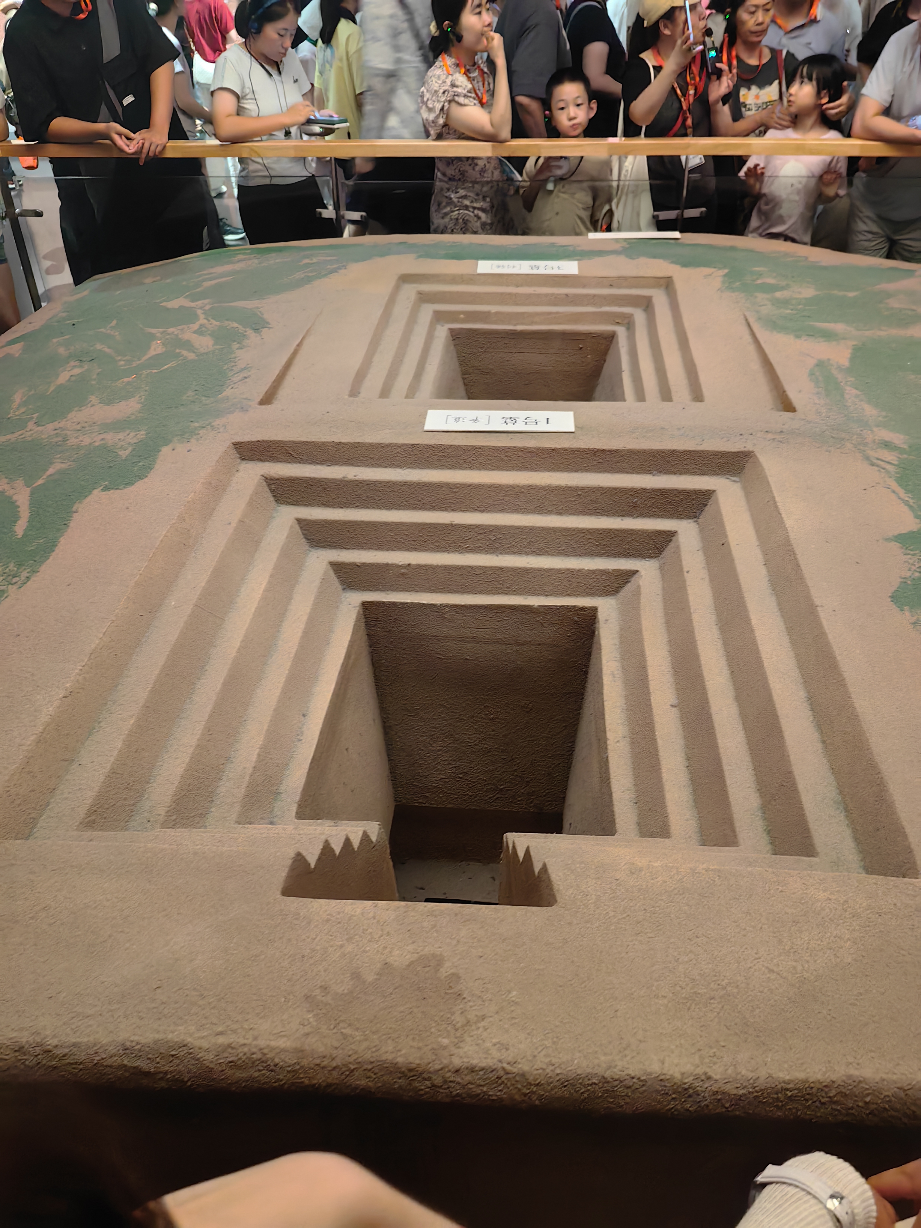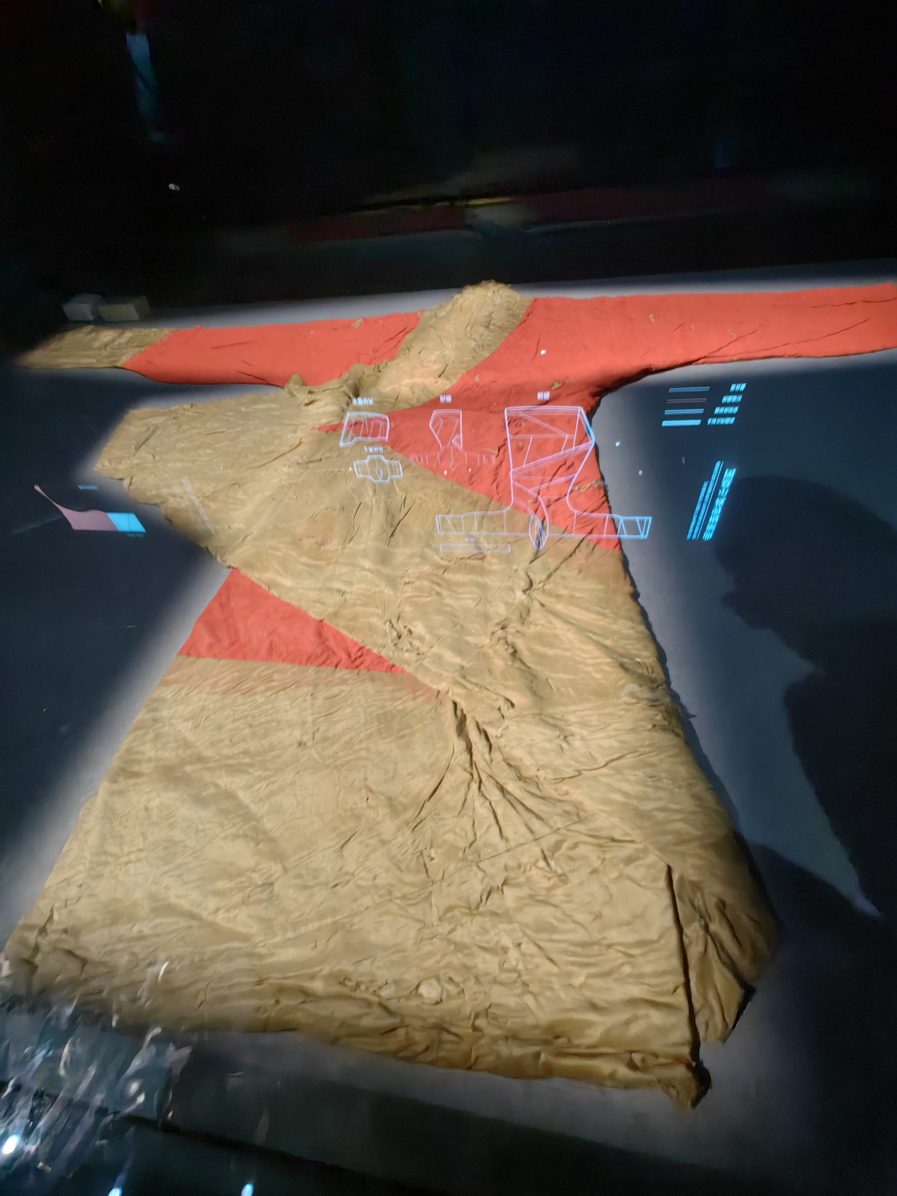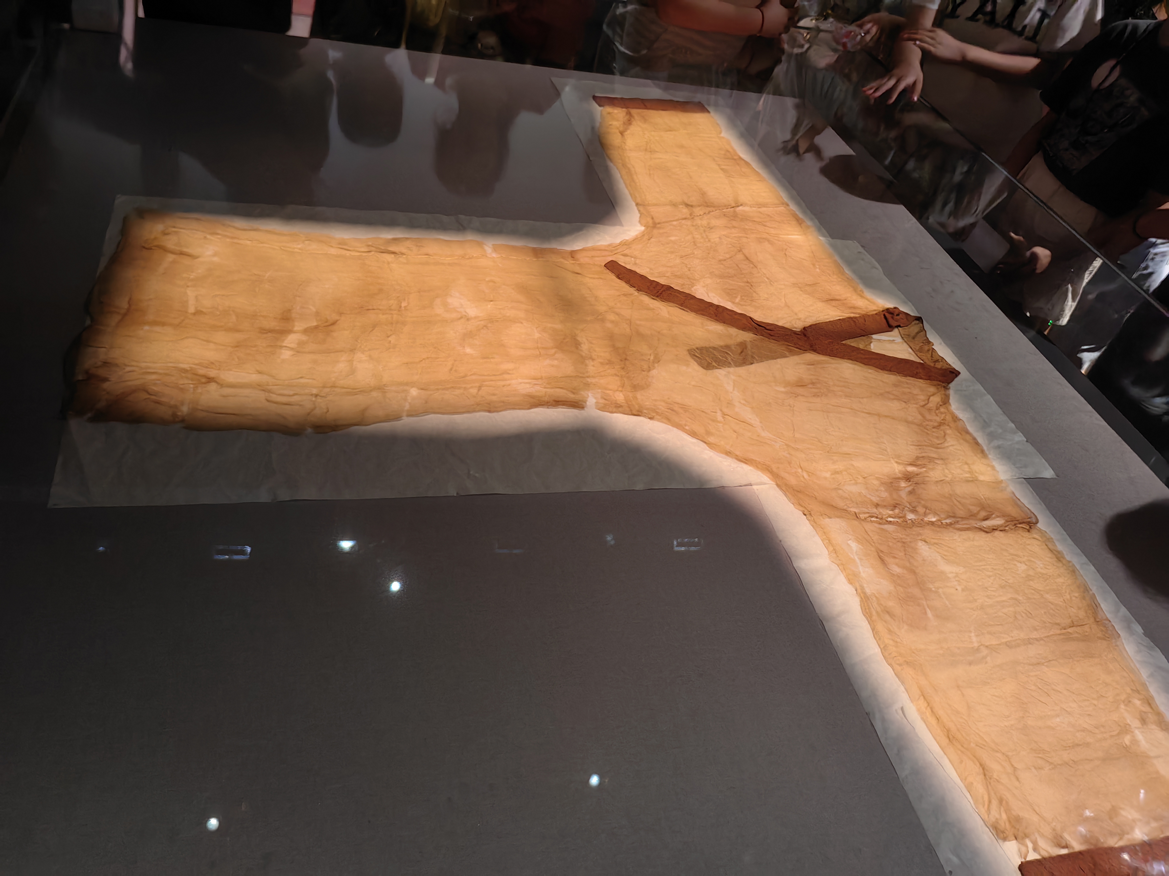 西汉时期有一个叫做利苍的人,早年随刘邦征战,后任长沙国丞相。因镇守长沙国、辅佐长沙王有功,在长沙王吴臣平定淮南王英布叛乱中立下功劳,于汉惠帝二年(前193年)四月被封为第一代轪侯,食邑七百户。 马王堆发掘的汉墓就是汉初长沙国丞相轪侯利苍及其妻儿的墓葬,距今已有2100多年。其墓3座,东土冢编为1号墓(图二大的这个墓穴),是利苍之妻辛追的墓;西土冢编为2号墓(图三),为利苍墓;1号墓南面一座编为3号墓,3号墓主人是他们的一个儿子,亦即第二代轪侯(图二小的墓穴)。 为什么辛追夫人的墓比她丈夫和儿子的墓穴都要大呢? 为什么辛追夫人的尸体能保持的如此完整? 他们一家的生活是怎么样的呢? 他的儿子又是什么样的身份,怎么去世的? 以上各种疑问在这里都能得到答案,2号利苍墓被发现有几十个盗洞,从唐朝时期开始一直被偷盗,但是从1号和3号墓出土了无数的文物,从生活器具到各种天文医药等方面的帛书,这里还有根据出土的俑人还原的宴客影像视频以及国宝级文物T型帛画(图九),它作为西汉贵族葬礼中引导灵魂升天的关键器物,被称为"非衣",是连接地下、人间、天庭三界的媒介,承载着汉代人对永生的追求。辛追夫人去世的时候是50岁,考古发现,她居然是因为吃瓜去世的。 众多的文物中,我印象最深刻的是六,七,八,这三张照片。 第六张是出土的木质漆器之一,它的颜色如此鲜艳,以至于我曾怀疑它是个复制品,不用怀疑,它就是出土的文物原件,是一种叫做漆树的汁液,混合上朱砂或者是黑炭,调制出如此鲜艳的红色或黑色。 辛追夫人的随葬物品丰富多样,除了木质漆器,不仅有吃喝的东西,还有整整六箱衣服,有单衣、单裙、手套和袜子等。图七是朱红菱纹罗丝棉袍,应该是一件冬天的蚕丝棉的袍子,材质上看非常的柔软轻薄,又保暖又轻便。 第八张照片,可别小看了它,它可是博物馆的镇馆之宝——素纱单衣,仅重49克,薄如蝉翼、轻若云雾。多数学者认为它应穿在绵袍之外,既可增其华丽,又具朦胧美感,也有学者认为是内衣。这是迄今所见最早、最薄、最轻的服装珍品,是西汉时期纺织巅峰之作,代表了汉初养蚕、缫丝、织造工艺的最高水平。据说把它重复折叠起来,可以放进像火柴盒大小的盒子里。