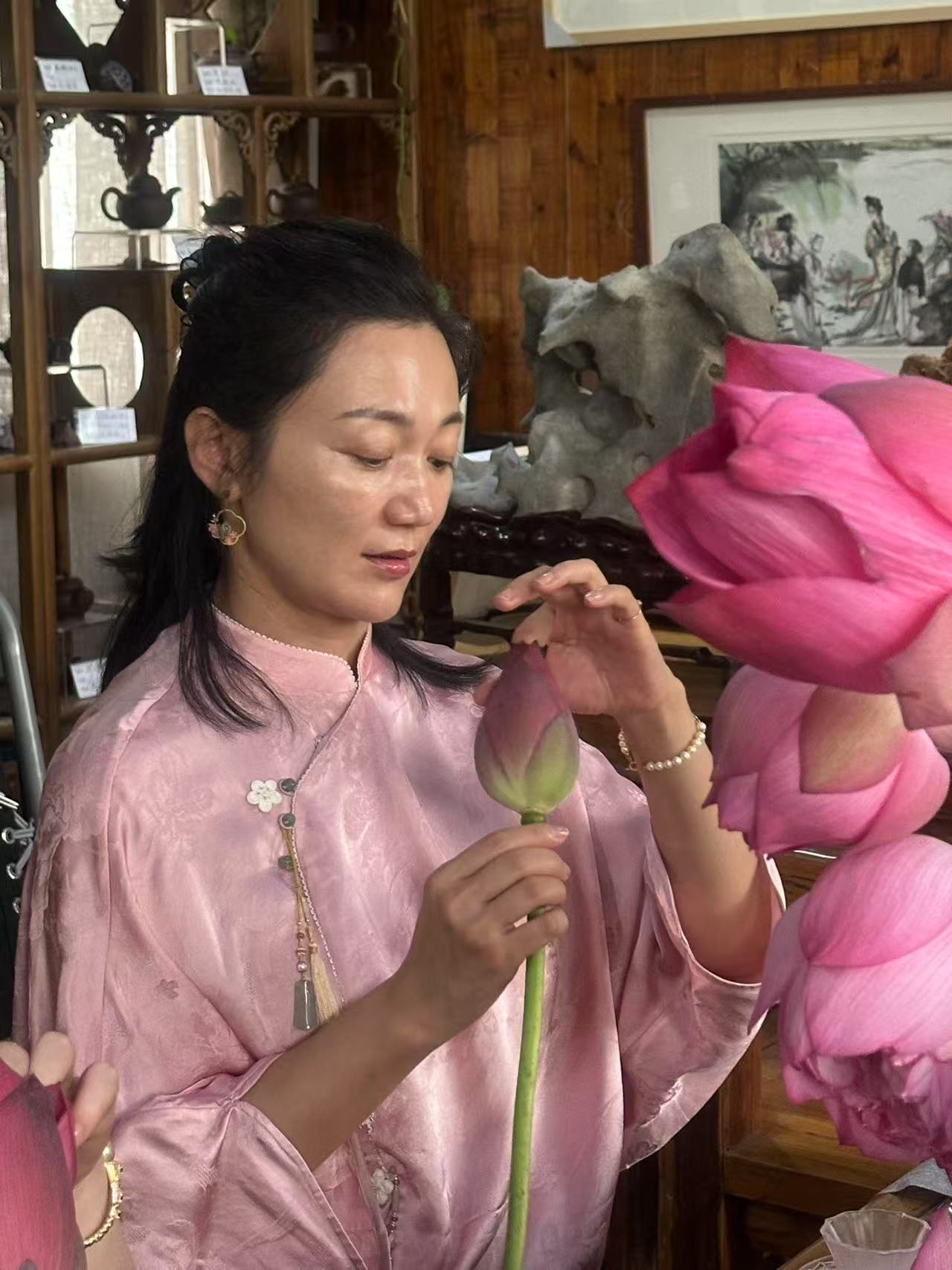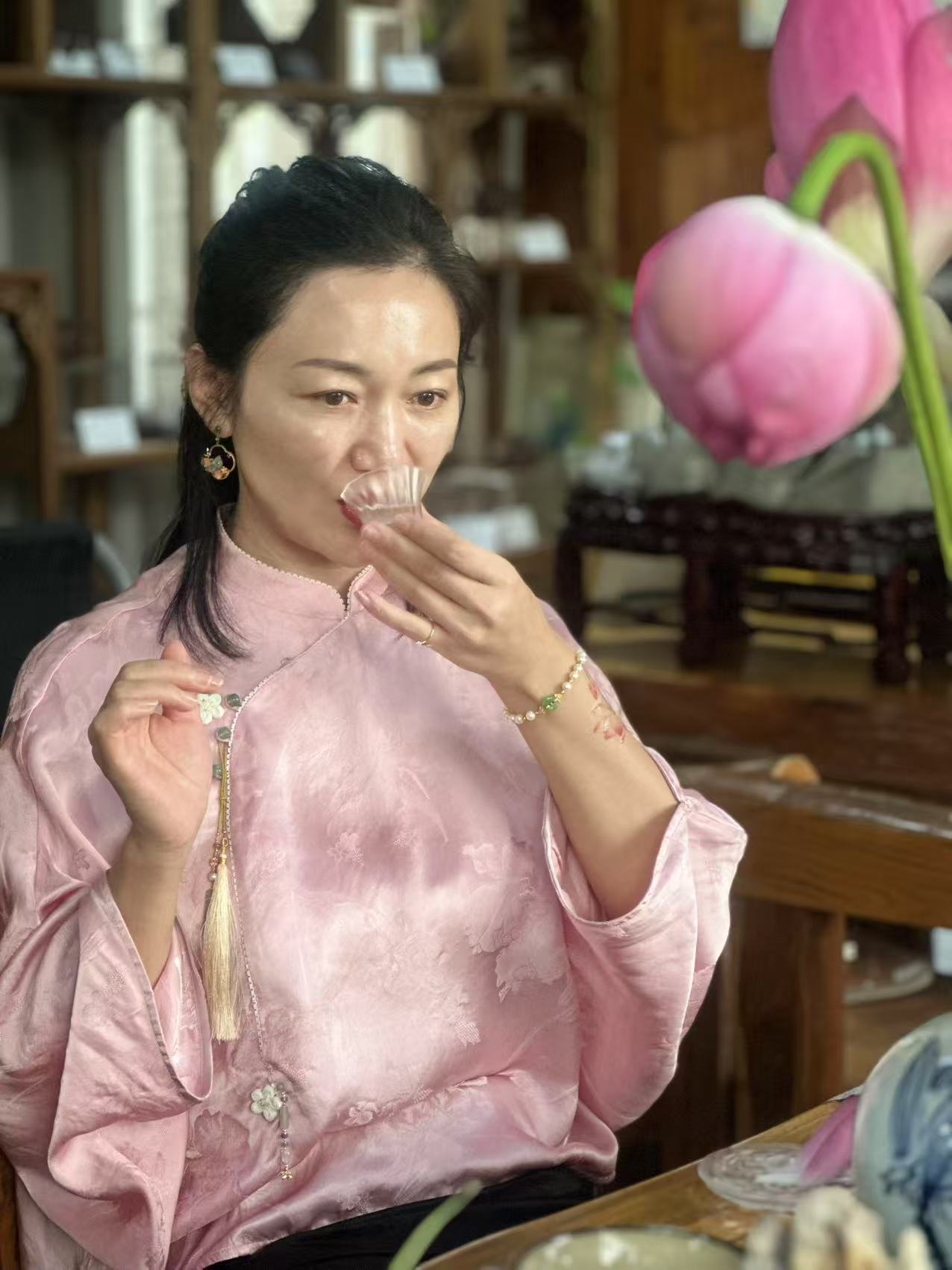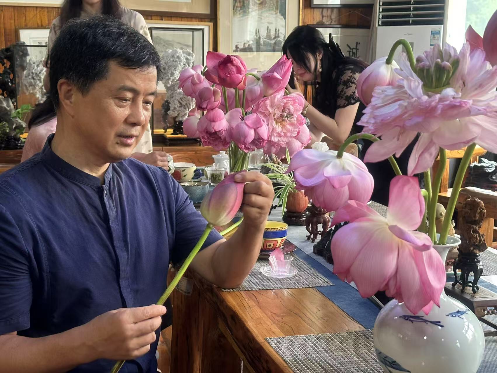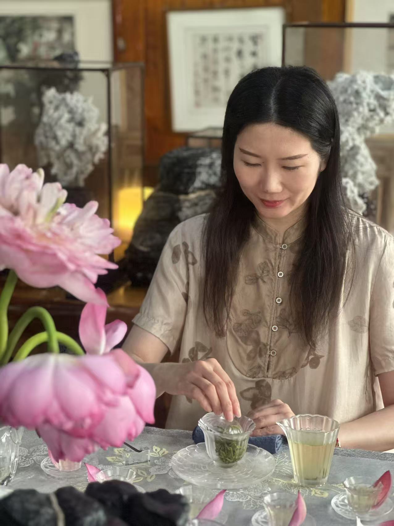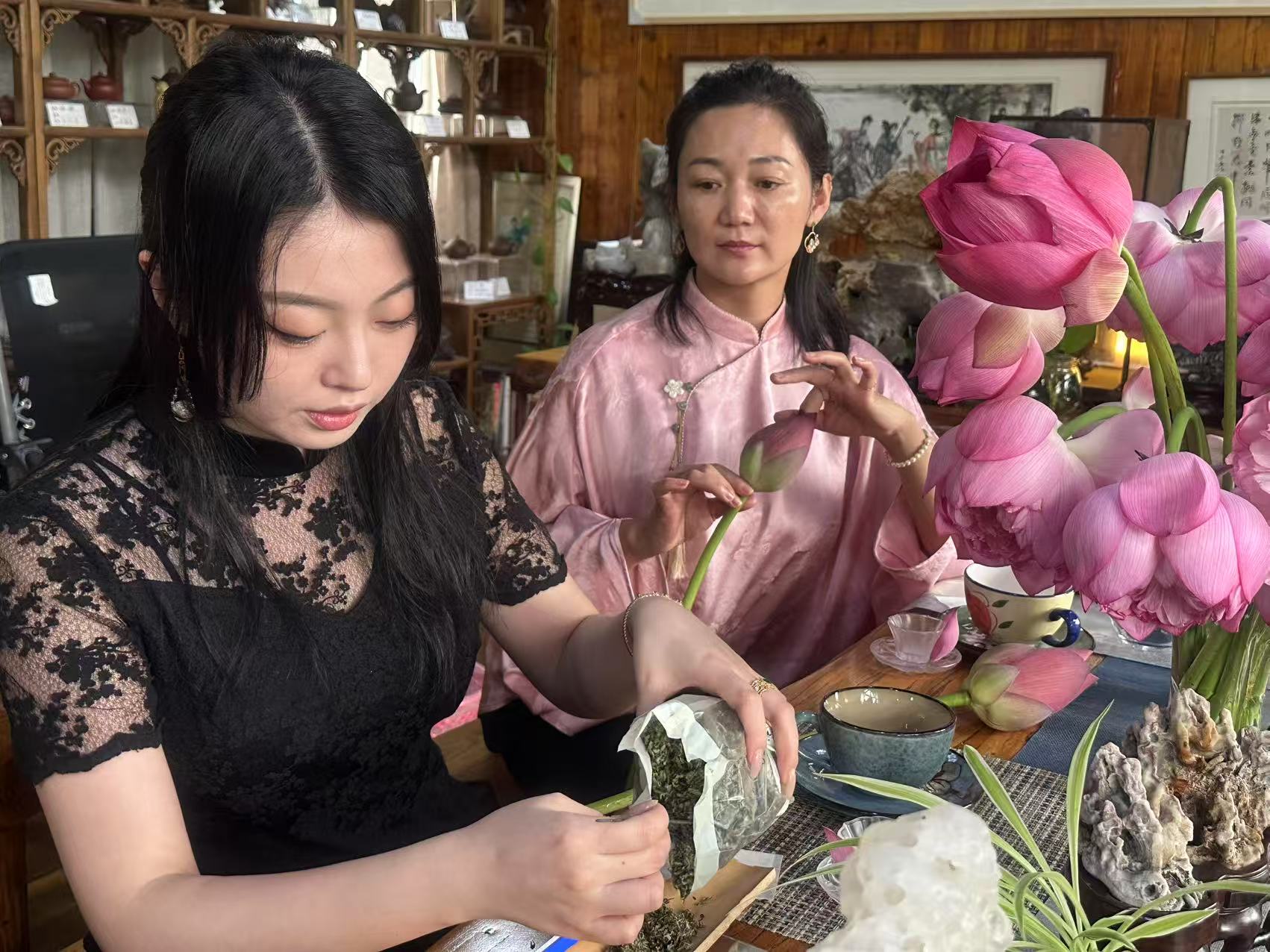 荷心窨茶:从《浮生六记》里拎出一夏苏式雅韵 三伏天的暑气像层密不透风的纱,裹得人发闷时,苏州中国花卉植物园的荷塘偏生藏着解腻的清凉。今天(8月12日),国家高级茶艺师、国家高级评茶员张净老师带着爱茶的好友们蹲在荷塘边,正复刻一桩清代雅事——按《浮生六记》里芸娘的法子做荷花茶,让书页里的荷香,真真切切飘进了这一夏。 上午十点的荷塘最是鲜活。粉色的荷花顶着骄阳开得舒展,粉荷擎着碧伞映在水里,连风掠过时,都带着股清甜的水汽。往花王居走,没等进门,先闻见荷香混着草木气飘过来,刚才被暑气烘得燥的心思,忽而就软了,像被露水打湿的叶尖,轻轻颤了颤。 “沈复写芸娘,总说她‘素喜清雅’,做荷花茶那段,最见这份巧思。”张净指尖蹭过案上粉色的茶荷,竹制茶则旁放着本翻得软的《浮生六记》,她念起书里的话,声音轻得像怕惊着荷:“‘夏月荷花初开时,晚含而晓放,芸用小纱囊撮茶叶少许,置花心,明早取出’——你看这几句,哪是写制茶,分明是写日子里的诗。” 她指尖点着书页笑:“这不是荷茶最早的记载,可芸娘偏把寻常事做得有了情致。我们为复刻这法子,翻了好几遍原文,还找文史专家问那时的纱囊样式、茶叶品类,就怕漏了哪个细节,丢了那份雅。” 说话间她已拿起茶叶演示。选的是本地碧螺春茶,叶片嫩得泛着光:“得让茶香当配角,荷香才出挑。”取块细纱布兜住茶叶,捏成拇指大的小球,用棉线轻轻捆紧,那手劲轻得,像怕捏疼了茶叶——茶包悬在指尖晃,倒像串小巧的绿玉坠。 最要紧是“入荷”。刚从塘里折来的荷花还含着晨露,张净拿湿棉布裹住荷茎保湿,小心扒开外层花瓣,把茶包轻轻放进花心,又拢拢花瓣:“得让茶包贴着花心的嫩蕊,夜里荷花合起来,荷香就慢慢渗进茶叶里了。今晚让它在荷心待一夜,明早花开时取出来,用山泉水一泡,香得能绕着杯沿转。” 她又指了指旁边摊开的荷叶:“荷叶茶不用这么讲究,挂在檐下让风自然吹,三五日干了收进瓷罐,喝时取一片煮水,带着清苦的凉,最解腻。荷花茶要存久些,就得用炭火余温慢慢焙——火不能急,得像哄孩子似的,守着把花苞烘得干透,装罐密封,冬天拿出来泡,还能喝到夏天的荷香。” 等众人跟着做完茶包,张净早泡好了先前制的荷茶。玻璃杯里茶汤浅绿透亮,先闻见清润的荷香飘过来,抿一口,先是茶的鲜,后是荷的甜,凉丝丝滑过喉咙,刚才蹲荷塘边沾的热意,忽就从舌尖消到了心里。 “荷花性凉,上午喝最合时宜。”她添茶时轻声说,“清心明目,还能压一压暑气;脾胃弱的人别放晚上喝,免得寒着。” 茶友们捧着杯子舍不得放,有位来自北京的小姐姐摩挲着杯壁笑:“原是看书里写觉得好,亲手做了才懂,这哪是喝茶?是把《浮生六记》里的苏州雅趣,攥在手里了。” 说话时风从窗缝溜进来,案上的书页轻轻翻,荷香混着茶香漫过来。才惊觉老苏州的雅致从不是虚的,它就藏在芸娘置茶入荷的指尖,藏在茶客们捏茶包时轻缓的手劲里,藏在这杯能喝出夏意的荷茶里——是能摸得着、闻得到的,一整个夏天的温柔。 (张维忠)
