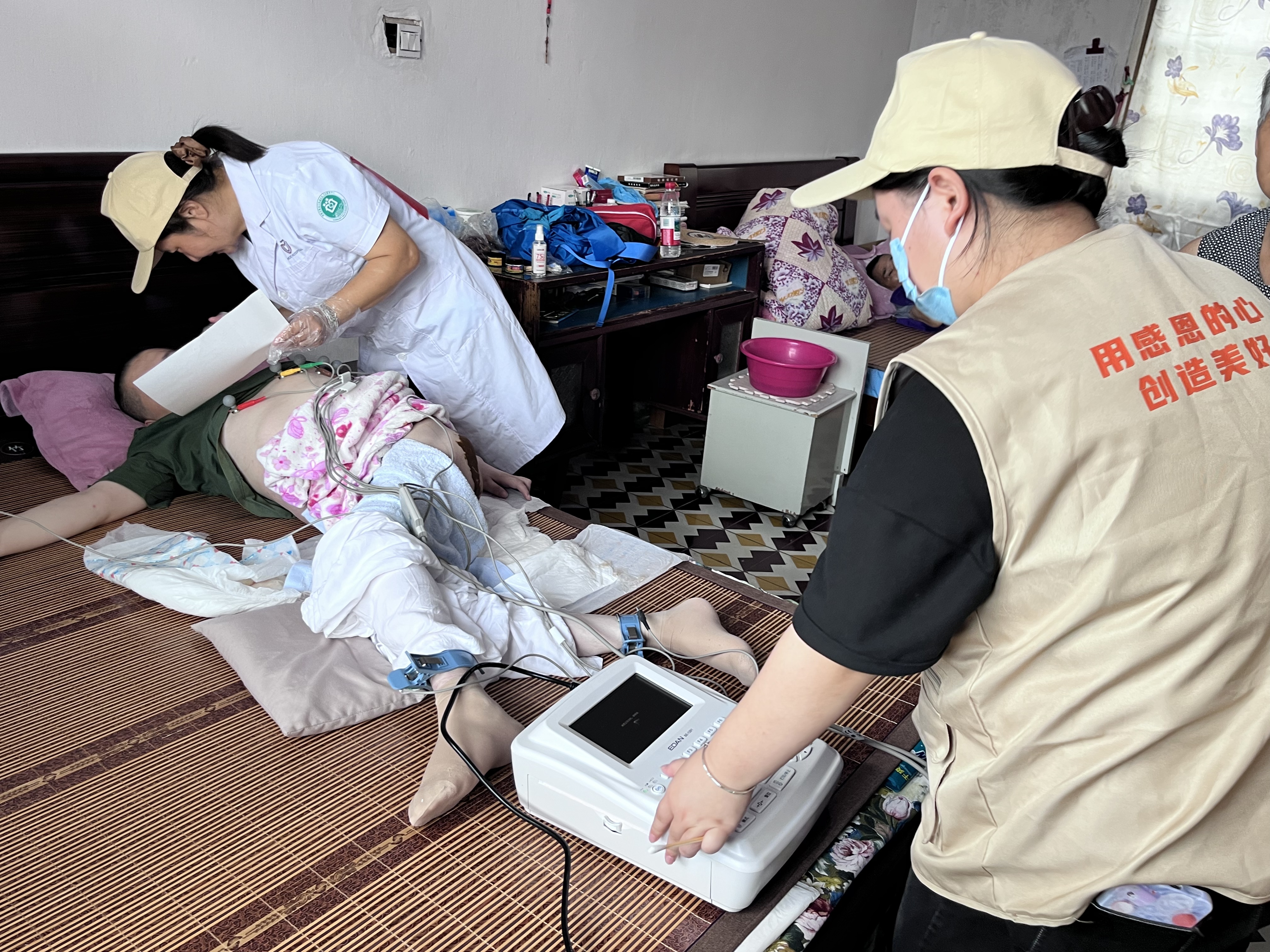 建德市健康志愿者协会走进寿昌镇镇卜家蓬村开展恩宝幸福家园项目,以义诊上门一对一义诊相集合的方式开展服务,赞👍,一家三口,两个是瘫痪在床,就靠妈妈一个人照顾,儿子患糖尿病,褥疮非常严重,今天我们带上中药给予治疗,希望他早日康复👍
