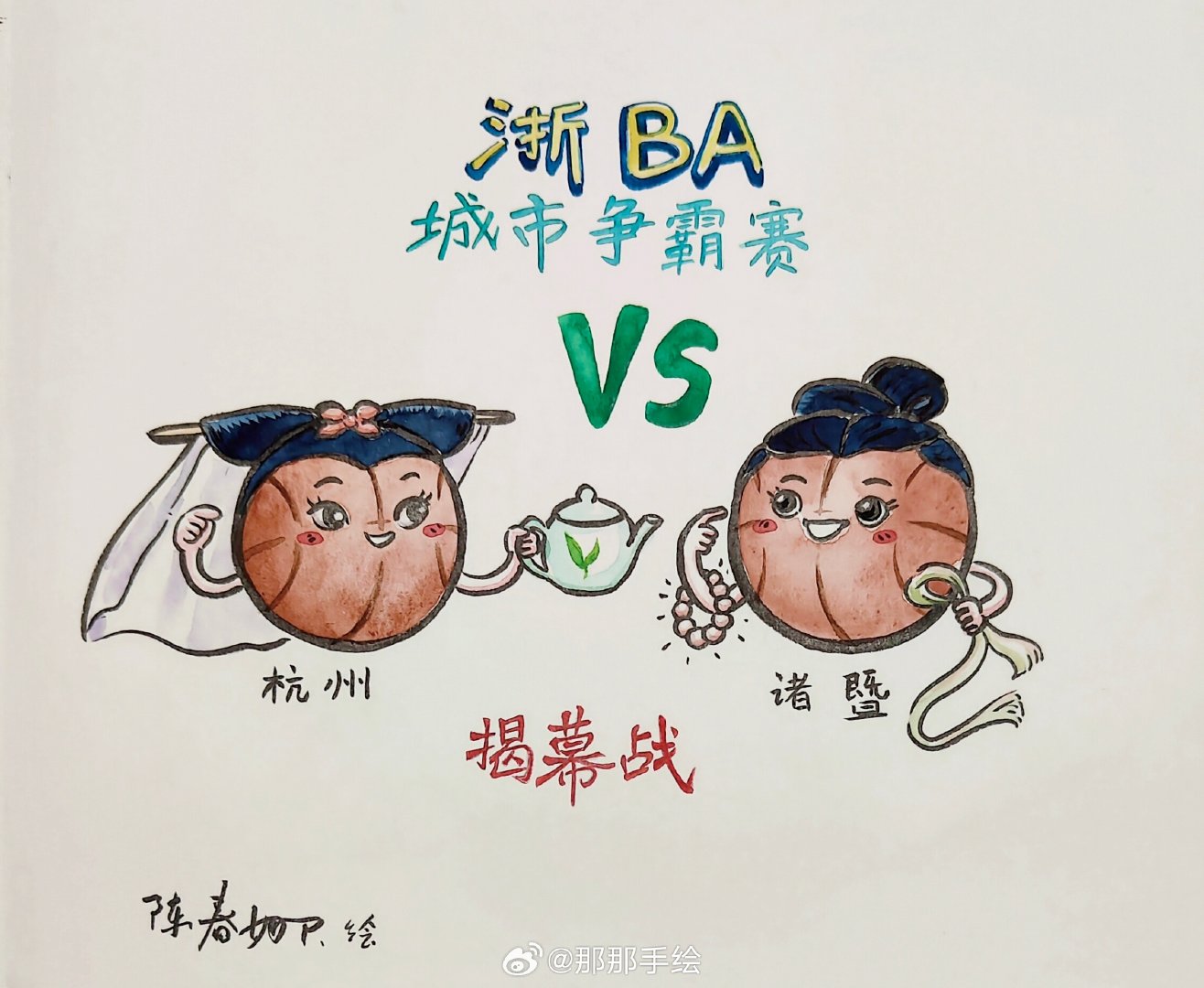 跟着浙ba游浙江 今晚7点“浙BA”城市争霸赛揭幕战——杭州(白娘子)VS 诸暨(西施).特画了幅漫画,大家会希望哪队胜?[可爱],我等会也要去现场看这两队比赛啦,激动呀