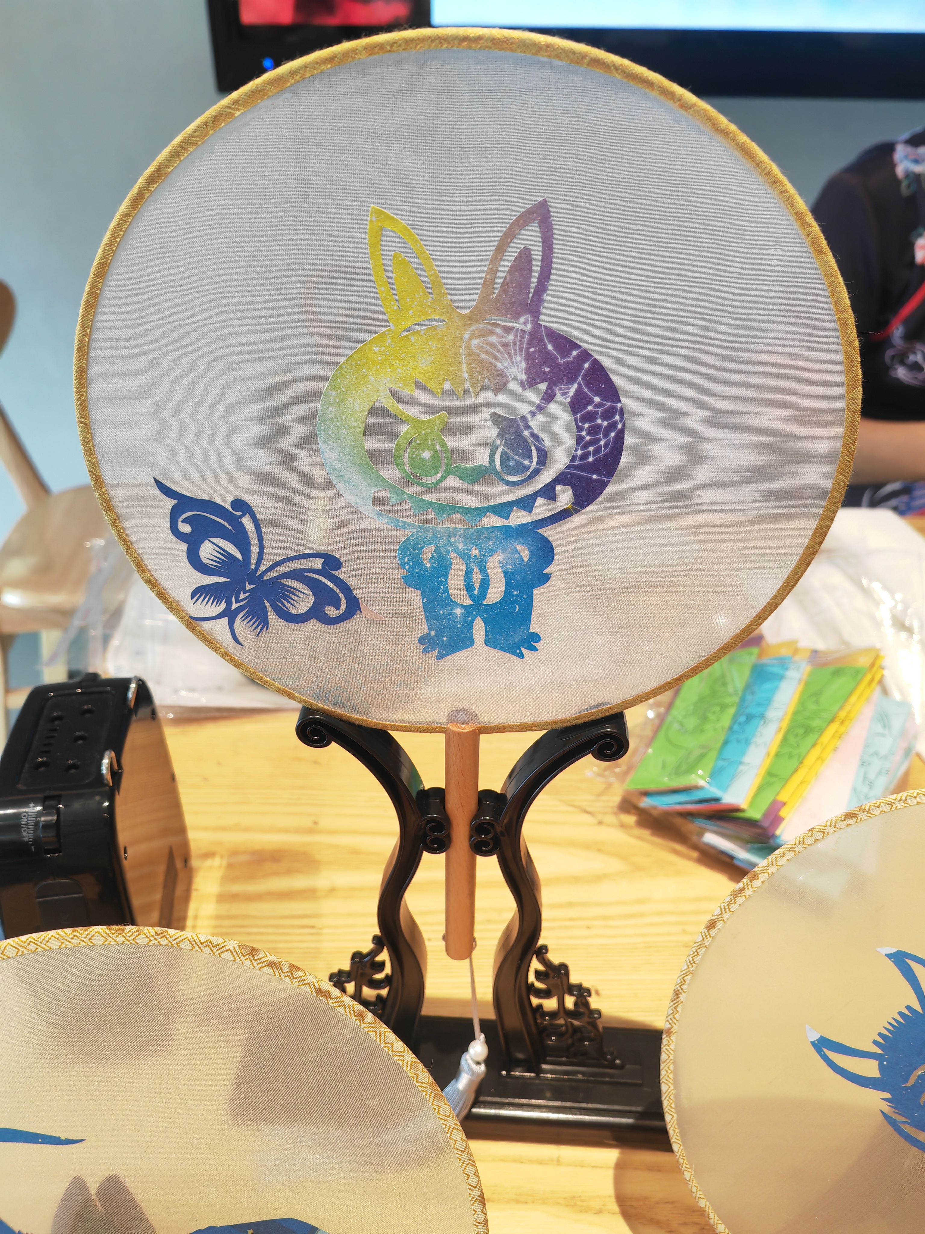 浙江非遗馆 8月参加了丽水非遗场—缙云剪纸研学 老师好潮啊,安排孩子们用对折法,镂空法,暗刀法剪了现在的顶流labubu,然后再贴饰于古雅的宫扇上,古典和现代的完美结合,精致又实用。 还能剪刚上映的电影浪浪山小妖怪里的动画人物,老师紧跟潮流,真能抓住孩子们的心呢~