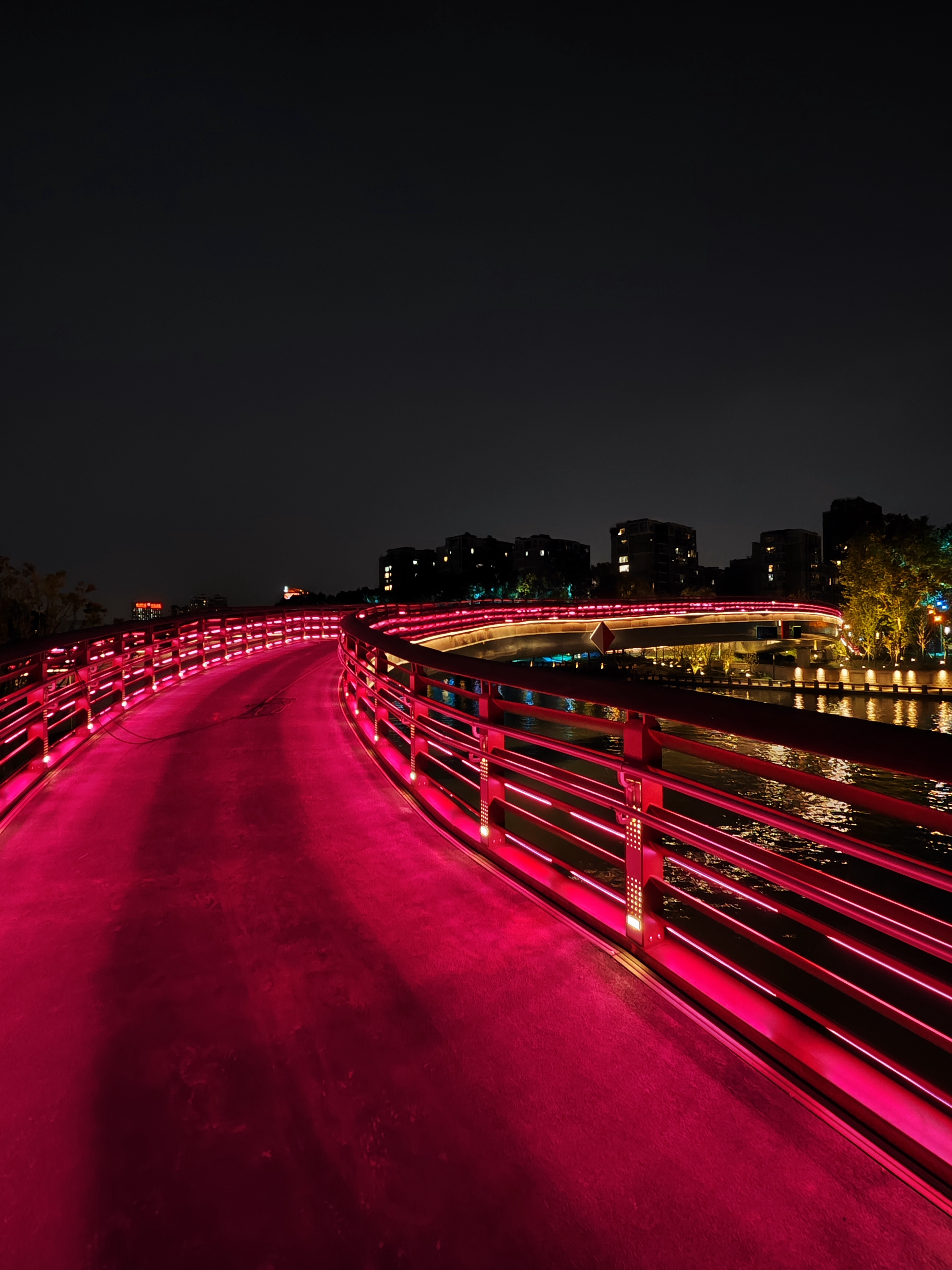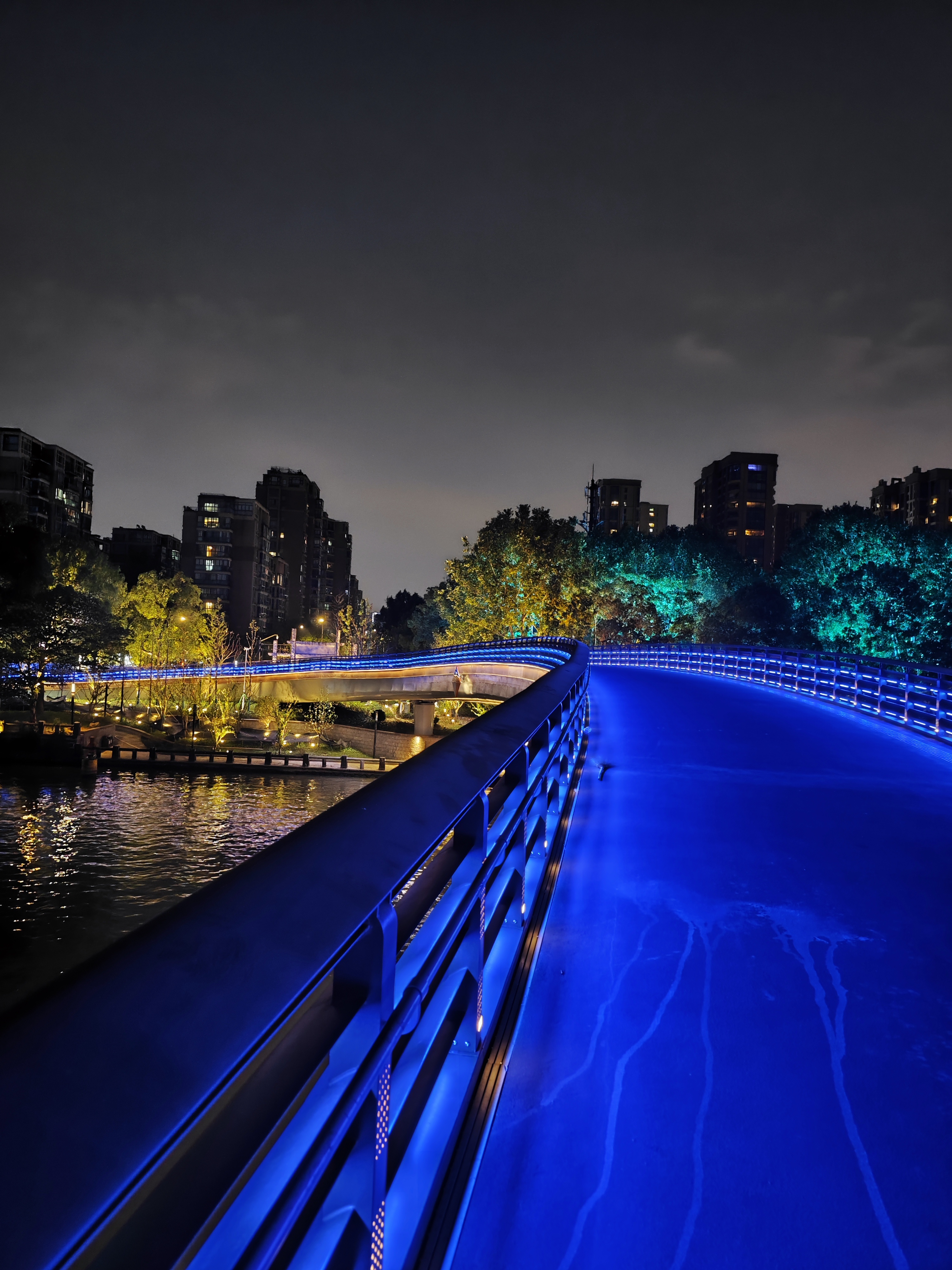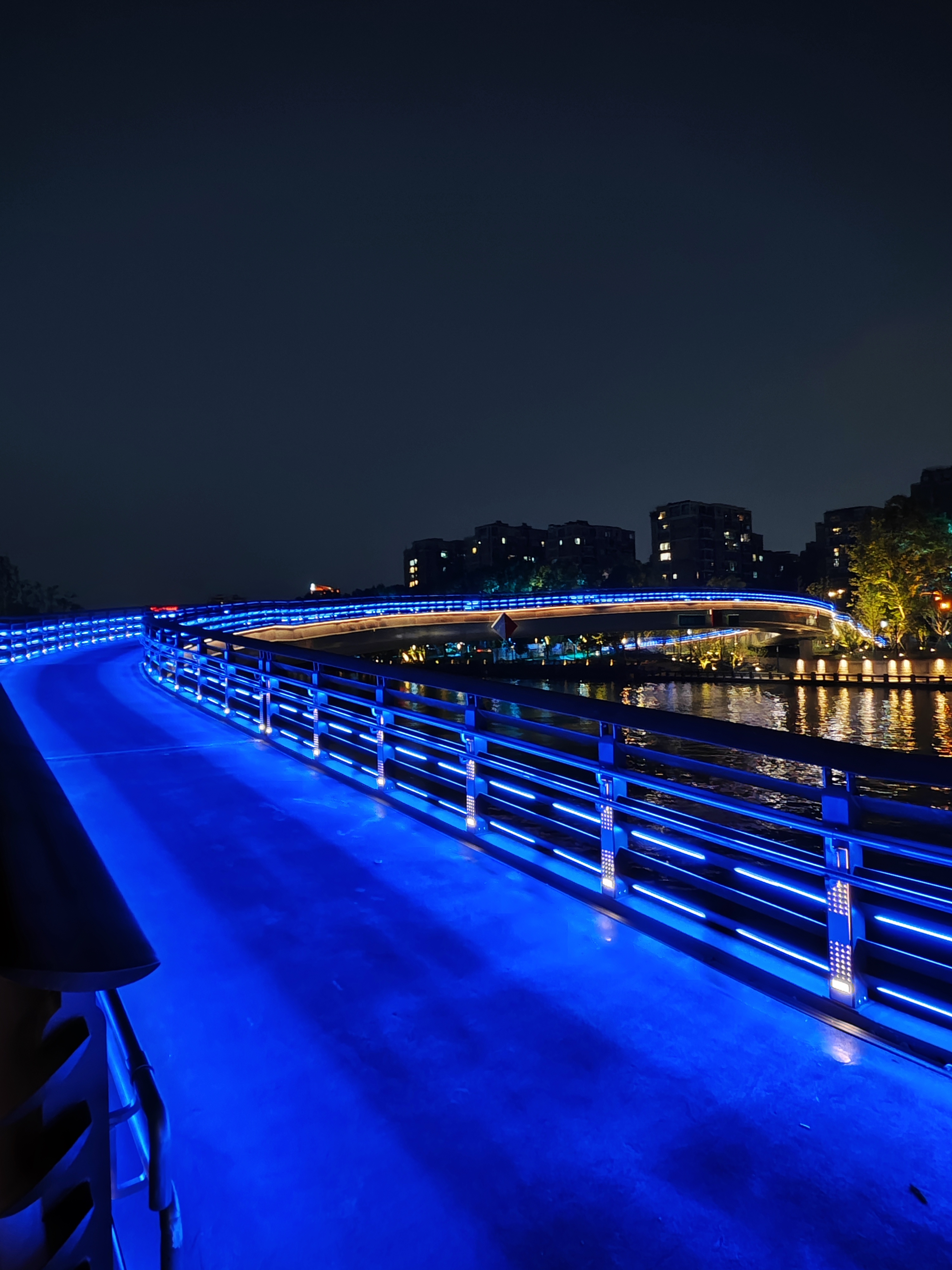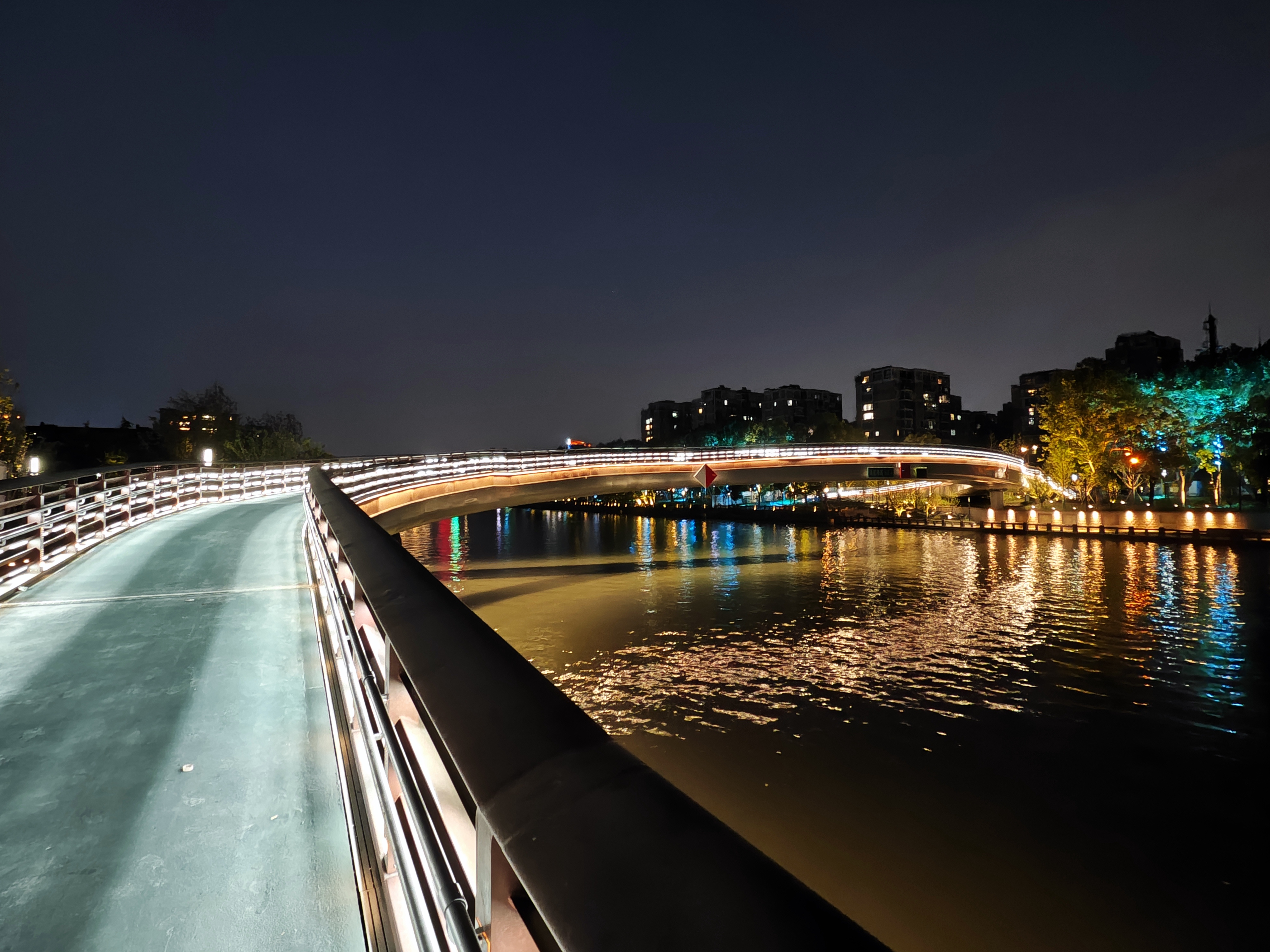 小河公园跨运河步行桥景观灯,在初秋的晚风中华丽绽放!