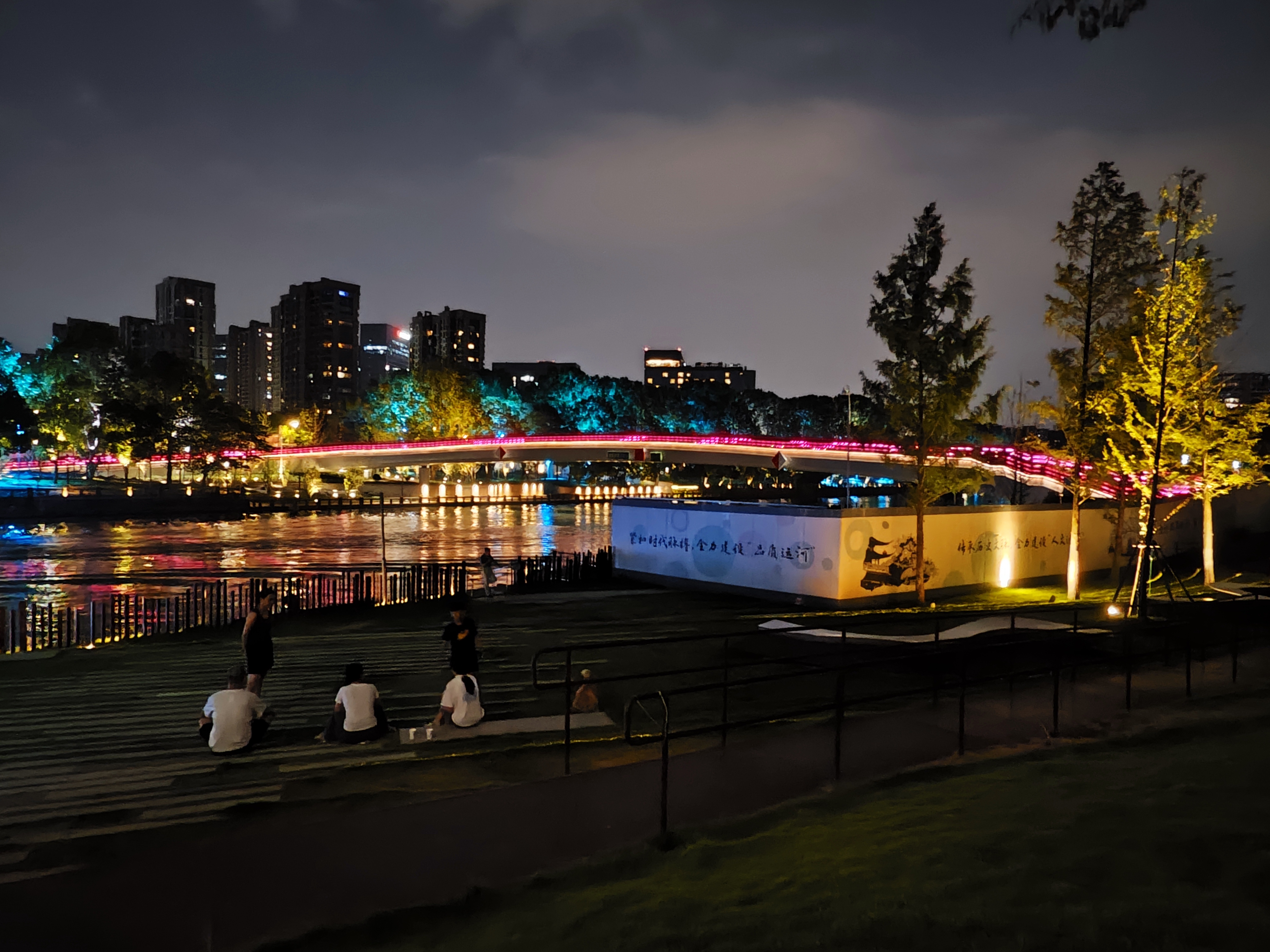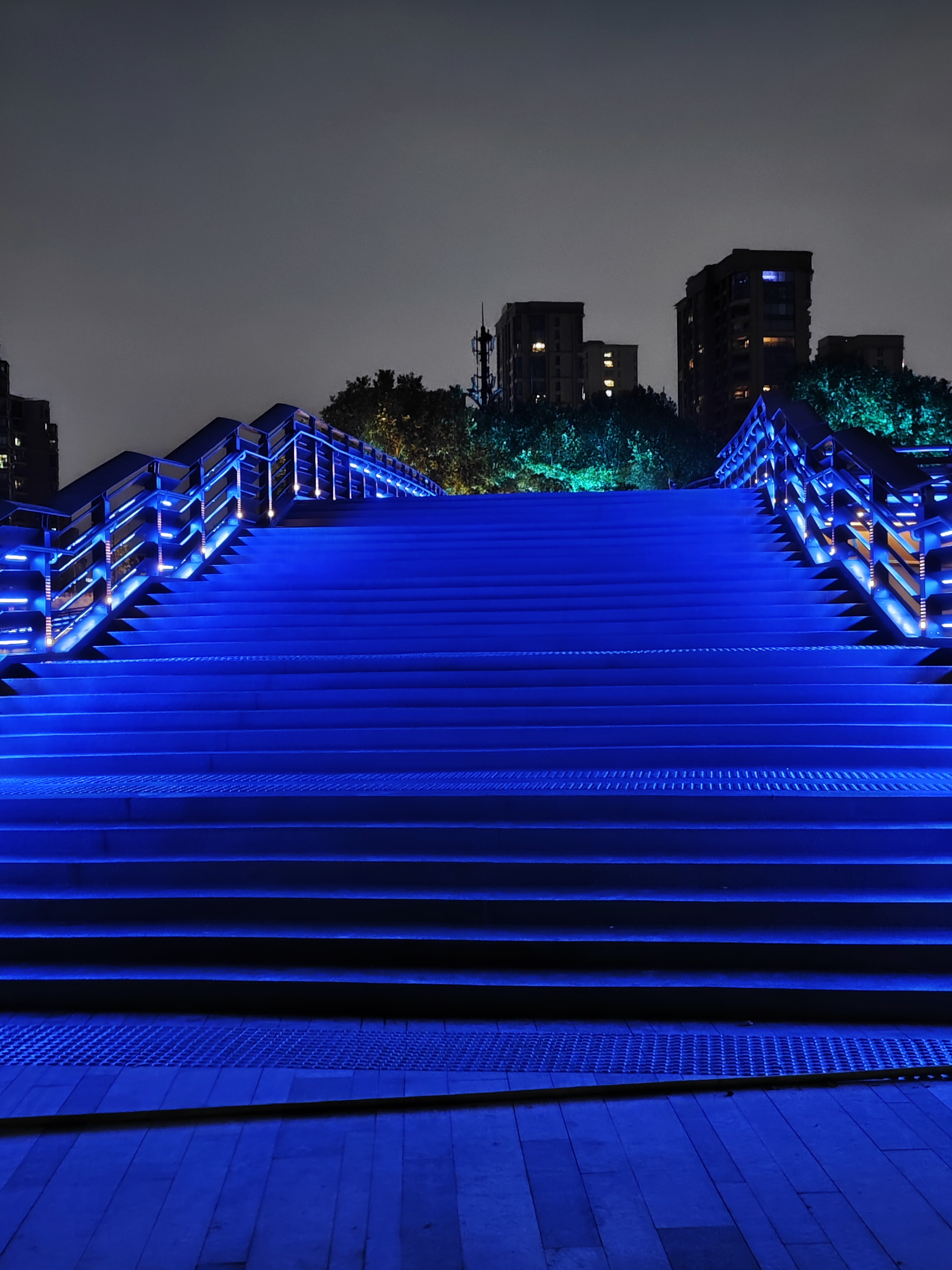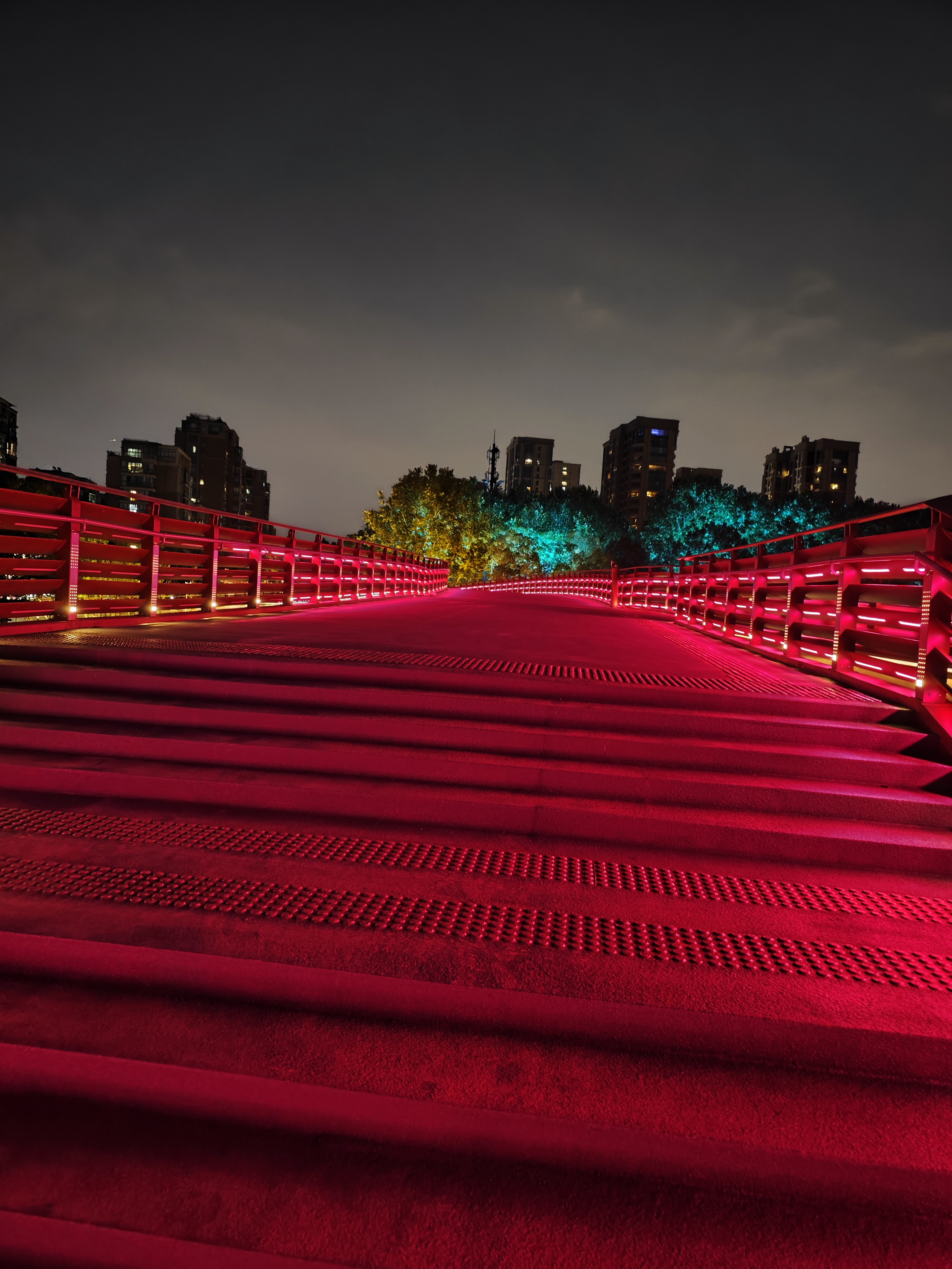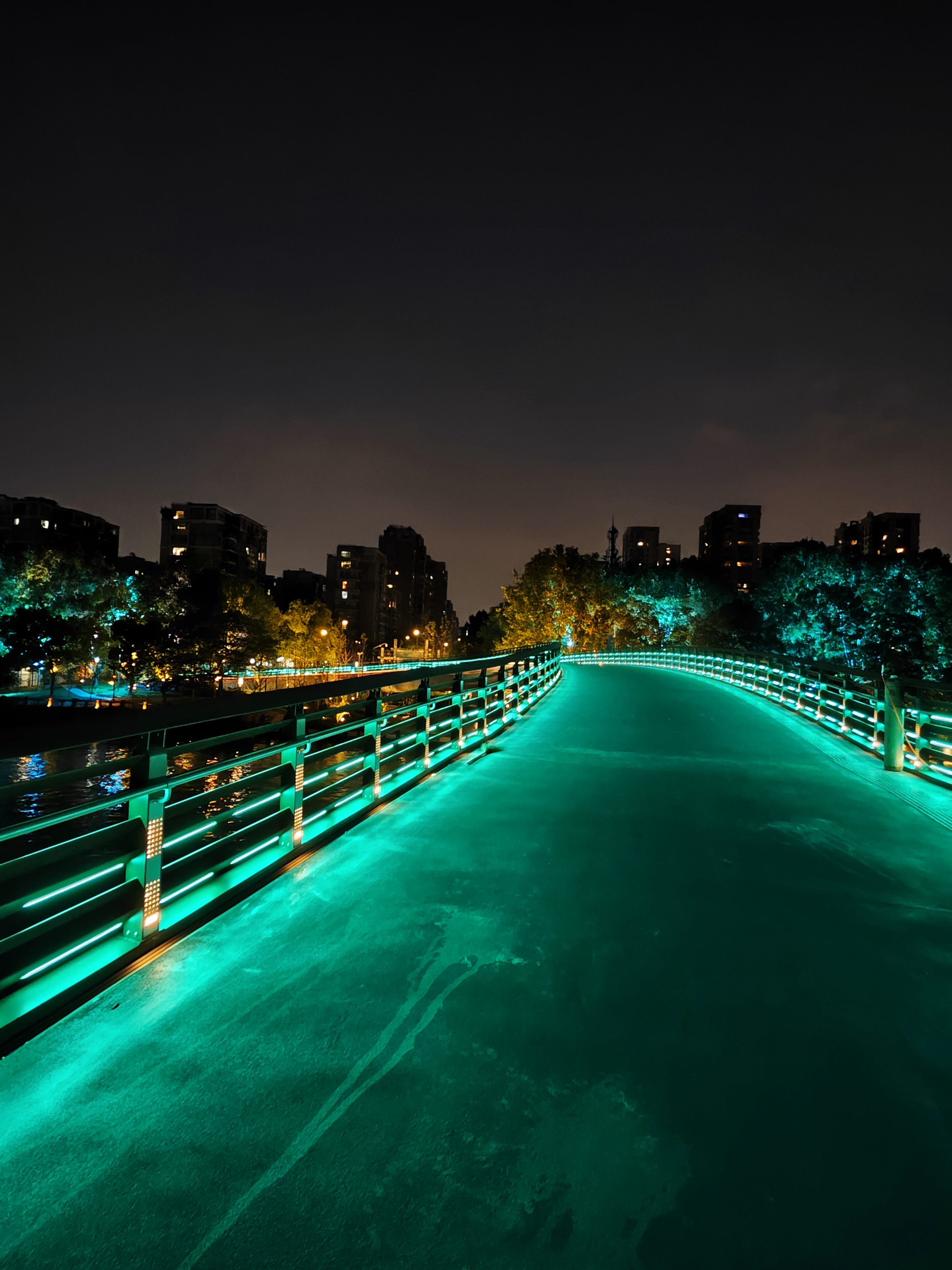 小河公园跨运河步行桥景观灯,在初秋的晚风中华丽绽放!
