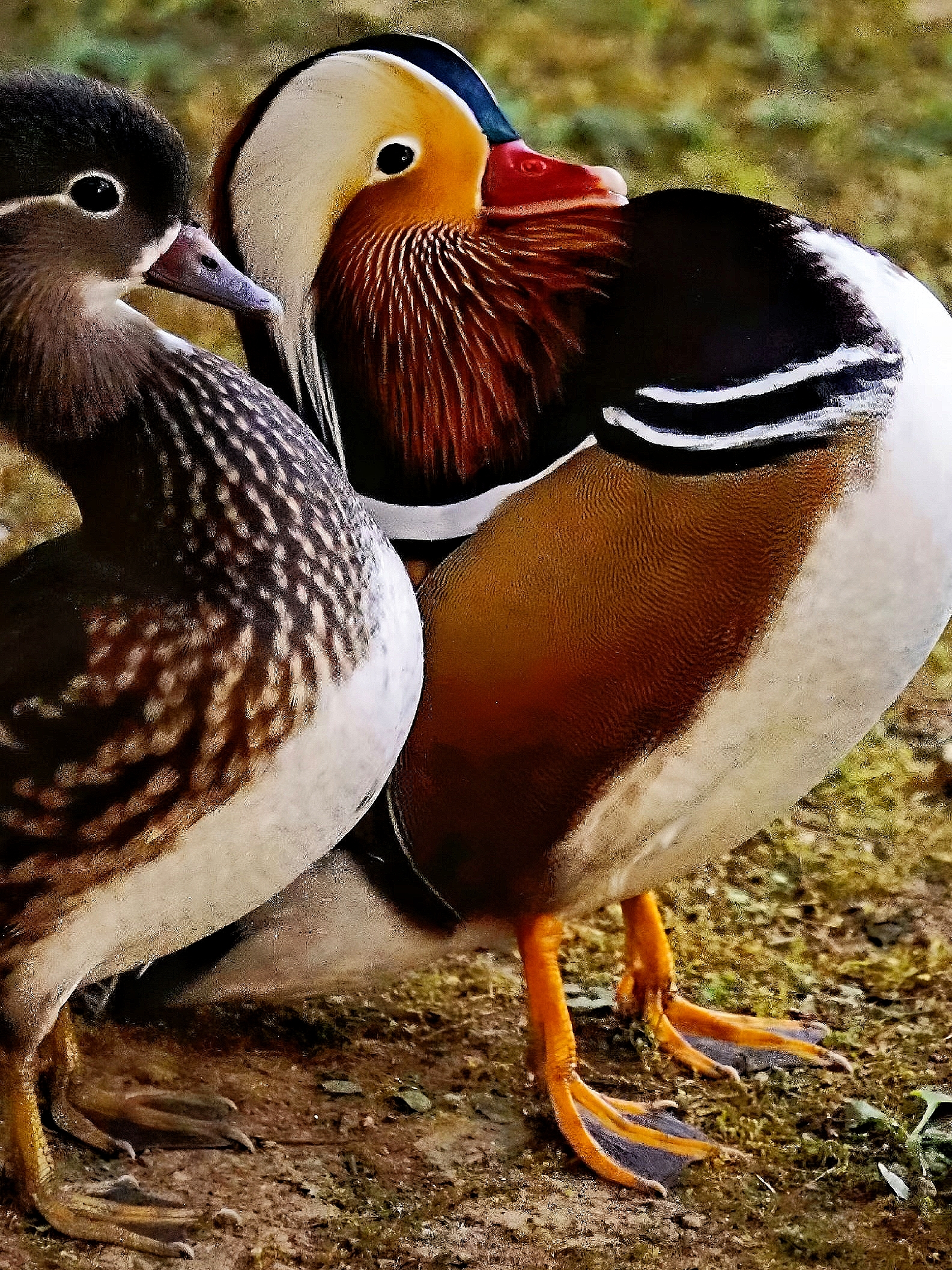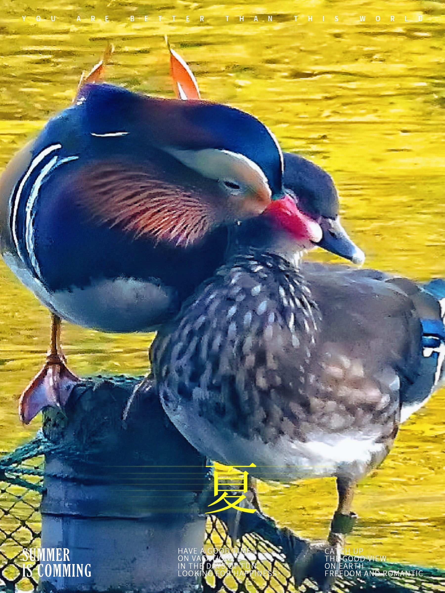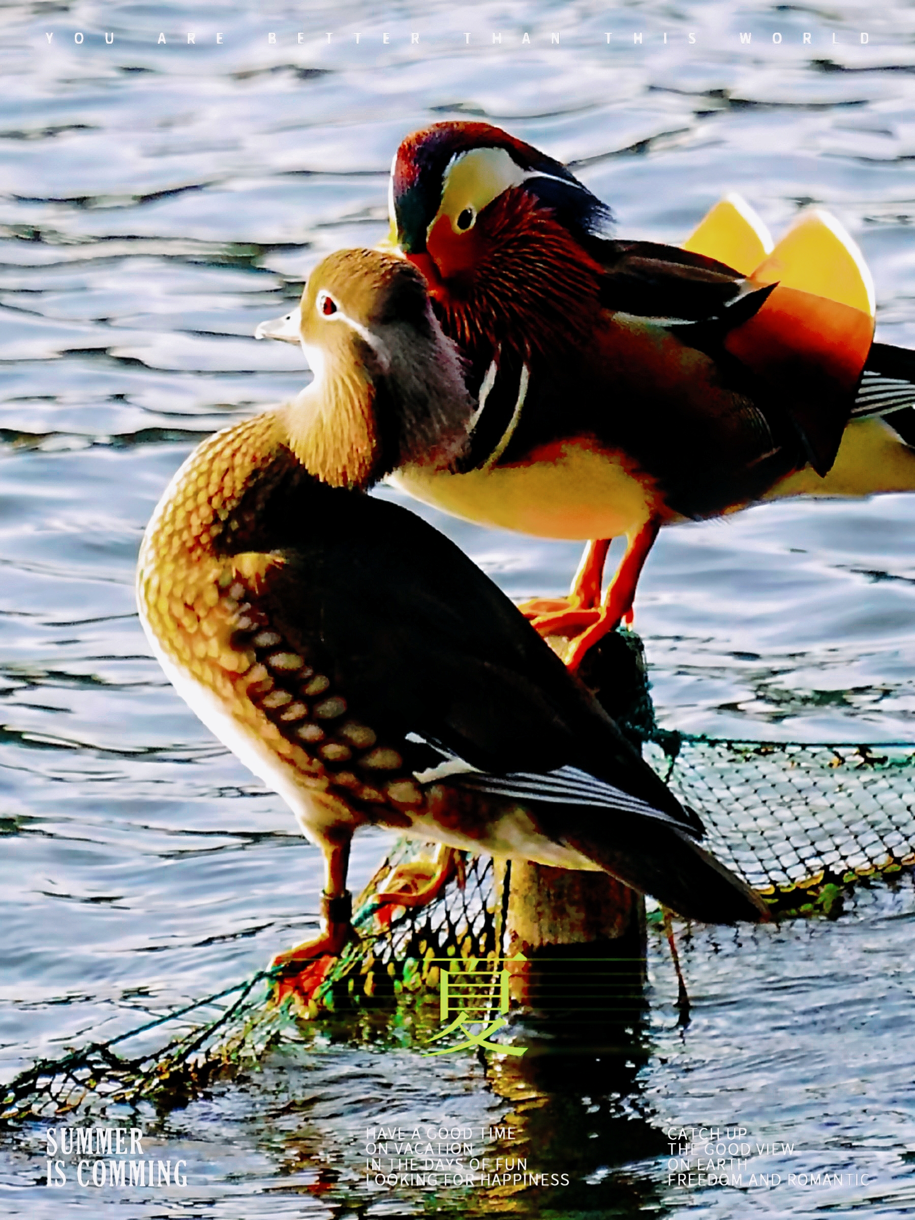 一对羽毛油亮的鸳鸯就游到了荷塘中央。雄鸟的羽毛像被晚霞染过,翠绿的头颈闪着金属光泽,它总爱把脑袋往雌鸟颈边蹭,用喙轻轻梳理着她灰褐色的羽毛。雌鸟也不躲闪,只是温顺地浮在水面,偶尔转头用脸颊蹭回去,好像在说“爱我你就亲亲我”,水波荡开一圈圈温柔的涟漪。七夕节快乐!