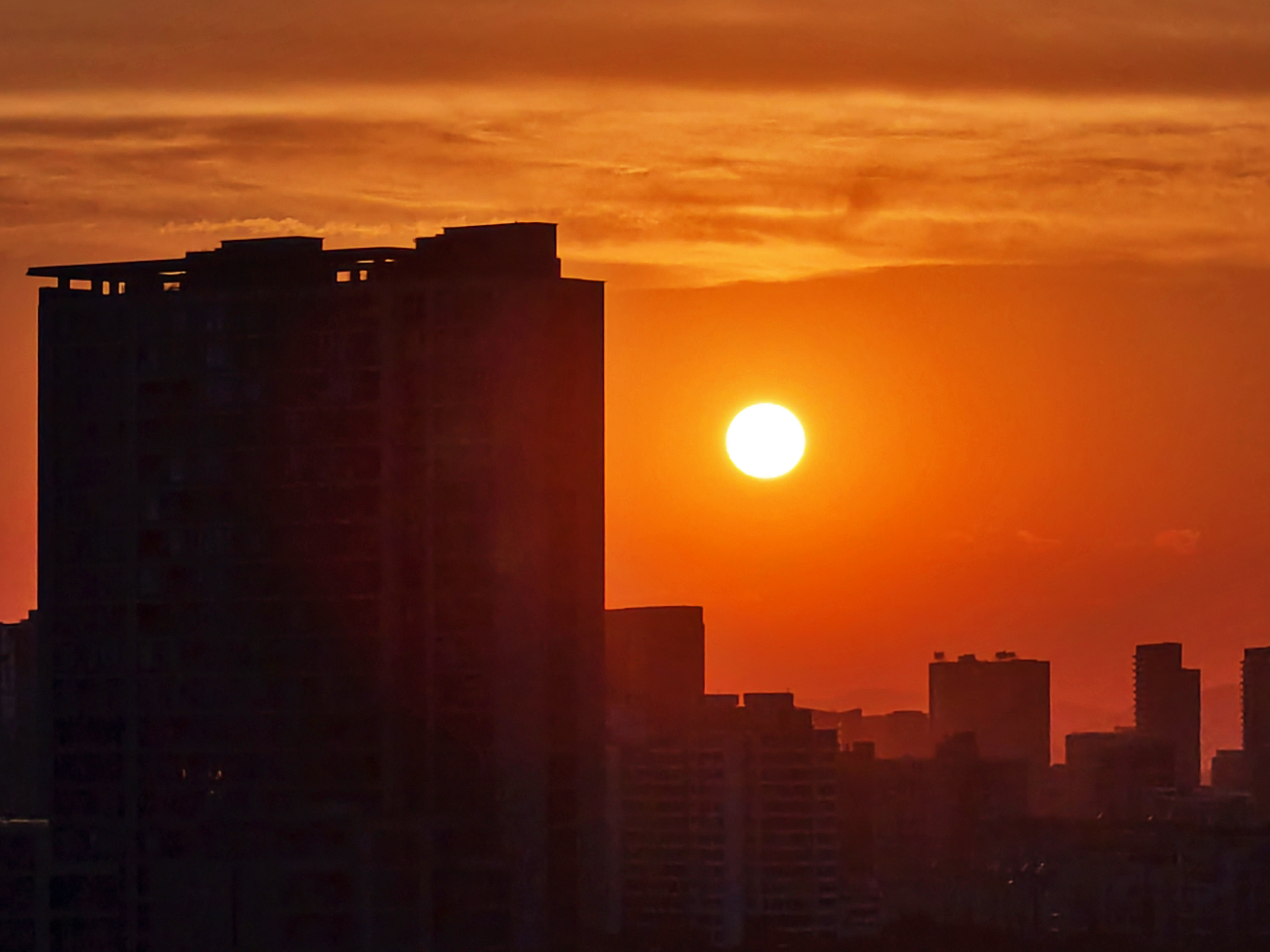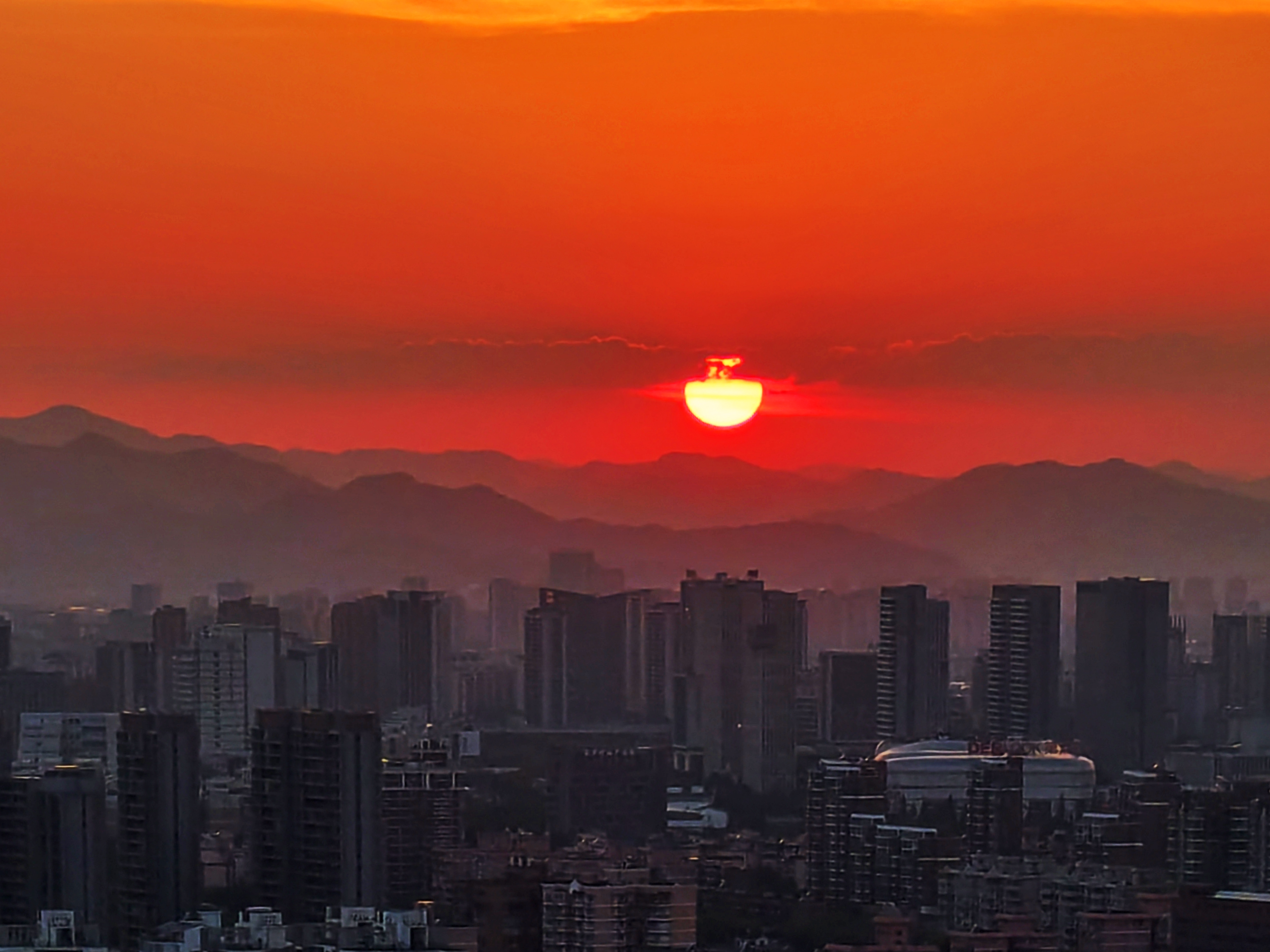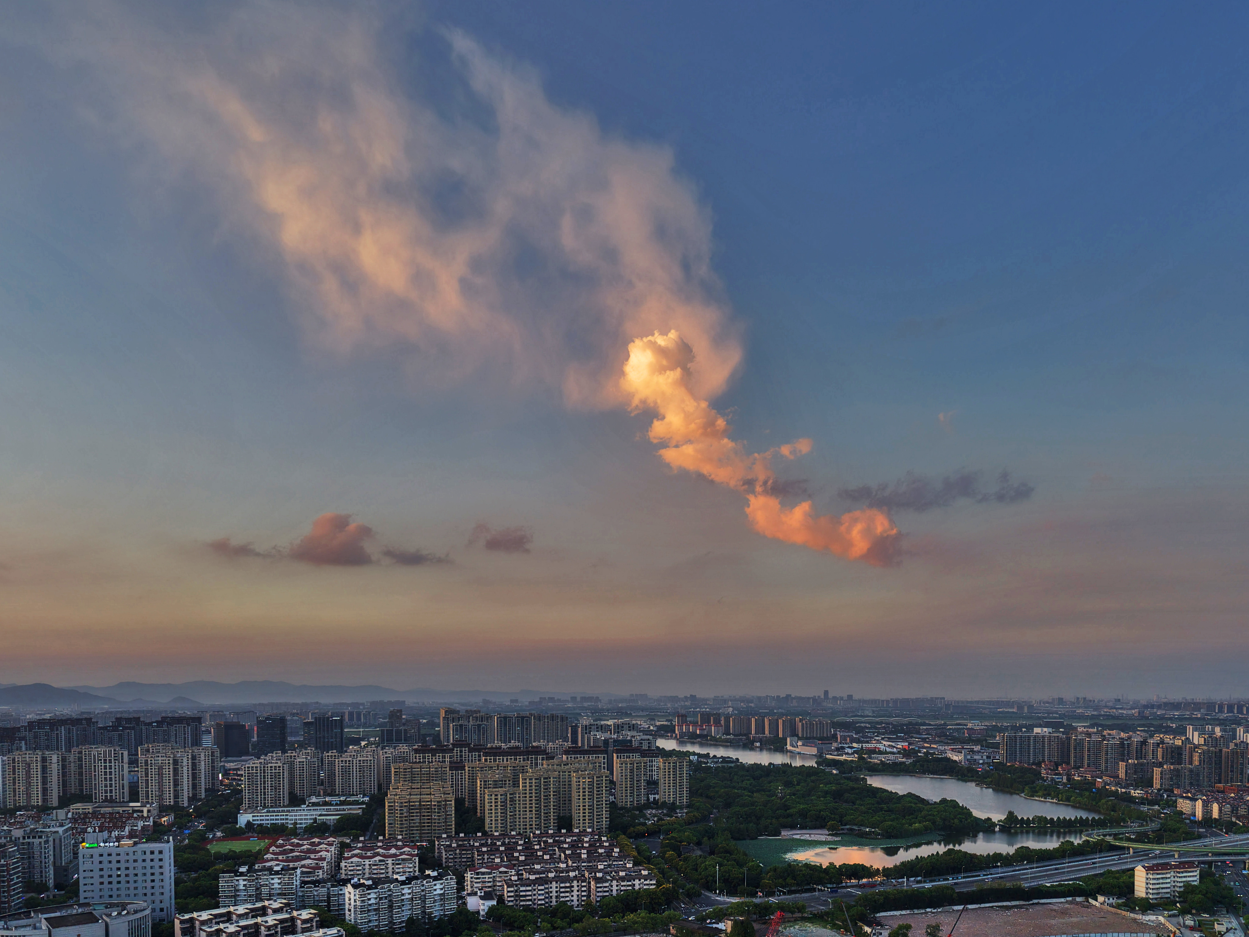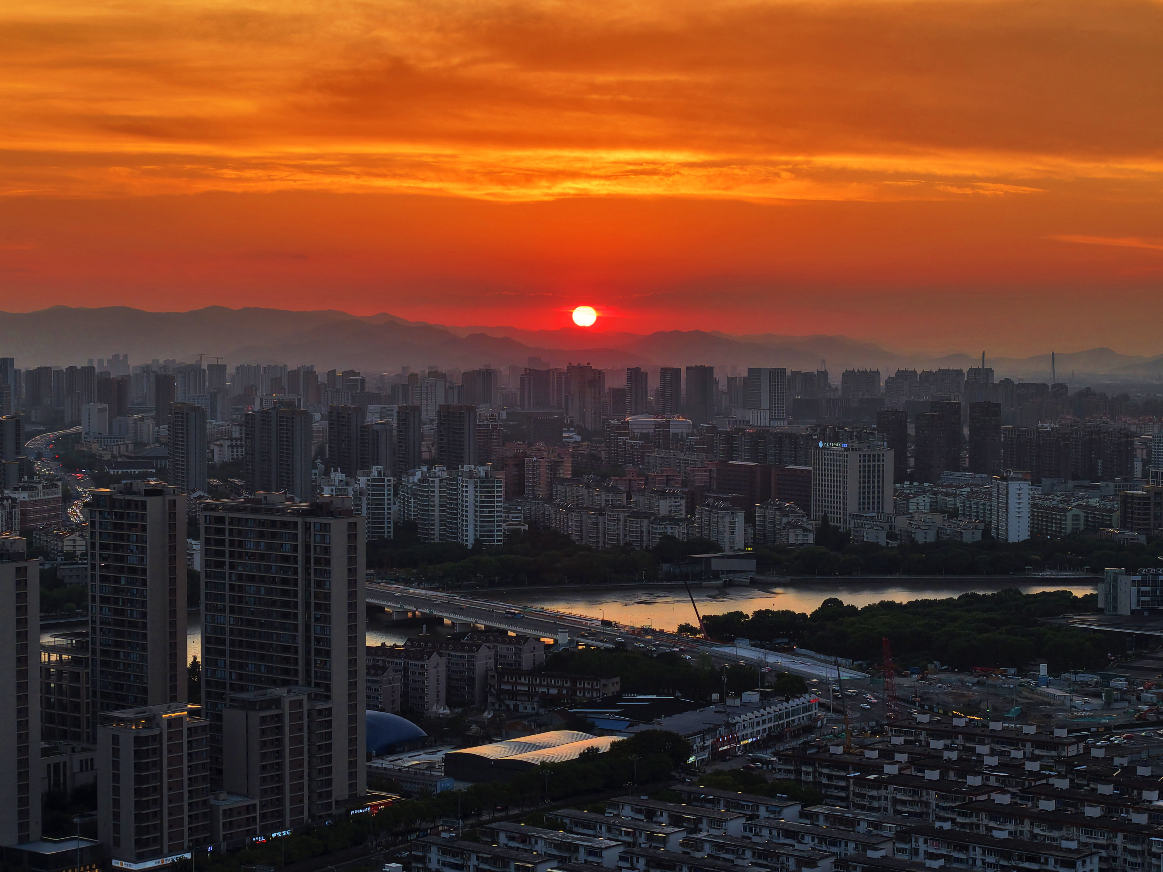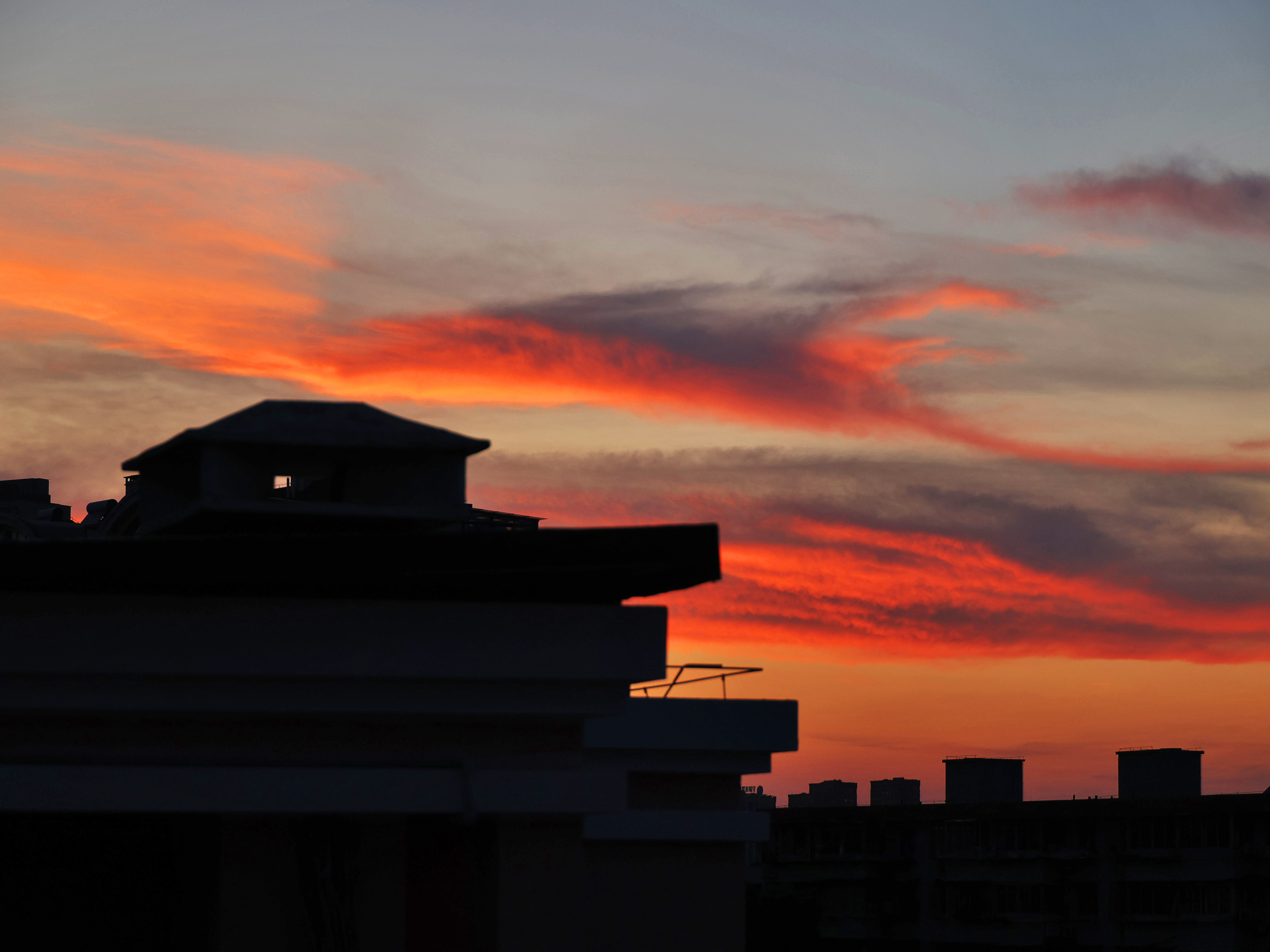 今日处暑,甬城天空火红晚霞,热并绚丽着。
