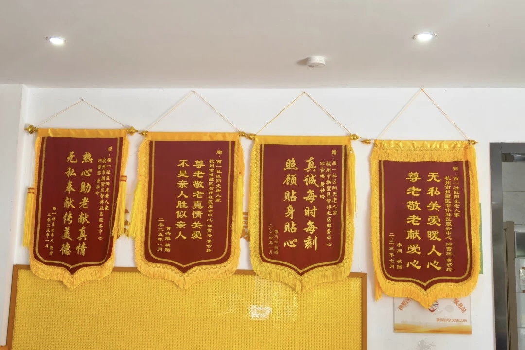 四面锦旗的“调皮”告白:阳光老人家的“养老浪漫主义” “邱邱,你有空吗?有‘大事’找你!” 听着97岁的黄奶奶在电话里着急的语气,惊得西一社区阳光老人家工作人员邱雪瑶一路小跑到老人家。门一开,黄奶奶像个藏着宝贝的小孩从背后“嗖”地掏出面锦旗——“尊老敬老真关爱、不是亲人胜似亲人”,它比任何书法作品都晃眼。这面“偷偷摸摸”诞生的锦旗,即将成为阳光老人家荣誉墙上的第四位“新成员”,和其他三面“老伙计”并肩而立,共同诉说着发生的温暖故事。 锦旗天团:每一面都是“硬核撒娇” “以前总觉得养老是‘终点站’,现在才知道是‘快乐星球’!”司马阿姨送来“热心助老先献真情,无私奉献传美德”的锦旗,偷偷爆料:“这面是我‘蓄谋已久’送的——每次来着上编绳课,邱邱都很热情,早早的为我们准备好了工具,这里是我们活到老学到老的地方! 养老界的“海底捞”:把服务卷成“甜甜圈” “你知道吗?我这么大年级了,竟然是在这里过了第一次生日,”傅阿姨举起大拇指,阳光老人家的“小心机”多着呢:给记性不好的老人发“爱心便利贴”,在每盒药品上写好用法和用量;带老人拍“时尚大片”当新年礼物,85岁的周爷爷穿上西装秒变“老鲜肉”。这里没有冰冷的制度,只有“奶奶今天想吃梅干菜扣肉”“爷爷的降压药该买了”的烟火气——把专业服务做成“甜甜圈”,圈住老人们的胃,更圈住他们的心。 锦旗会说话:社区养老的“青春密码” “第三面锦旗要挂第一位,让所有人一进来就能看到我的锦旗!”李叔叔叉着腰指挥,更是自己动起了手。 阳光老人家就像个“时光搅拌机”,把年轻人的活力和老年人的智慧混在一起:大学生志愿者来教智能设备,老教师们反哺“人生经验课”;工作人员带着爷爷奶奶跳手势舞,80岁的“老顽童”们教年轻人编非遗编绳。锦旗会说话,它们说:最好的养老,是让岁月变成“调味剂”,苦的甜的,都能调出幸福感。 在浙江幸福里公益基金会的支持下这样的暖心活动还有很多,老人们的笑容和感谢,就是"西一阳光老人家"最好的见证。如今,四面锦旗在墙上整整齐齐地挂着,像四个咧着嘴笑的开心表情包。这些锦旗啊,是老人们写来的"俏皮情书",是工作人员收获的"温暖勋章",更是社区养老服务的"青春宣言"——当银发遇见青春,当传统遇上新潮,原来养老生活可以这么"时髦"!在这里,每一天都在上演着温暖的故事,每一刻都洋溢着幸福的欢笑!