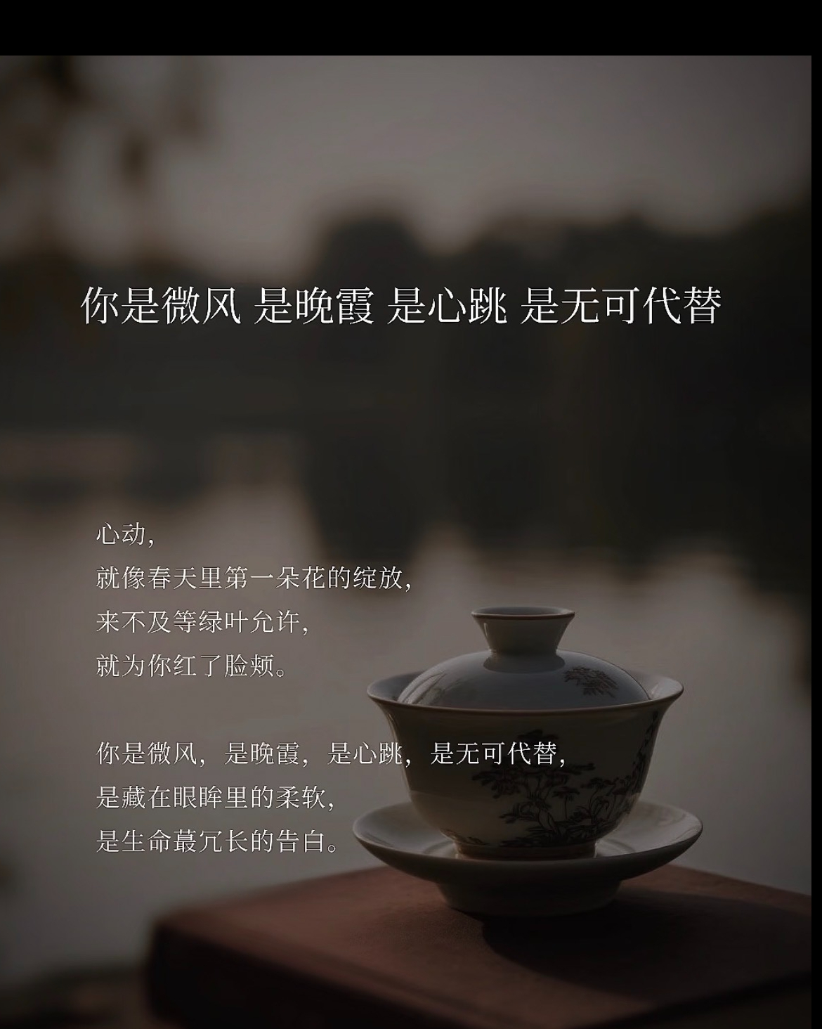 三生有幸之遇见——一朵诗云出禅意 一朵云。从蓝色的天空撷取 照过祖先的 那个小太阳 拾起 一些零散的 温暖碎片 楔入骨缝 于是 一个名叫爱的墙 就会 在脚下 又在空气中 书写传承 还用什么妙笔呢 风中的梦 有了着落 自己就是诗 不妨 继续千遍的动作 也许下一分钟 就可以从时光的永恒里 分离出 三生有幸 一生 散于 江汉关的钟声里 一生 长了翅膀和情欲 到了它想到的地方 午睡起来 窗外 悬挂的叶 正沐浴 盛夏的阳光 天上的那朵 棉花糖 酝成诗 又酿出禅意