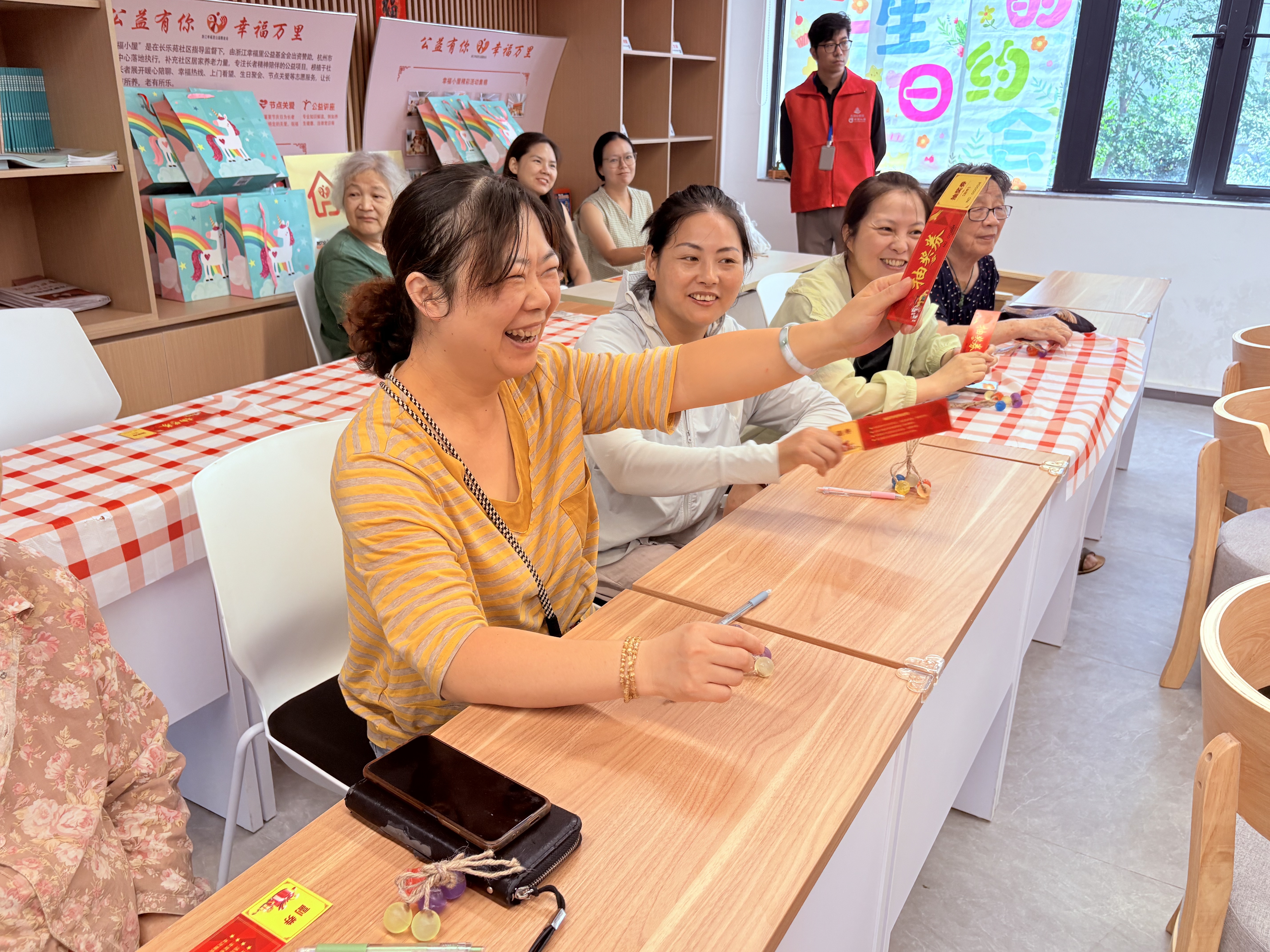 巧手制皂传心意,情暖七夕话安康——长乐苑幸福小屋七夕活动 七夕佳节,鹊桥相会的浪漫故事传颂千年。8月29日上午,杭州市拱墅区湖墅街道智伴邻里服务中心在浙江幸福里公益基金会的支持下,以“巧手制皂传心意、情暖七夕话安康”为主题,在长乐苑幸福小屋长者们齐聚一堂,共度了一段兼具健康与温情的美好时光。 活力开场,手指操里的轻松互动 活动伊始,志愿者带领长者们跟着视频学习手指操,大家认真模仿,活动手指,现场气氛轻松活跃。“好久没这么动过了,真舒服!”一位爷爷笑着说,欢声笑语中,轻松的氛围为整场活动埋下了温暖的伏笔。 政策暖心,“西湖益联保”守护安康 随后,工作人员向长者们普及“西湖益联保”政策,从保障内容、参保流程到报销比例、申请途径,讲解的清晰具体,让大家了然于心。“社区真贴心,讲得这么明白,以后看病踏实多了!”李阿姨感慨道。这份精准的政策传递,藏着社区对居民健康的牵挂,更是关怀落地的温暖体现。 巧手传情,葡萄香皂里的七夕意趣 最受欢迎的手工葡萄香皂DIY吊坠环节,成了活动的“重头戏”。晶莹皂基在掌心融化,伴着淡淡香气,长者们兴致勃勃地刻画葡萄纹路,乐在其中。“你看我这个,紫莹莹多像真葡萄!”“我做两个,送老邻居沾喜气。”大家互相支招,分享乐趣。一块块独一无二的香皂吊坠,成了传递情谊的信物,如鹊桥牵挂般质朴真挚。 惊喜抽奖,温情收尾暖人心 抽奖环节一开启,长者们纷纷直起身,目光紧随着志愿者手中的号码,似盼着鹊桥佳音般轻声念叨“沾份喜气”。念到中奖号码时,中奖阿姨笑着起身,理了理衣襟上前接奖,眼角笑意融融:“这七夕好运真来了!”张阿姨抽中后赶紧拉着老姐妹分享,掌声与欢笑声里,满是七夕的甜蜜。 活动尾声,长者们一手捧着亲手制作的香皂吊坠,一手拎着精心准备的礼品,在镜头前留下了温馨的集体合影。照片里,每一张笑脸都映着满足,每一道皱纹里都藏着欢喜。 这场活动尽显浙江幸福里基金会对老年群体的用心。从健康引导到政策支持,从互动体验到情感联结,每一环都藏着“把居民当家人”的初心。让长者们在七夕感受“家”的温暖,收获满满幸福。