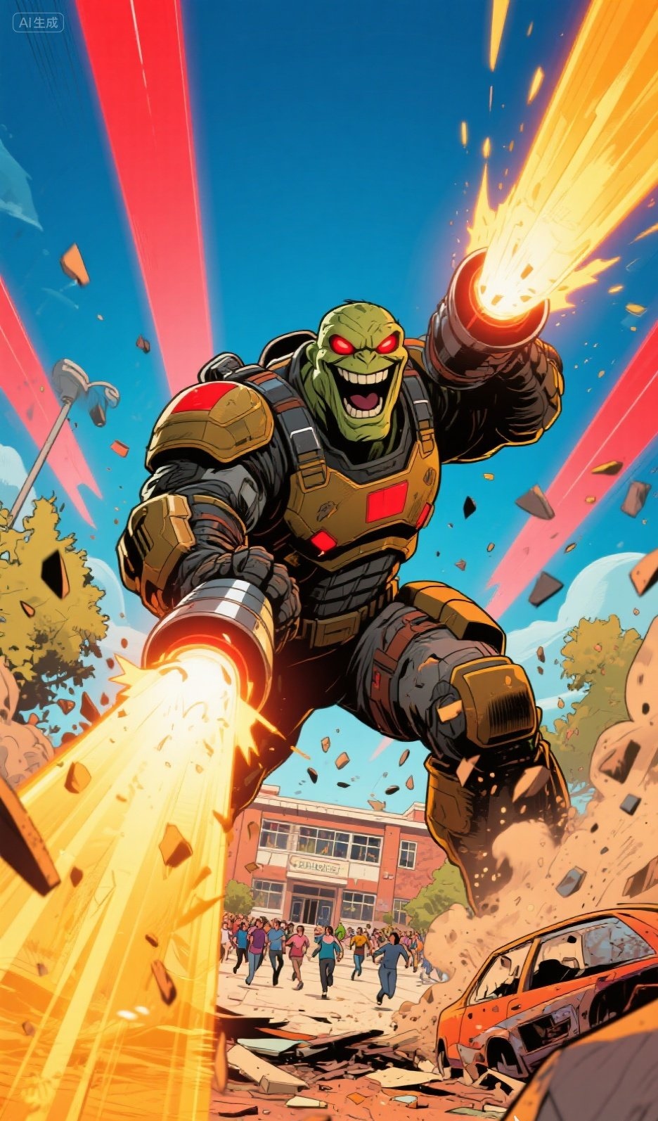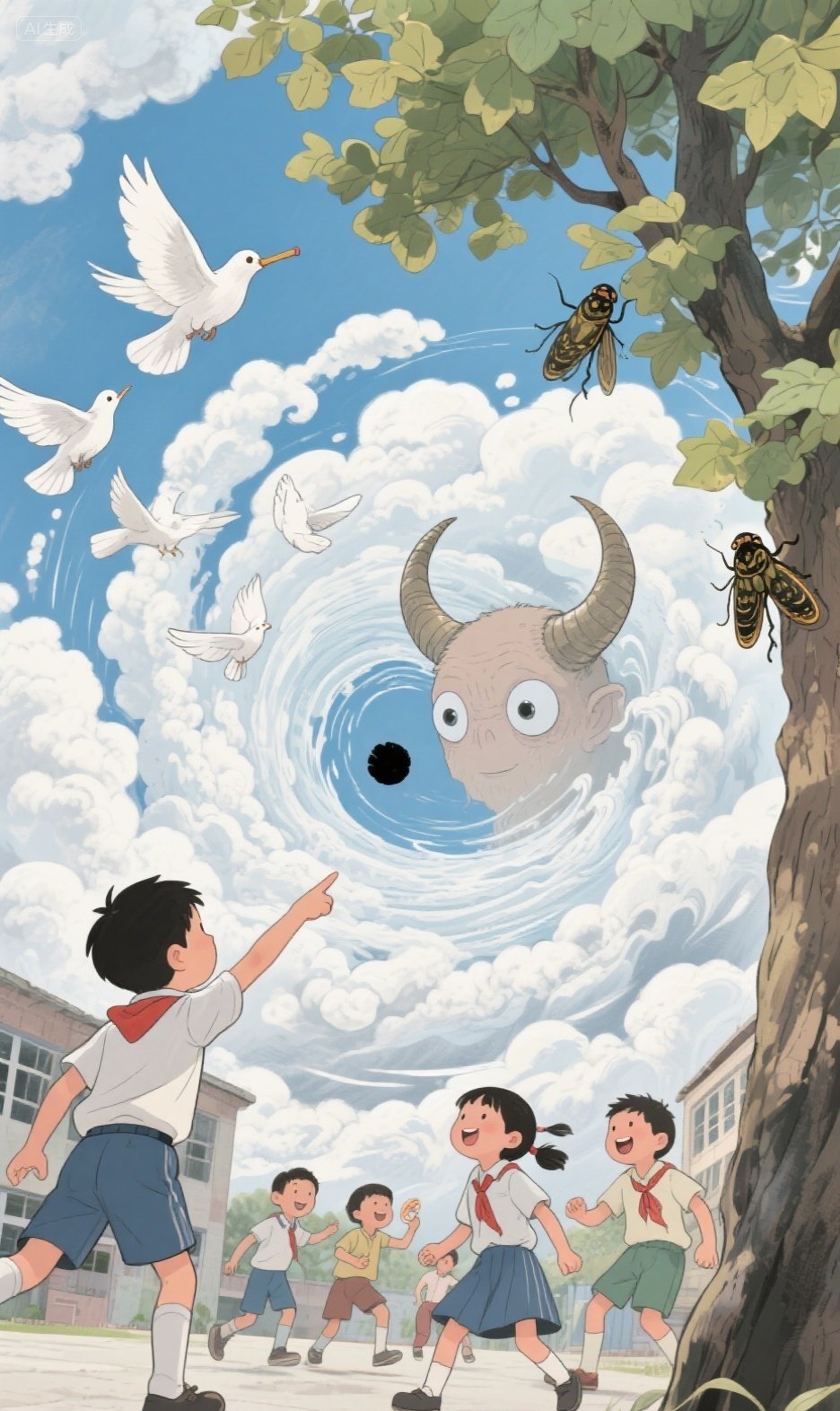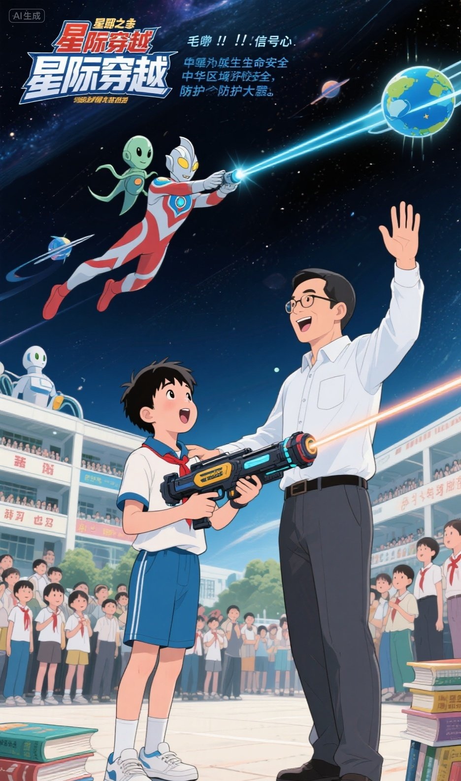 蓝蓝的天上飘着朵朵白云,洁白的云朵像棉花团似的。一群带着哨音的白鸽自由自在地在白云下面疾速滑过。 翠色欲流的梧桐树上,几只蝉儿正在高声唱歌。孩子们正在树下快乐地做游戏,欢乐的笑声在校园里飘荡。 突然,天上的棉花团似的云朵急速沸腾,汹涌澎湃翻滚着像潮水一样向两边漫散开来。在这棉花团的中心,诡异地出现了一个不断旋转的旋涡,而且越来越大! “快看,那是什么?”一个孩子无意向天空看了一眼,发现了这奇异的一幕。正在和他一起做游戏的几个孩子都停下了游戏,顺着他手指的方向,也都发现了这个奇怪的现象。 于是,一传十,十传百,正在校园里做游戏的孩子们,都被这个奇怪的景象吸引住了,大家都目不转睛地看着那个不断翻滚汹涌的棉花团似的云朵,以及那个越来越大的诡异的旋涡。 停了一会儿,那个旋涡里钻出一个小黑点。小黑点向地球快速飞来,越来越近,越来越大。等离地球一千米左右的时候,大家才看清楚那是一个长相奇怪的巨人——头上长着粗壮的犄角,两只眼睛像足球那么大的红灯笼,嘴巴弯弯的,像一把巨型的镰刀,上面的两个鼻孔有小孩的拳头那么大。脖子很短,几乎与身体浑然一体,身体却像寺庙大雄宝殿的柱子一样粗,浑身长满了瘤状的突起,就像难看的赖蛤蟆的脊皮。四肢也有水桶那么粗,手里还拿着一把黑色的巨型宝剑。 孩子们都被这个长相丑陋的巨型怪物吓呆了,有的孩子赶紧飞快地跑进教室躲起来,有的胆小的孩子吓得迈不动步子,瑟瑟发抖地抱在一起。 “哈哈哈!”那个巨型怪人突然发出一道洪钟般的笑声,两只眼睛放出两道红色的巨型光柱,向地面上的校园扫射过来。 正在这时候,学校里突然飞出两道金光,像两发巨型炮弹迎着那两道红色光柱疾射过去。 只听轰隆隆一声巨响,那两道红色的光柱被炸得粉碎,像两团红色的烟雾一样随风飘逝。大家定睛一看,原来是学校新来的老师——毛宇翔!只见他手中拿着一把碗囗粗细的圆筒状金色发射器,正一眼不眨地盯着空中那个巨型怪人。 “哈哈哈,你终于出现了!”那个巨型怪人得意洋洋地发出一阵震耳欲聋的笑声。 只见毛宇翔老师双腿用力一蹬地面,像一发炮弹向巨型怪人疾射而去。 “哇,毛老师会飞啊!”一些胆大的孩子站在操场上,带着无限敬佩和羡慕的神情望向飞到天空中的毛老师。 “请你们马上从虫洞里退回到奥尔特星球,我们艾斯星人受命保护这颗蓝色星球!”毛老师站在那个巨型怪人面前显得很渺小,但是义正言辞的声音却响彻云霄。 “艾斯星人?毛老师是外星人吗?”孩子们顿时议论纷纷起来。“是的,一定是的!他给我们讲课的时候,给我们讲过许许多多新奇有趣的太空知识,还让我们现在好好学习,将来成为探索宇宙奥秘的科学勇士!”一位毛老师教过的孩子,无比自豪地向身边的孩子们介绍说。 “哇,毛老师可真厉害!毛老师是我们学校的英雄,早知道我也跟着毛老师学习了!”一个孩子略带遗憾地说。 “退回去?只要你乖乖地跟我们走,回去见奥尔特星球之主,我们就不伤害这颗蓝星的一花一草!”那个巨型怪人说,“还有,我知道你们艾斯星人在这颗蓝色星球上还有秘密基地,只要你们不是为了霸占这个蓝色星球,独享这里面的宝藏能量,我们后面的大部队就不会进攻这里!”说完,他的一只巨手一挥,身后的空间顿时裂开,一艘艘隐藏的巨型星际战舰显现出来。 “好吧,君子一言驷马难追!我跟你走,希望你能遵守诺言!”毛老师对那个巨型怪人一抱拳,说:“不过临走前我要对孩子们说一句话,请你等我一下!”说完,他转身向校园飞下来。 “孩子,给,这把星际穿越激光发射器既是一件了不起的武器,也是一个信号发射器!如果有外星人侵犯地球,你可以拿着它打击来犯的敌人,也可以朝着太空发射信号,我们隐藏在地球上的艾斯星人看到信号后,就会启动保护地球的防护大阵!”毛老师摸着一个高个子男孩的头,和颜悦色地说,“现在不能光看宇航科技方面的课外书籍,要全面学习所有学科知识,将来才能到更高学府深造,深入钻研宇宙航天知识!加油,我在奥特星球等着你!” 说完,毛老师向全校师生挥挥手,“大家好!我接到艾斯星球之主的命令,奉命来保护蓝色星球华夏区域的生命安全!现在,为了不让奥特星球的战舰毁坏这里,我先跟他们走了!希望孩子们好好学习,将来有机会利用你们先进的航天科技,探索河外星系的宇宙奥秘!”说完,毛老师纵身一跃而起,飞向天空,跟着那个巨型怪人走了。地面上,那个高个子男孩望着手中毛老师送给他的星际穿越激光发射器,神色坚定地冲着毛老师离去的背影大声喊:“毛老师,请您放心!我一定会好好学习,早日研究出瞬移星际穿越飞行器!我们一定会救出你的!” 闻听此言,毛老师会心一笑! …… 本文是一篇科幻小故事,不知道孩子们喜欢不喜欢。希望大家能多提宝贵意见!如果可以,我今后会发一部长篇科幻小说——《外星女王驾到》!#知了童话#