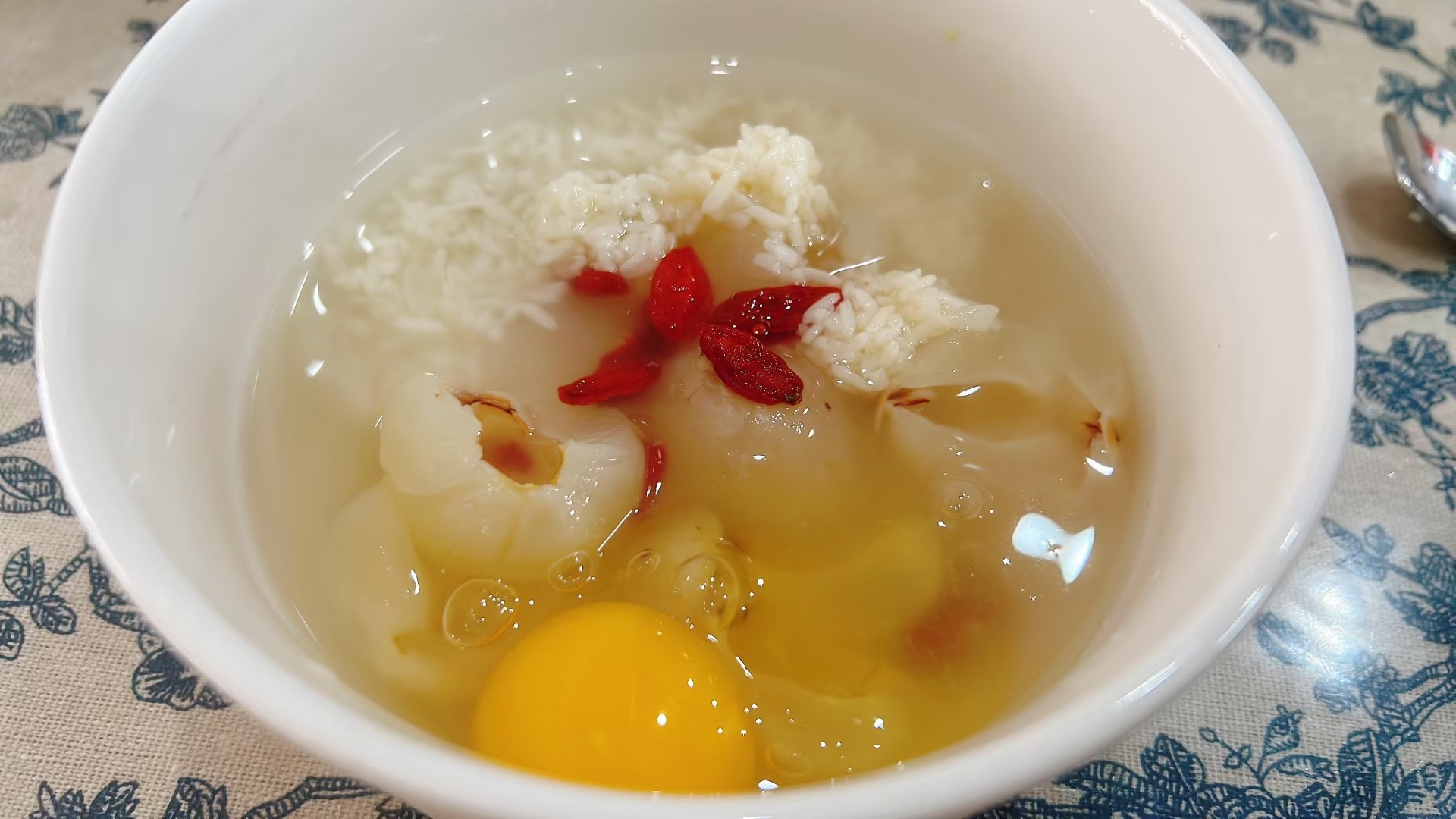 适合女生补气血的方法,喝出好气色 千不要错过这个荔枝醪糟蒸鸡蛋🥣重点是好好吃!一定要记得加水(不然会齁甜) 食材: 荔枝,红枣,桂圆,枸杞,醪糟,鸡蛋 做法: 1⃣️6颗去核的荔枝 2⃣️3颗去核红枣剪开 3⃣️三四颗桂圆(可放可不放) 4⃣️三大勺醪糟 5⃣️适量清水 6️⃣适量枸杞 7️⃣一个生鸡蛋 冷水上锅蒸30分钟就可以啦! #醪糟# #养生# #补气血# #女生变美#