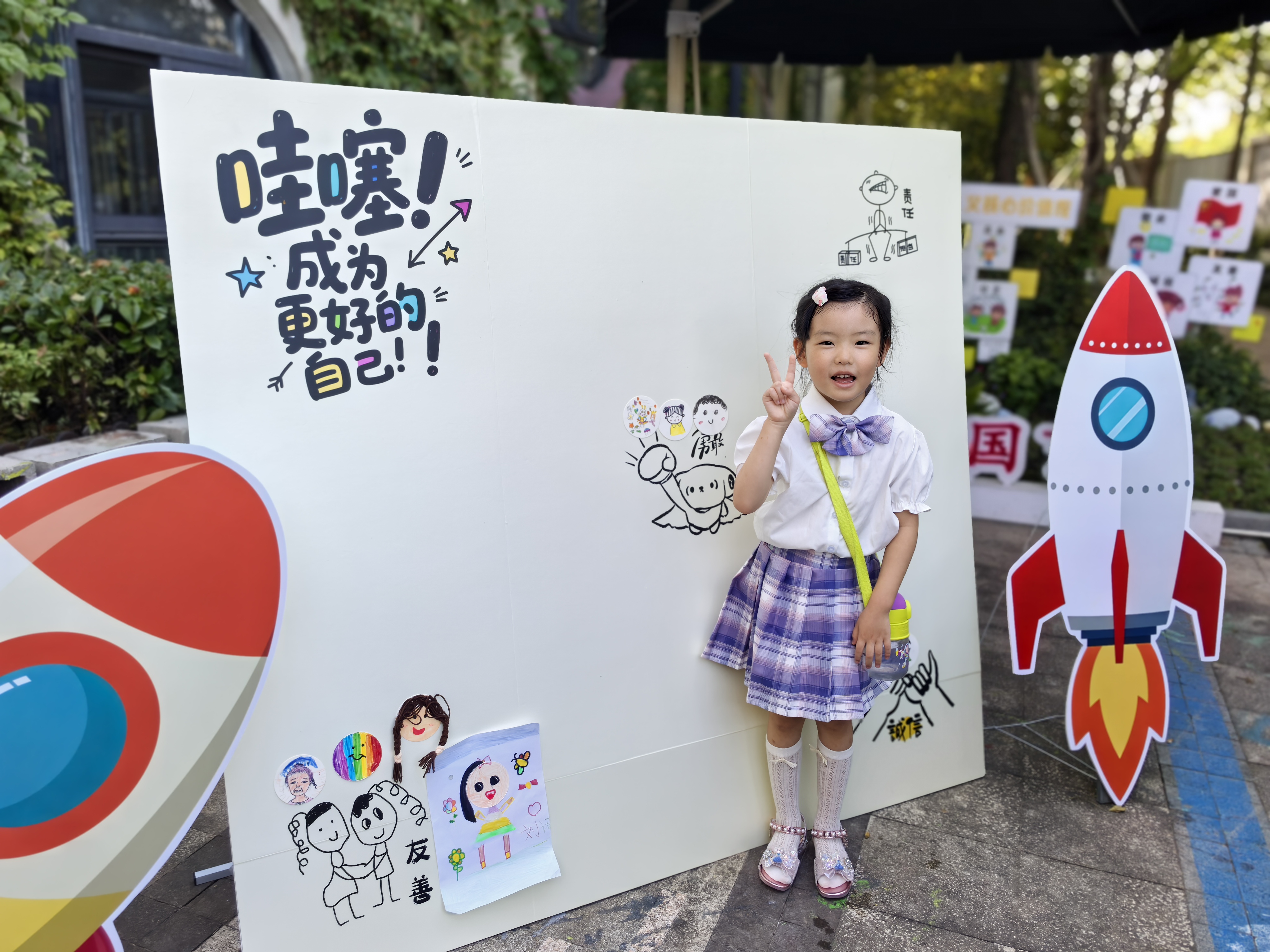 叮咚,你有一趟成长旅行即将启航...... ——杭州市钱江幼儿园2025开学日活动 迎着初秋的微风,杭州市钱江幼儿园的孩子们迎来了满怀期待的开学日。我们以童心为舟,赴成长之约,与孩子们一同开启这场充满奇遇的探索之旅。这趟名为 “成长” 的奇妙旅行,即刻启航,你们期待吗? 小班:爱的初体验,定格美好瞬间 对于第一天入园的小班萌宝,老师们准备了童趣满满的欢迎仪式。孩子们手持喜爱的卡通手举牌,在幼儿园的角落定格专属造型,老师用拍立得记录下这极具纪念意义的入园首照。伴随可爱的魔法口号,大家一同期待影像显现。家长们在 “入园祝福卡”上写下寄语,随后和孩子将照片与祝福卡粘贴在班级专属照片板上,汇聚成一面承载爱与希望的成长之墙。 中班:种子奇遇记,约定共成长 升入中班的哥哥姐姐,开启了与 “种子” 的奇妙约会。幼儿园门口,萝卜、葱、花生三种蔬菜的镂空板点缀着 “种子” 图案,营造出生机勃勃的 “种子世界”。孩子们站在安全线后,将沙包投入对应蔬菜的镂空处,成功后可换取种子卡片,了解背后的美好寓意:萝卜种子祝 “聪明发芽”,葱种子盼 “能干生长节节高”,花生种子寓意 “好事‘花’生”。凭卡片可兑换真实种子或幼苗,孩子们用稚嫩语言诉说与种子共成长的约定,还模仿种子发芽的可爱模样。这份特殊的 “生命礼物”,将在班级种植区续写成长故事。 大班:挑战新自我,集结正能量 作为幼儿园的大哥哥大姐姐,大班孩子的开学日充满挑战与仪式感。入园签到升级为 “挑战成长勋章” 活动,孩子们自主选择 “勇敢、友善、诚信、责任” 中想拥有的品质板块,贴上自画像,再领对应能量星贴到 “成长火箭” 上,并大声说出对大班生活的期待。当所有能量星集结,全体幼儿在老师带领下齐声呐喊:“能量星已加满!火箭起飞!” 响亮的口号宣告新学期开启,更彰显了迎接挑战、茁壮成长的决心。