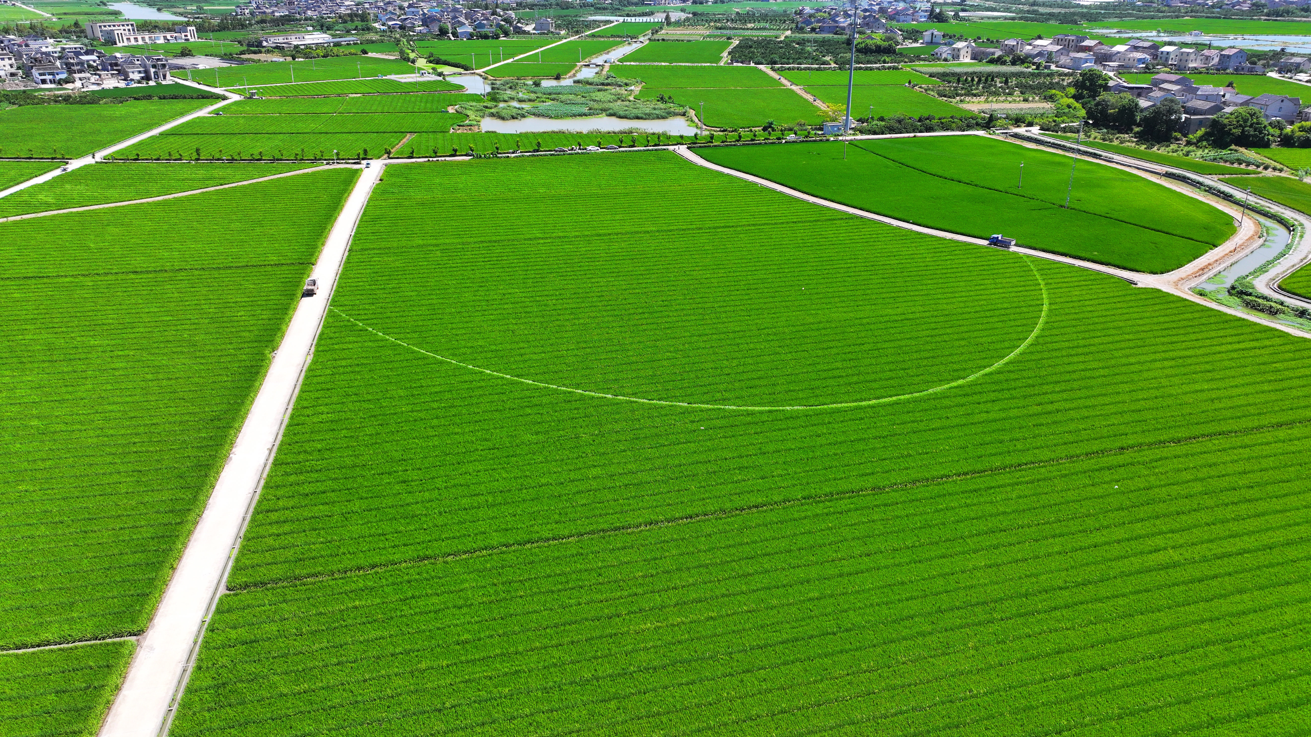 稻风拂绿 稻田铺展成巨大的绿色画卷,阡陌纵横如脉动,流淌着自然的韵律与生命的蓬勃。(长街镇 周震霄/摄)