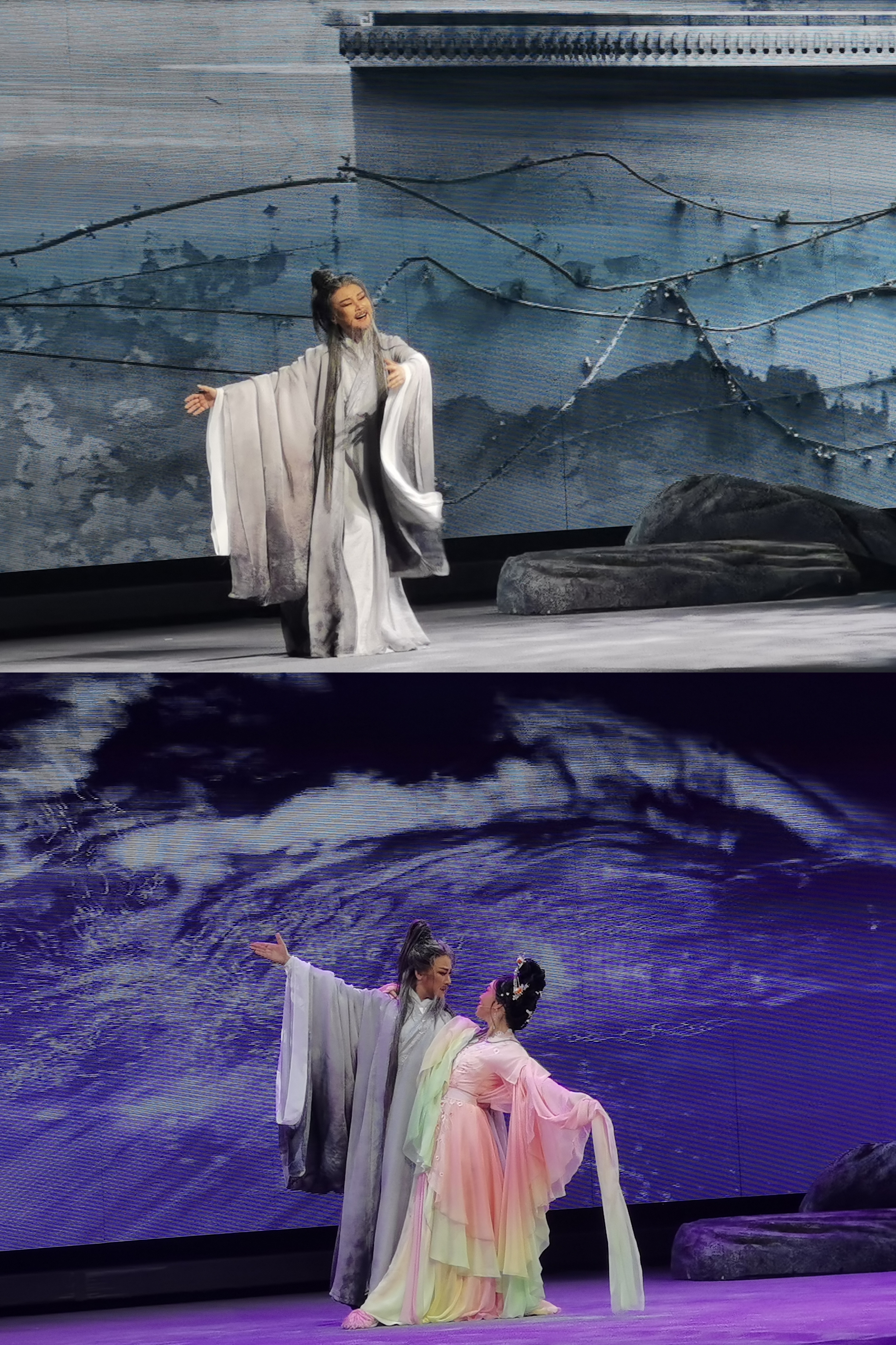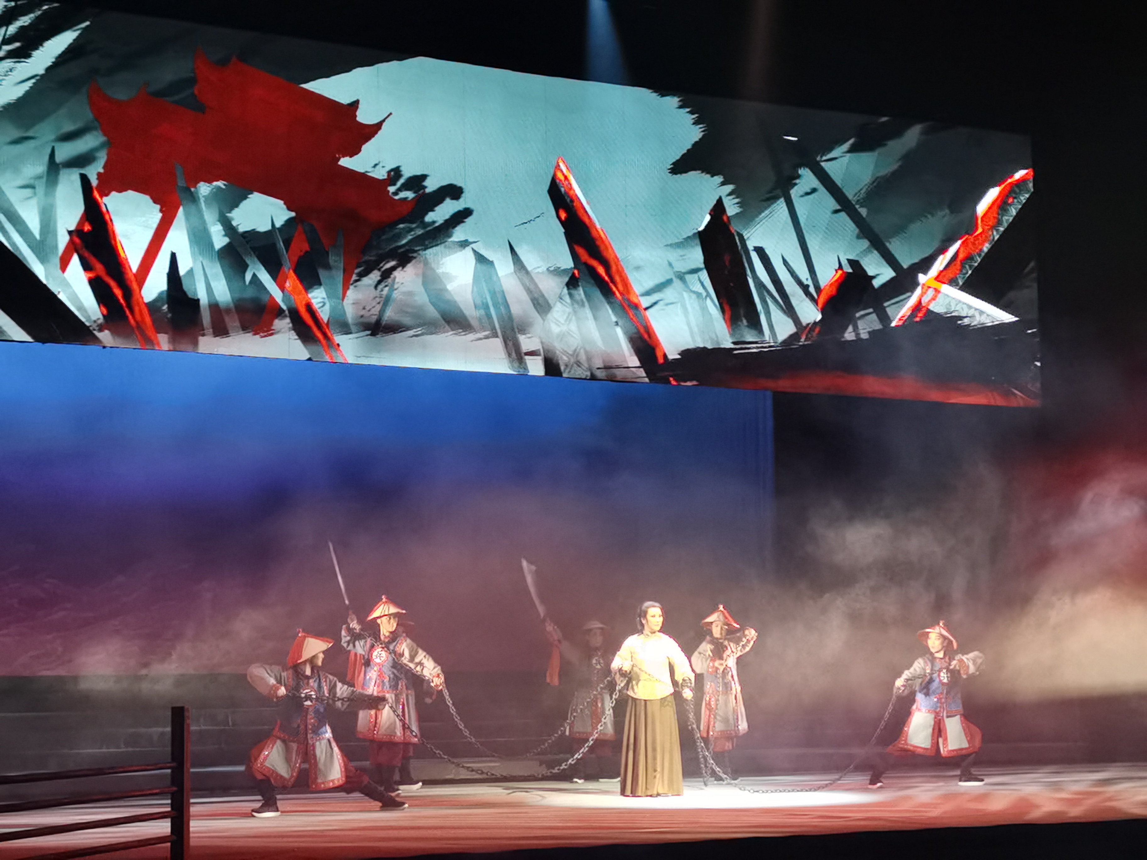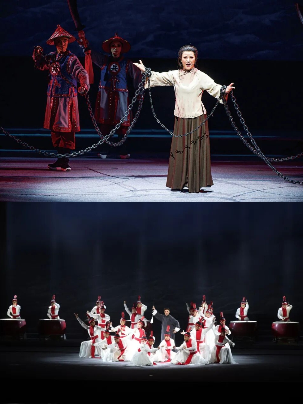越剧史诗《胆剑千秋》,适合所有想打造ip宇宙的地方文旅来逐帧学习!被上天恩宠的绍兴,打造了一个“人杰地灵”的完美样本! 本剧还适合戏迷带着自家宝贝来,范仲淹、徐渭、王阳明、姚启圣、鲁迅、秋瑾等越地风流人物,在四位梅花奖得主吴凤花、陈飞、吴素英、张琳的演绎下,就这么活了过来。 本剧不仅融合了数十种越剧流派唱腔,每一幕还有四位绍兴师爷化身嘴替,用深入浅出的莲花落通古达今,用流行的语汇插科打诨。 尤其是那句“中国人的事,中国人会自己办好的”“天若有裂缝,我有女娲补天;海若有陷,我有精卫填海”。胆剑气韵,绵延不绝! 范仲淹是所有士大夫立身处世的标杆,勤政爱民、清白自守。贬谪越州知府时,拜瞻先祖范蠡旧宅,掘青白泉,以表廉洁忍穷的决心。他又何尝不懂清官之苦累,只是不为斗米折腰罢了! 文正公在南阳花洲书院写《岳阳楼记》,那句“不以物喜,不以己悲”流传后世;在绍兴稽山书院写《清白堂记》,那句“清白而有德义,为官师之规”经久不衰。谁能无愧一贤风,唯留清白在人间。 徐渭是明代艺坛第一人,明代三才子之一,生相由来不附人,满腹奇才却命途多舛。青藤先生不懂谄媚,七入牢狱,八试不第,九次自杀,却不愿妥协世俗。 失意落魄成就了这位全能大才,他痴心丹青,在书画、诗文、戏曲等领域皆造诣颇深。本色气自华,哪管身前身后名。 谢道韫是智勇兼备的白富美,是王羲之的儿媳,是谢安的侄女,也是风致高远的清谈大家,有咏絮之才的巾帼英雄,有林下风气的侠女。《雪中悍刀行》中徐渭熊便是以她为原型创作的。 面对强敌进犯,谢道韫鼓励夫君王凝之积极备战,并亲自练兵;夫君遇难后,她又临危不惧,带领家中女眷奋勇杀敌。哪怕斧钺加身,依然视死如归,以一己之力庇护全城百姓。怎一个大义凛然,胆气冲天!