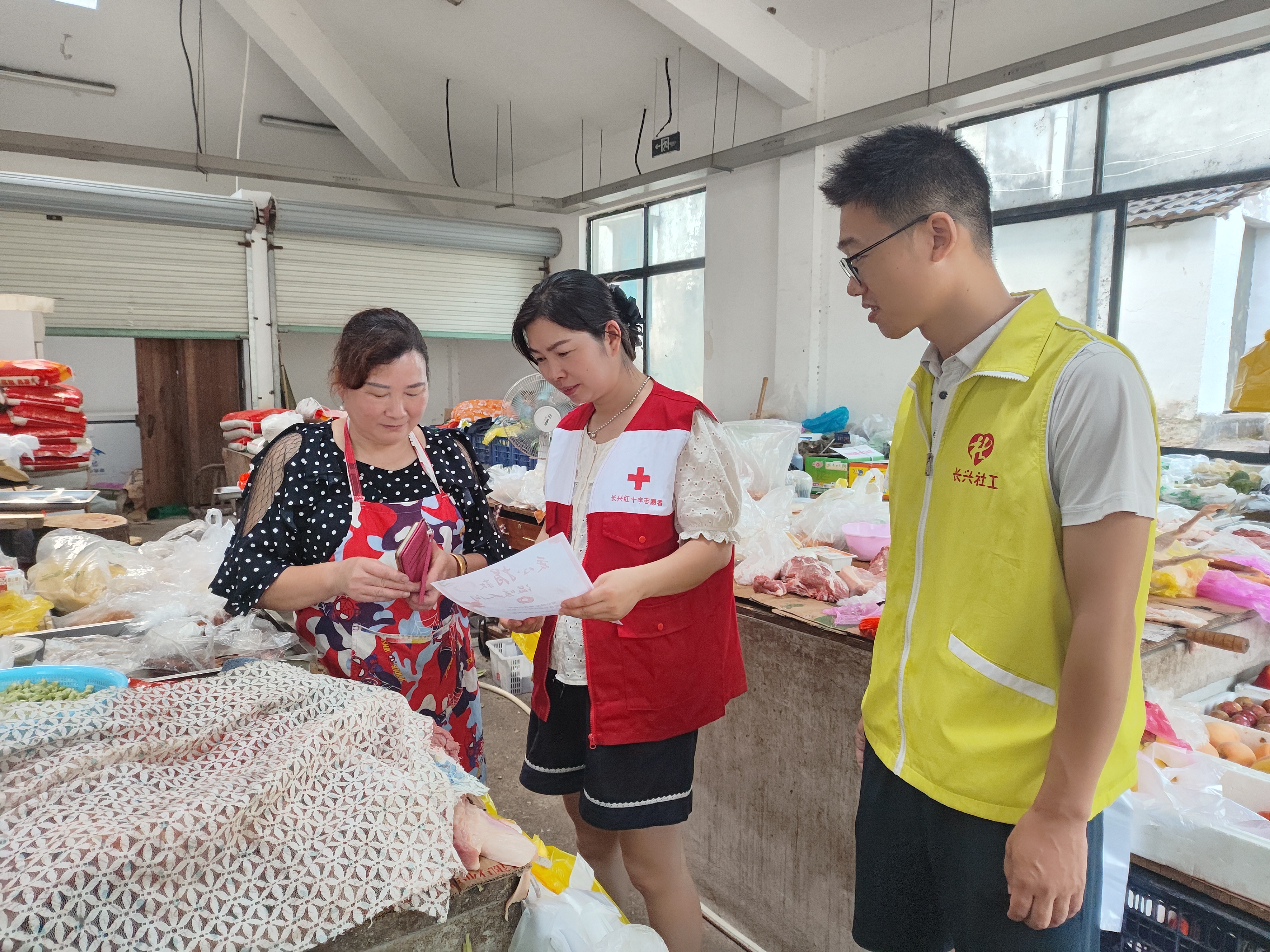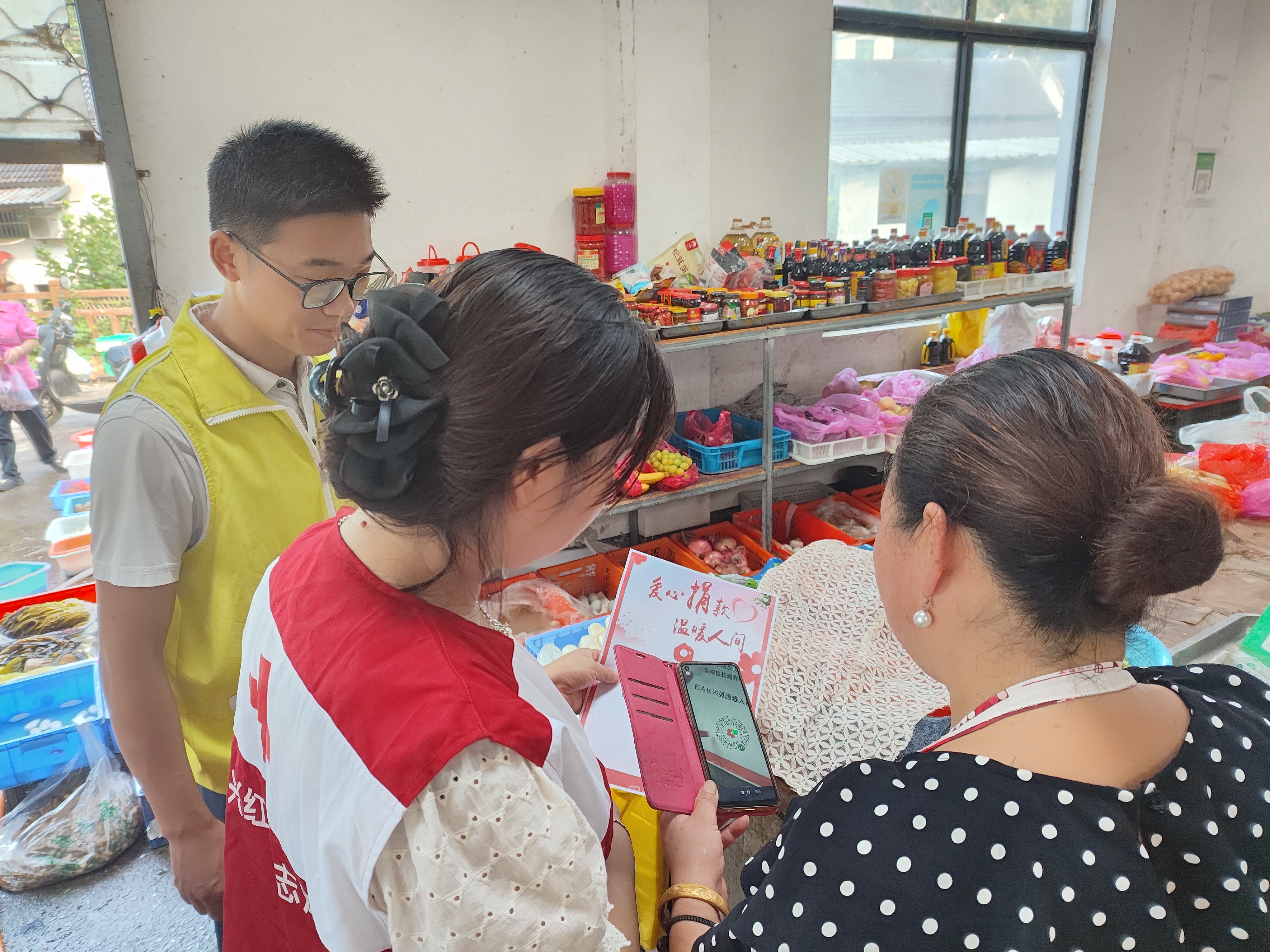 近日,泗安镇长潮岕村红十字志愿者、社工在村菜场集中开展五八公益红十字爱心捐款活动,活动现场,红十字志愿者们耐心向过往村民讲解捐款用途:从灾害应急救助到困境群体医疗帮扶,每一笔善款都将用于实实在在的人道主义服务。不少村民驻足了解后,纷纷主动献出爱心。这场菜场的公益活动,让爱心融入日常烟火气,既传递了“人道、博爱、奉献”的红十字精神,也让村民们在买菜的间隙,用举手之劳为需要帮助的人搭起温暖桥梁。