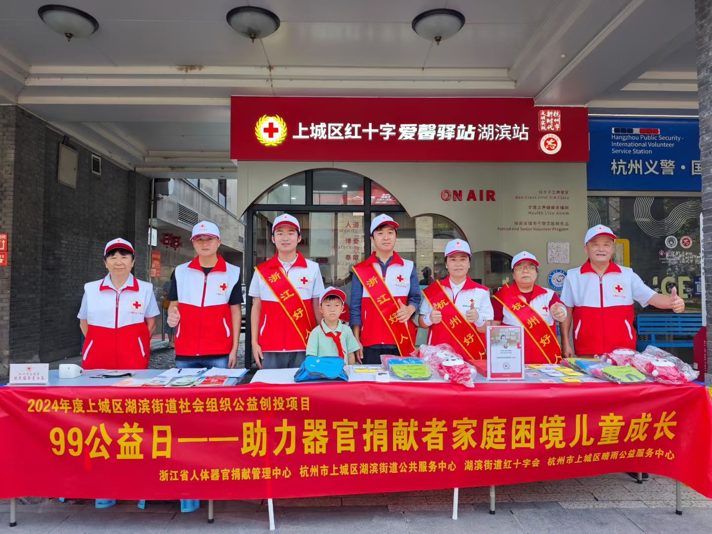 99公益日,为助力器官捐献“小桔灯”项目,晴雨公益作为由浙江好人、杭州好人传承的公益组织,红十字志愿者们,身披“好人”绶带,共同开展公益活动,为器官捐献者家庭困境儿童成长贡献力量🫡🫡🫡