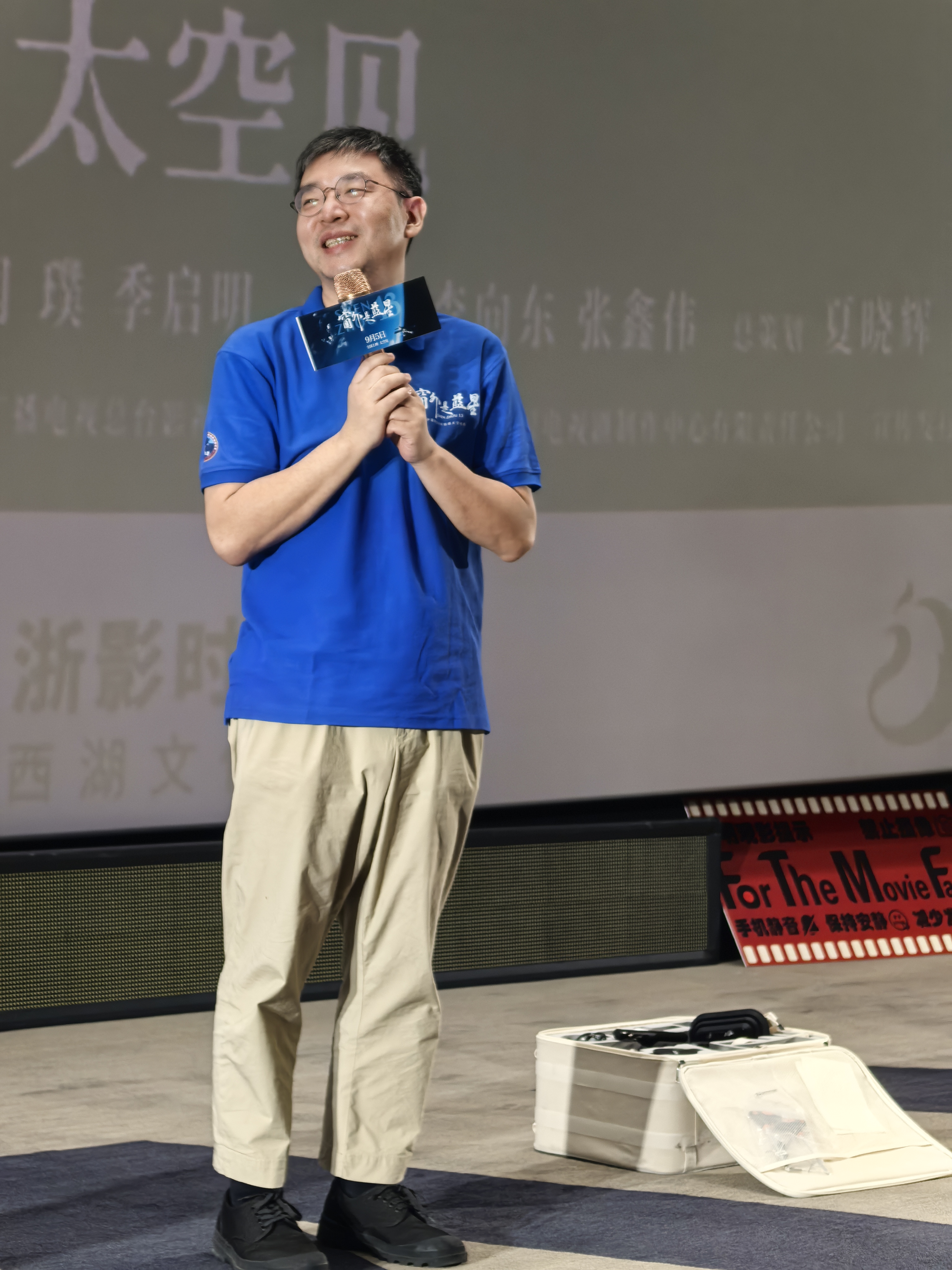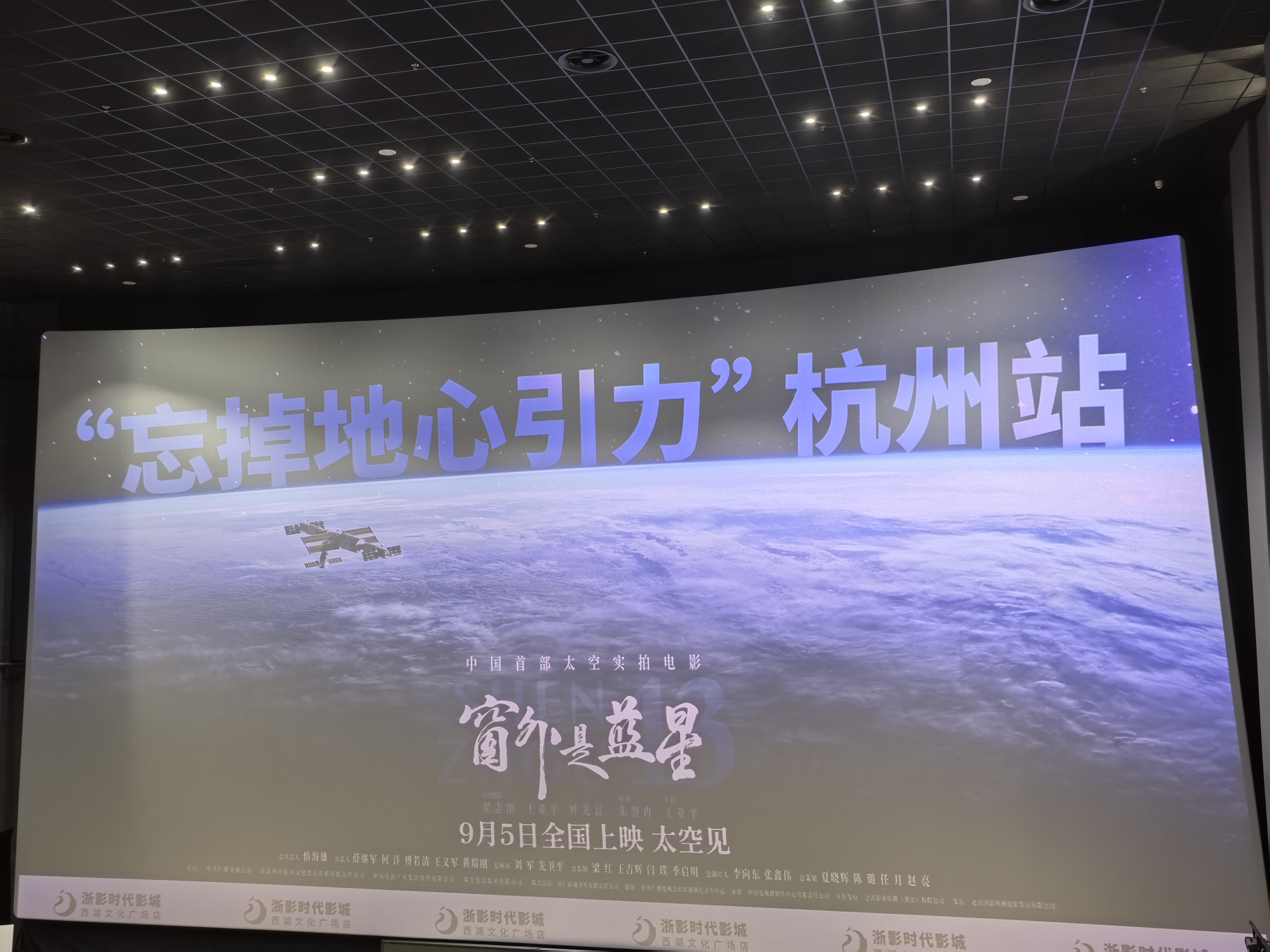 感谢潮闻小编导训练营的开学福利,9月6日周6晚上我在西湖文化广场电影院观看了IMAX版本的中国第一部太空8K实景拍摄影片《窗外是蓝星》,“感觉良好”是航天员向地面指挥中心报告个人状态的标志性用语,也是我对这部影片的观后感。 电影里,我第1次近距离了解24小时能看到16次日出日落的3位航天员翟志刚(影片里他写了一副春联好书法、本片名也是他的题字)、王亚平(带了女儿照片和女儿的Hellokitty毛线挂件飞天)、叶光富(以吹葫芦丝、玩华容道和魔方为太空休闲)在没有地心引力的中国空间站里的日常生活和工作记录,也深深为我们祖国的伟大航天事业而骄傲。片中的旁白者王亚平是中国首位太空漫步的女航天员,她感慨:“我们何等幸运,随着中国在人类航天工程的进步来到这峰顶。用科学的伟大来提醒自己,人类有多么渺小。” 从空间站的舷窗往外看,地球这颗蓝星有大片的海洋,巍峨的山脉、广袤的沙漠、雄伟的高原……适合人类居住的区域特别少,却承载着我们挚爱的一切。夜幕降临,璀璨的万家灯海是人类文明的点亮,这颗蓝星正因为有了人类聚居,才在茫茫宇宙中如此不同。宇宙浩瀚,人类不可能永远生活在地球这个星球上,而是要去远航,去无止境地探索太空,去寻找下一个家园。 观影结束,来自杭州拱墅区的该片导演朱翌冉(也是中央广播电视总台影视剧纪录片中心导演)与大家见面亲切互动,有用家乡话为该片打Call,现场还有小朋友观众提问和献上宇宙畅想画作、浙江省天文学会陈志平博士等谈了观影所感。#窗外是蓝星# #潮闻小编导训练营#