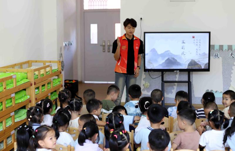 “童语同音•黔路同行”——苏州职业技术大学暑期社会实践志愿服务团队赴贵州榕江开展推普活动实践 为深入贯彻落实教育部、团中央关于加大国家通用语言文字推广力度的工作部署,切实发挥语言文字在凝聚人心、促进各民族交往交流交融中的重要作用,2025年暑期苏州职业技术大学组建师生志愿服务团队赴贵州榕江开展以“推广国家通用语言,筑牢中华民族共同体意识”为主题的专项调研实践活动。活动以文化赋能推普工作,将政策要求转化为服务基层的生动实践。本次实践活动紧扣教育部“全面加强国家通用语言文字教育,提升国民语言文字应用能力”及团中央“组织青年深入基层开展实践服务,凝聚青年力量服务国家发展大局”要求,创新采用“国家通用语言推广+苏榕文化交融”的双驱动模式,在推广语言的同时厚植民族情感。 志愿者团队走进榕江县古州镇富民小区幼儿园,以江南童谣为载体,带领孩子们学唱普通话儿歌,结合苏州职业技术大学石湖智库编纂的《苏州运河十景故事》以及教育与人文学院教师团队创作的绘本与动画故事,生动讲述苏州运河故事及《书本里的蚂蚁》等儿童故事,用趣味引导让孩子们敢于开口、乐于表达。同时志愿者团队通过教授小朋友绘制昆曲脸谱、编排江南童谣联唱、民谣朗诵等,与孩子们共同互动交流,在轻松欢乐氛围中巩固普通话应用。志愿者带领大班幼儿开展“江南与苗侗画信”活动,引导孩子们用普通话介绍自己的画作。举办成果汇报会,精心编排童谣串烧、画信展示、昆曲与侗歌联唱等节目,带领孩子们自信展示学习成果。在榕江县古州第二小学,志愿服务团队融入苏州园林文化、昆曲文化、榕江侗族大歌等地域特色文化元素,设计“诗词朗诵+民俗分享”的沉浸式课堂。大学生志愿者用标准普通话带领当地中小学生诵读经典诗词,讲解不同民族的文化故事,引导孩子们在语言交流中感受各民族文化的独特魅力,树立“各民族一家亲”的理念。 在榕江“村超”足球场,志愿者团队搭建“国家通用语言推广互动区”,通过“普通话解说非遗”“多民族语言互学”等互动活动,向少数民族群众及游客普及国家通用语言应用知识,同时邀请不同民族群众用普通话分享生活变化、交流文化体验。现场群众纷纷表示,国家通用语言让跨地域、跨民族的沟通更顺畅,也让大家更真切地感受到中华民族文化的多样性与统一性。志愿者团队深入侗寨村寨与幼儿民族家庭,围绕“方言守根、普通话架桥”的调研主题,与当地群众深入交流国家通用语言使用情况。调研发现,92%的受访者认同“学好国家通用语言能更好地融入社会发展,同时传承好本民族方言文化”。 此次实践活动是苏州职业技术大学落实教育部、团中央工作部署的具体行动,充分高校发挥育人功能、组织青年服务国家通用语言推广战略的重要尝试。参与实践的大学生纷纷表示,此次活动不仅提升了语言推广与社会服务能力,更在基层实践中深刻理解了国家通用语言文字对于筑牢中华民族共同体意识和文化强国建设的重要意义 下一步,学校将以此次实践为基础,持续深化与榕江的合作,推动“国家通用语言推广实践基地”建设,进一步落实教育部、团中央工作要求,让国家通用语言文字成为连接各民族的“连心桥”,为铸牢中华民族共同体意识贡献高校力量。