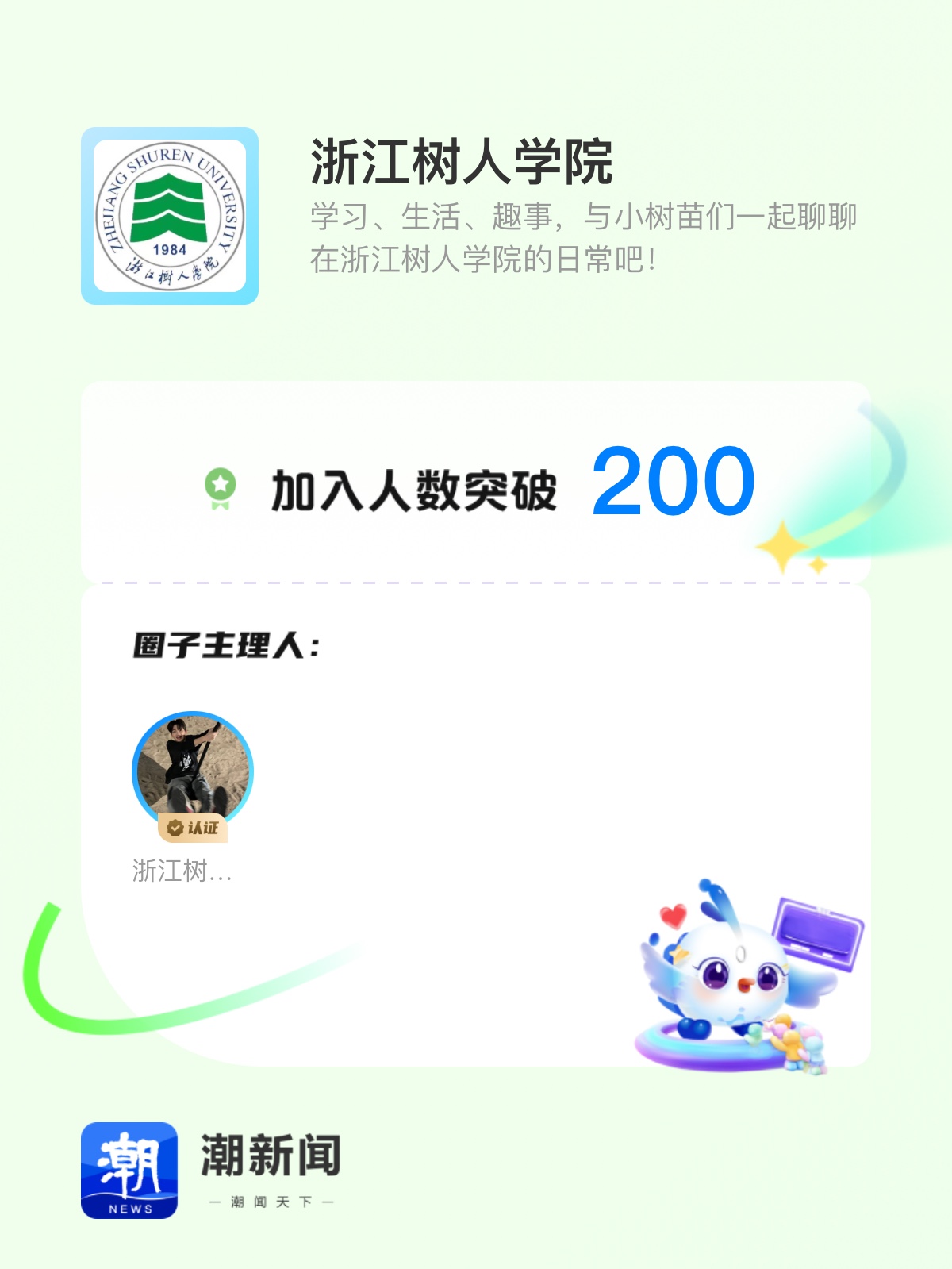 我主理的“浙江树人学院”解锁新成就「加入人数突破200」,感谢大家的支持,欢迎来圈子互动交流!