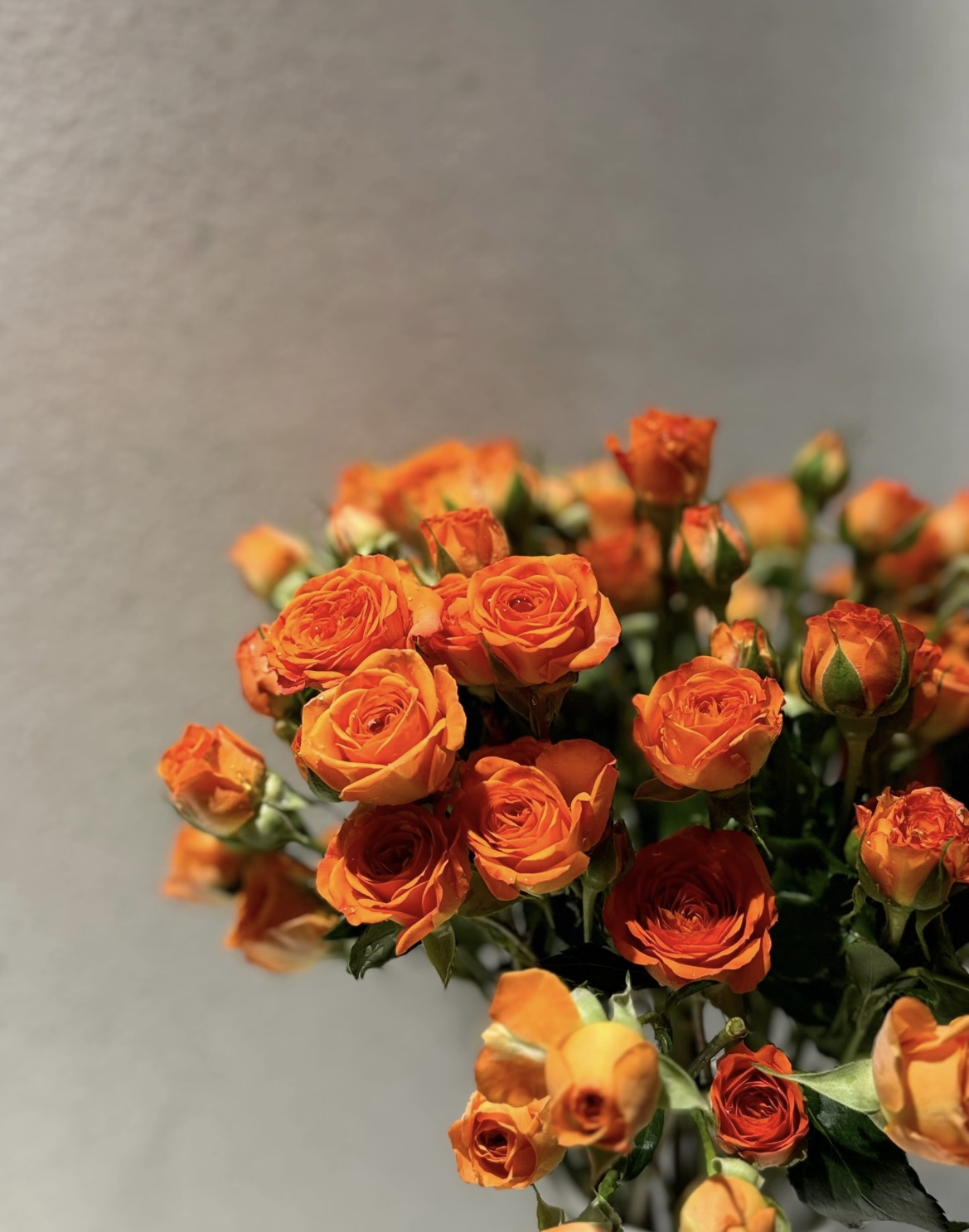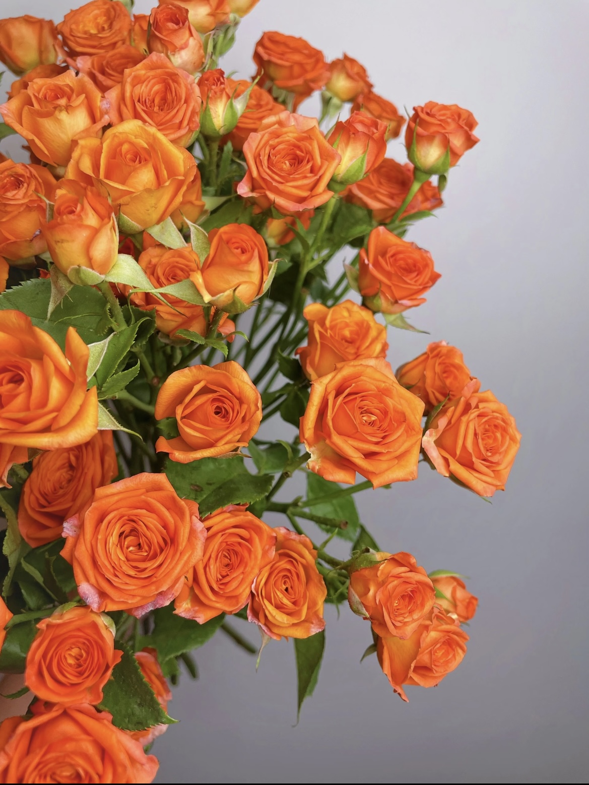 每天认识一种花 多头玫瑰——橙色芭比 橙芭比又叫橙泡泡,亮橘色的玫瑰,像橘子汽水一样,给人青春洋溢之感,花苞繁多,精致小巧可爱。当每一朵花苞都绽放展开时,格外缤纷亮眼,十分受到年轻人的喜爱。热情甜蜜的色彩,被称为“太阳的颜色”,花瓣是明艳的橙色,热烈温暖;希望我们的人生也同橙芭比一样富有活力,永远像阳光一样朝气蓬勃,不但温暖自己,也温暖别人~ 花语:羞涩告白、青春阳光、温柔可爱 花期:10-15天(鲜切) 赠送对象:恋人、爱人、朋友、 科属:蔷薇科 蔷薇属 养护技巧: 1️⃣修剪:根部45度斜剪,增加吸水面积 2️⃣水位:中高水位养护,大约花瓶高度的一半 3️⃣换水:每1-2日换水一次 4️⃣清洗:每次换水时将花杆和花瓶一起清洗干净 环境需求:通风,阴凉处。 tips:橙芭比颜色丰满,适合做干花,养到一定程度倒挂在阴凉处即可。
