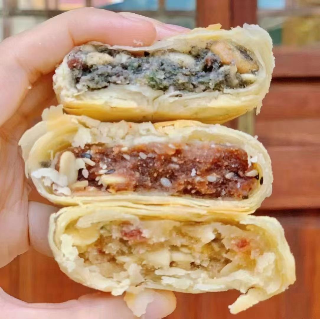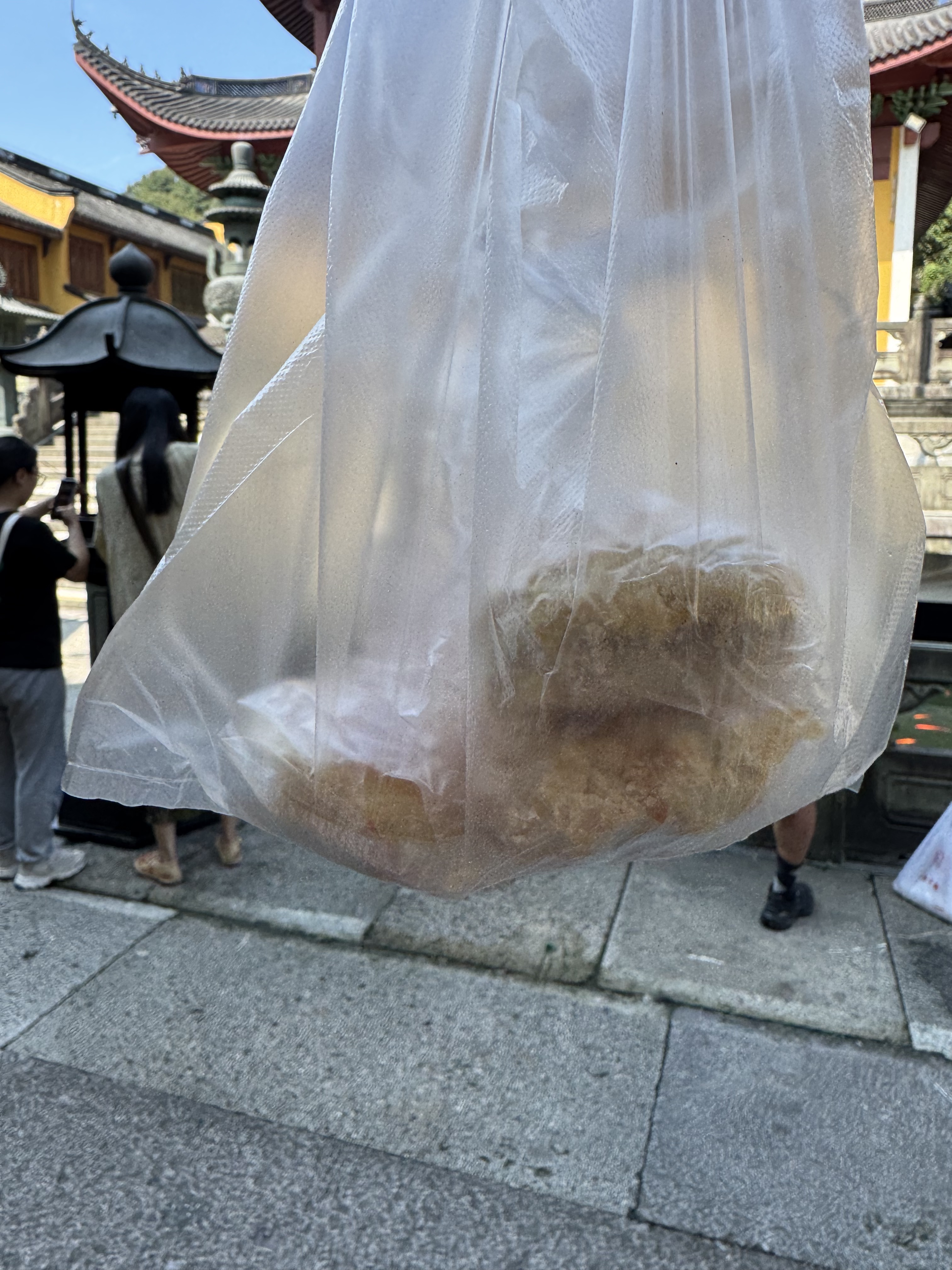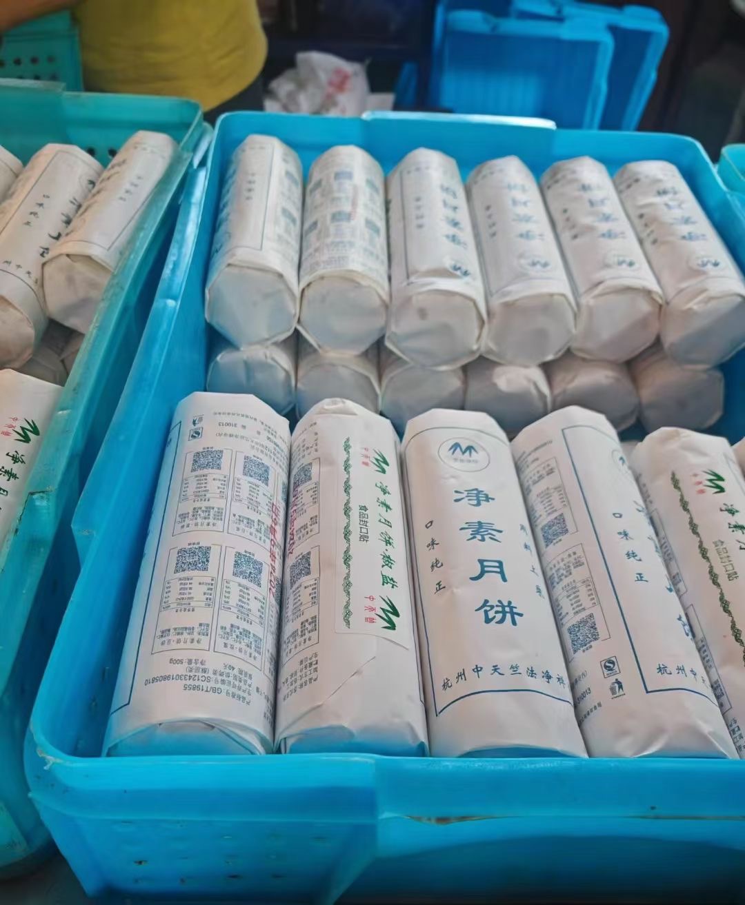 起个大早,兴冲冲的跑去法净寺购买素月饼,到了以后一阵高兴,今天人好少呀,上前一问,清晨6-7点被就被代购们和香客开始疯狂抢购,原来是错觉呀,最后只能购买椒盐味道的散装月饼,桶装也只有百果味的了,可见现烤的多深受喜欢。