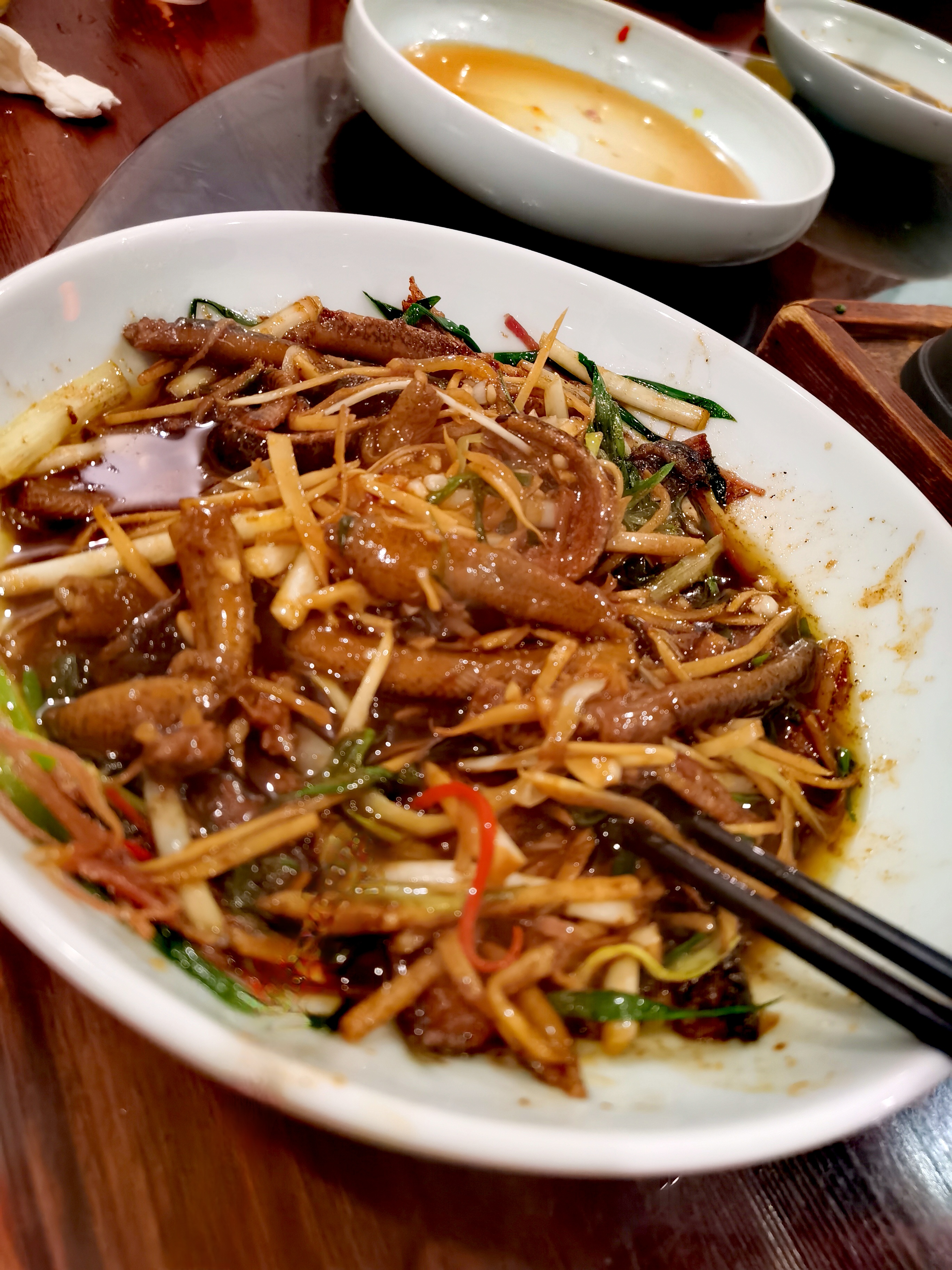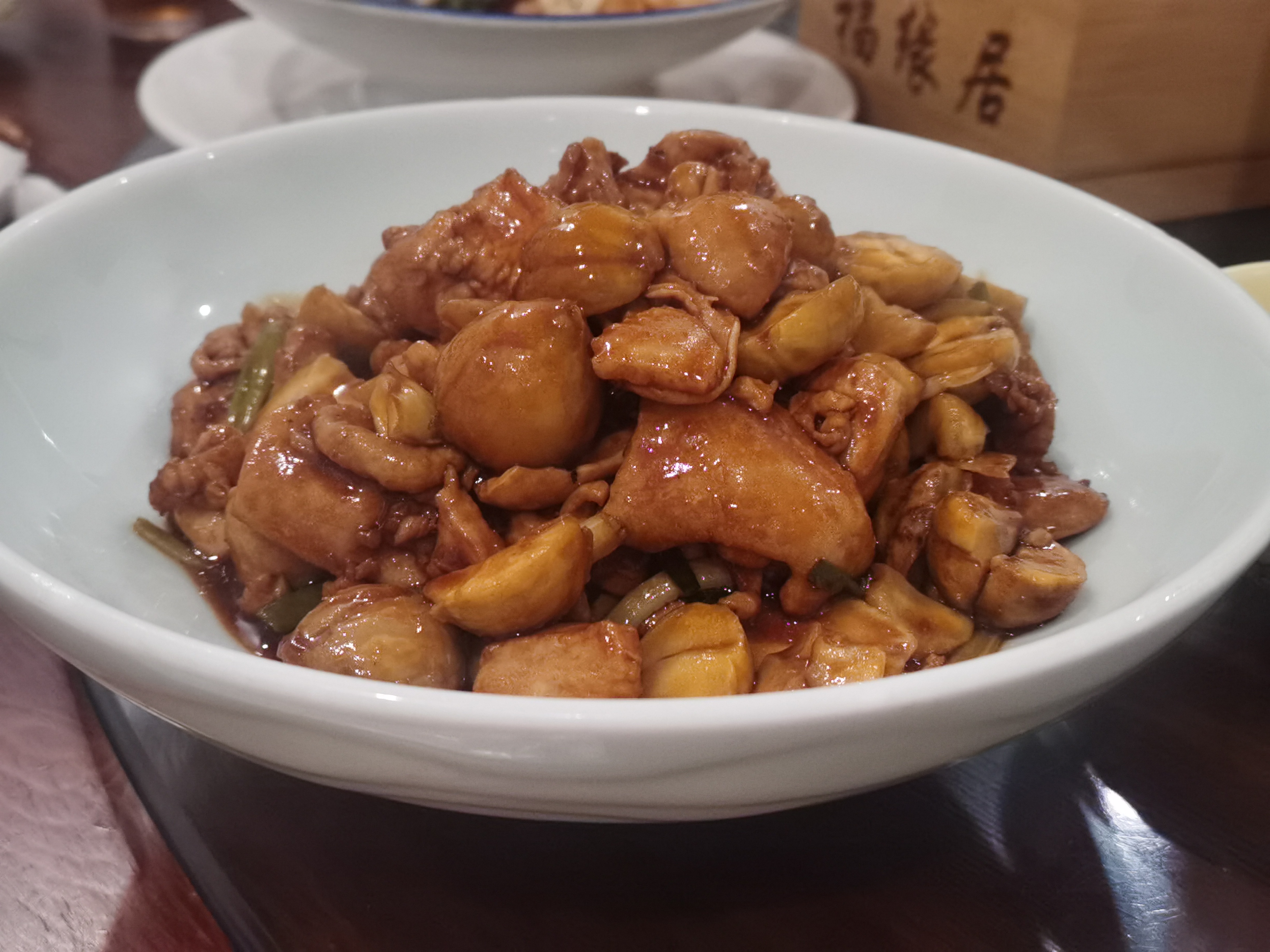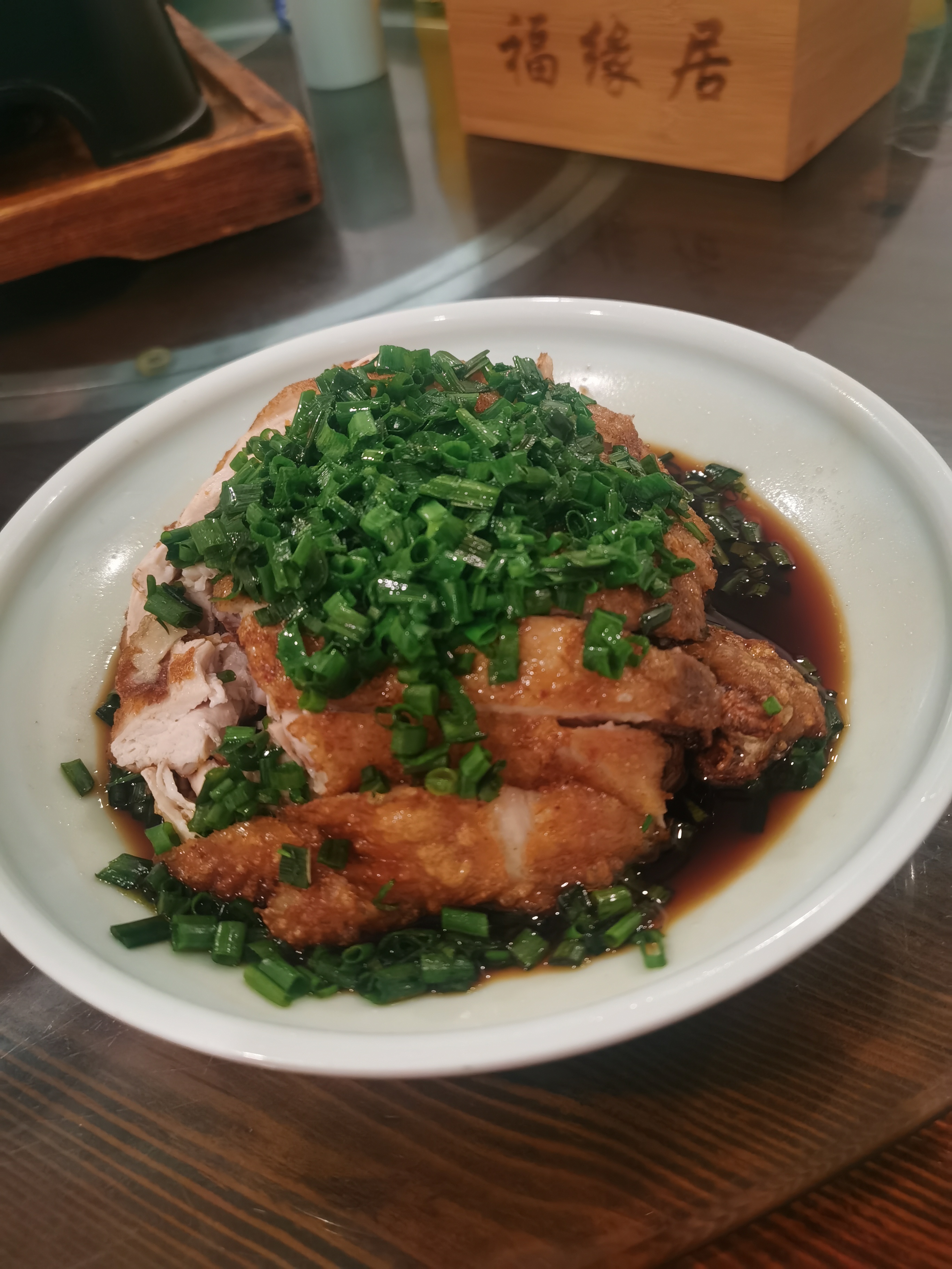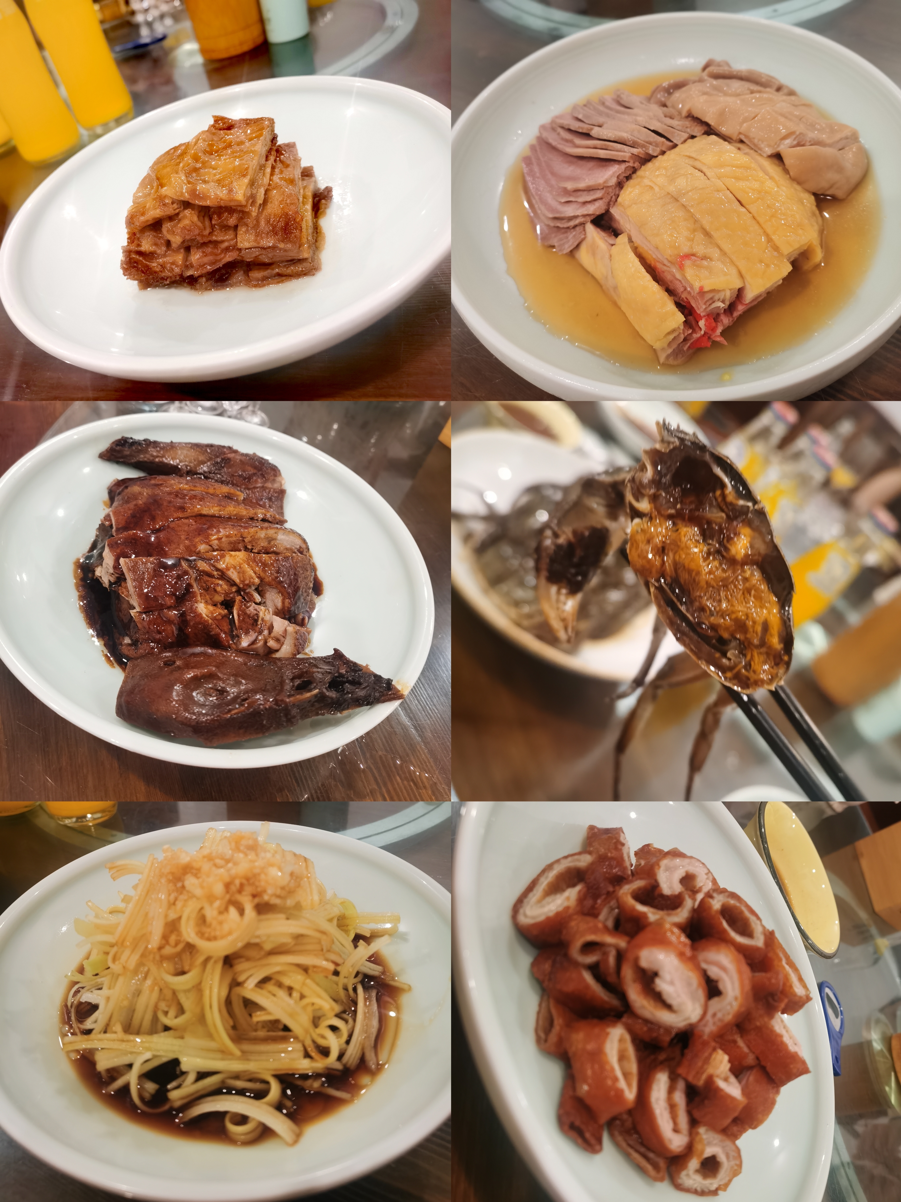 今日在福缘居赴了一场中式宴席,卤味拼盘、酱鸭、素烧鹅、醉蟹、脆皮大肠、凉拌芹菜杆等冷盘先上,接着热菜登场,鳝丝、油淋鸡、红烧甲鱼、板栗烧鸡香得冒泡,沼虾汤鲜掉眉毛。家常菜里藏着传统魂,配菜时蔬清爽解腻。凉菜里第一个光盘的是素烧鹅 脆皮大肠处理的很干净 不蘸酱直接吃也很赞,人生中第一次吃醉蟹 一点不腥汁调的很好,鳝丝、甲鱼微微辣应该是胡椒辣 很入味 ,板栗烧鸡 鸡肉很嫩 板栗很甜,油淋鸡 很香,家烧鱼块 据说是传统的妈妈味