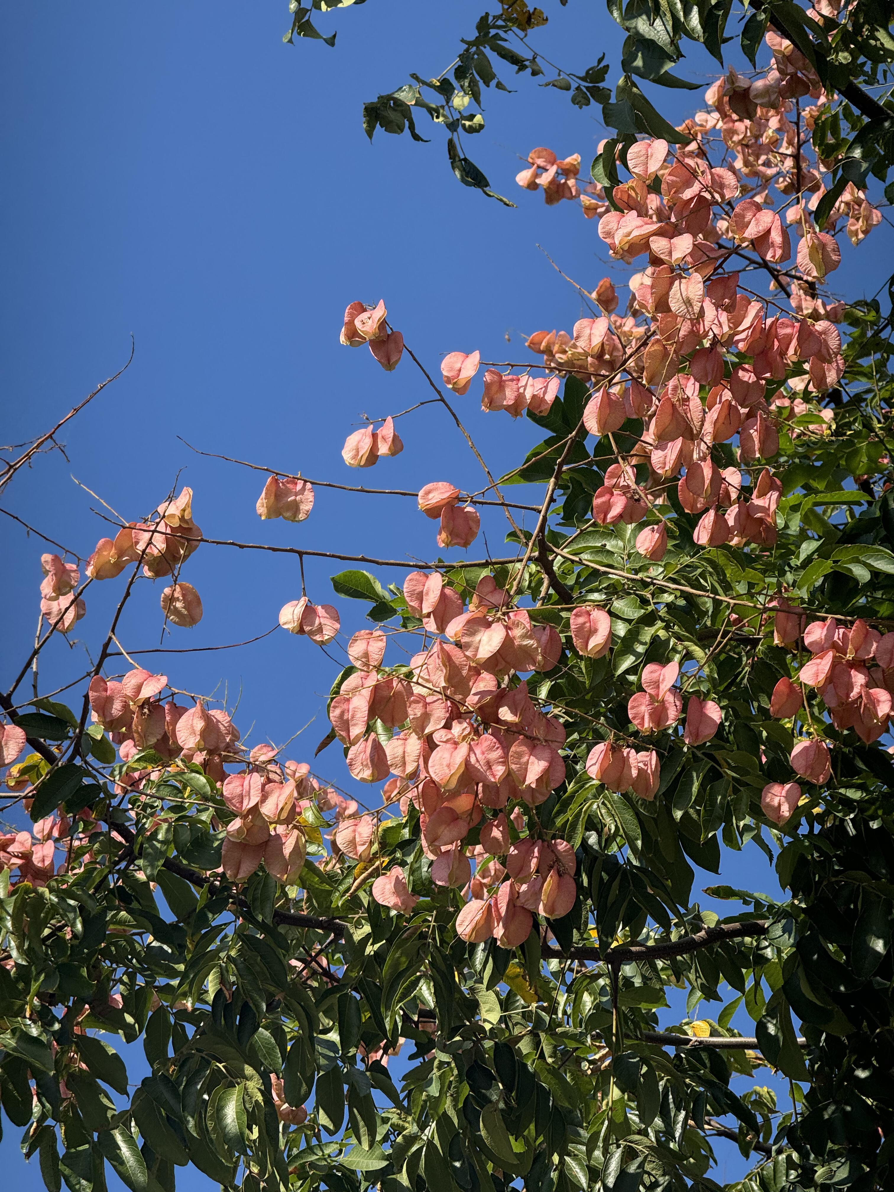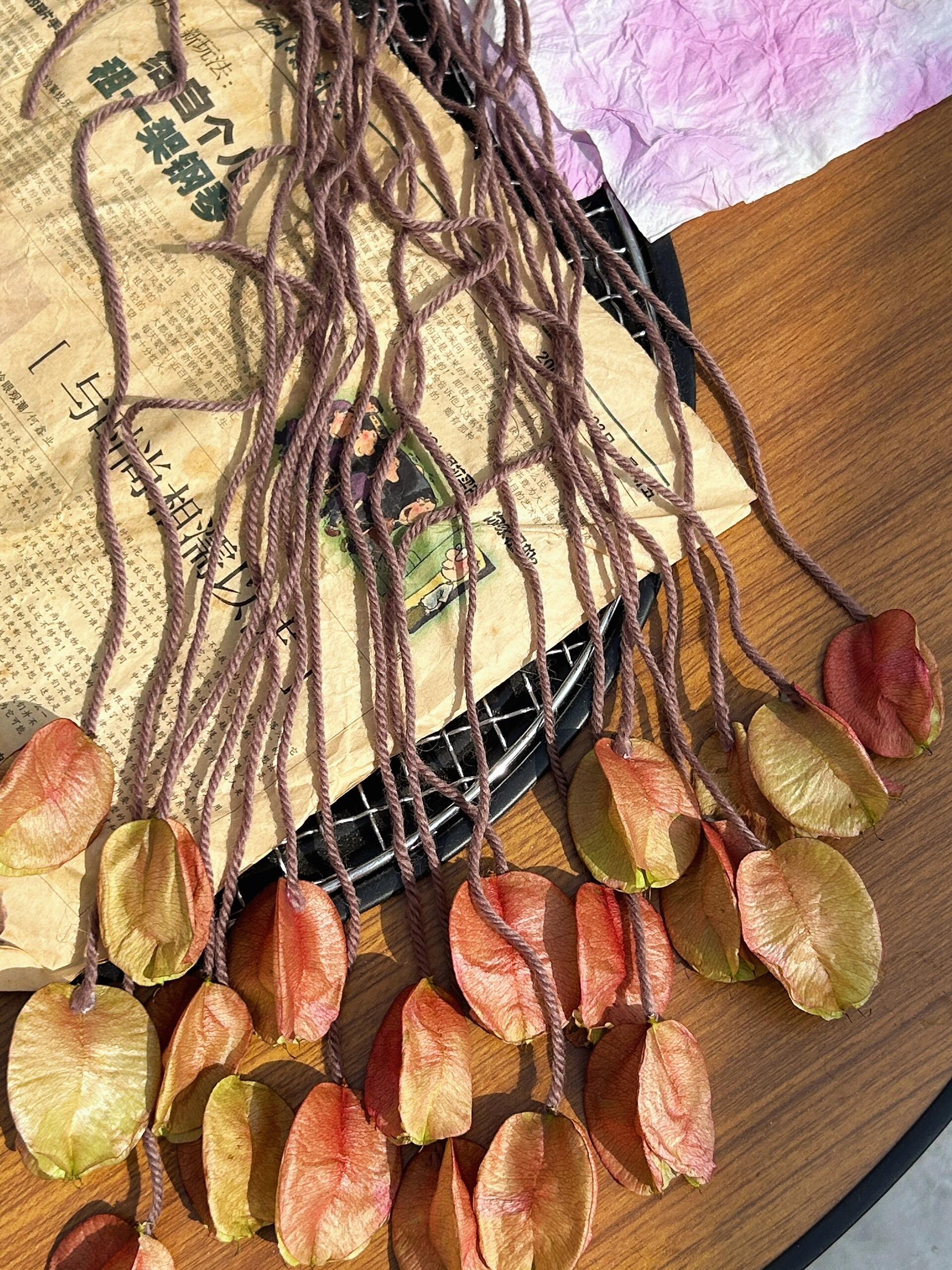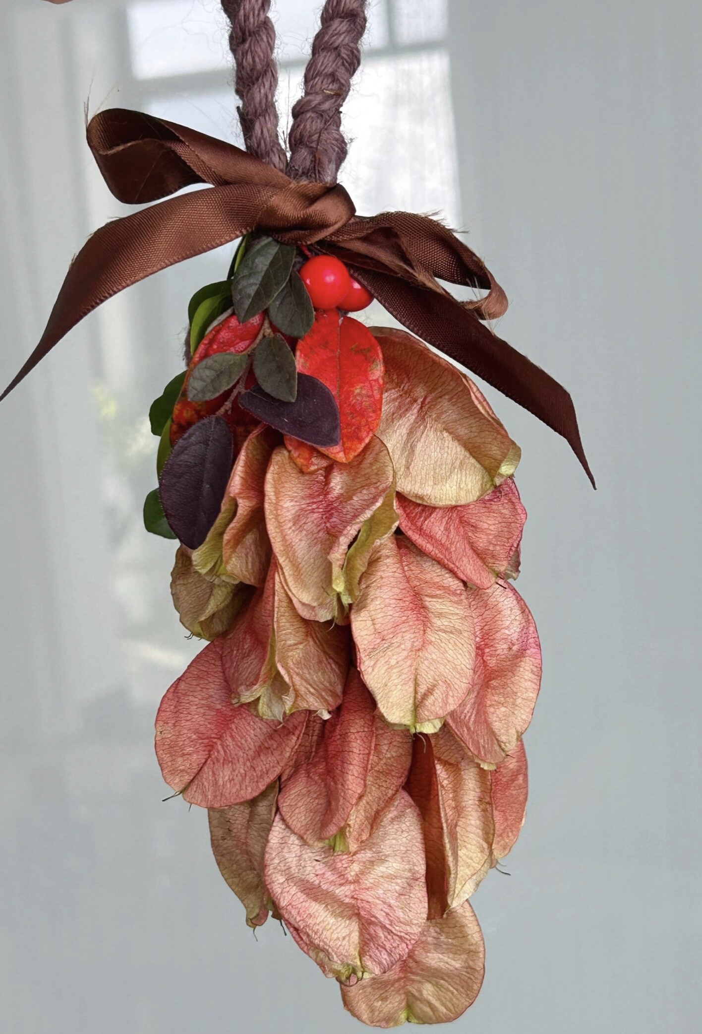 总要见一下史铁生先生书里的栾树吧 绿的叶,黄的花 一半在夏天,一半在秋天 先生在书里写道: 大树下,破碎的阳光星星点点; 风把遍地的小灯笼吹的滚动; 仿佛喑哑的响着无数小铃铛。 是啊,栾树就是一场盛大的秋天。 几颗干燥果实,配上风铃草的轻盈, 用棕色丝带和编织绳一扎, 瞬间变成门把手上的秋日挂饰!