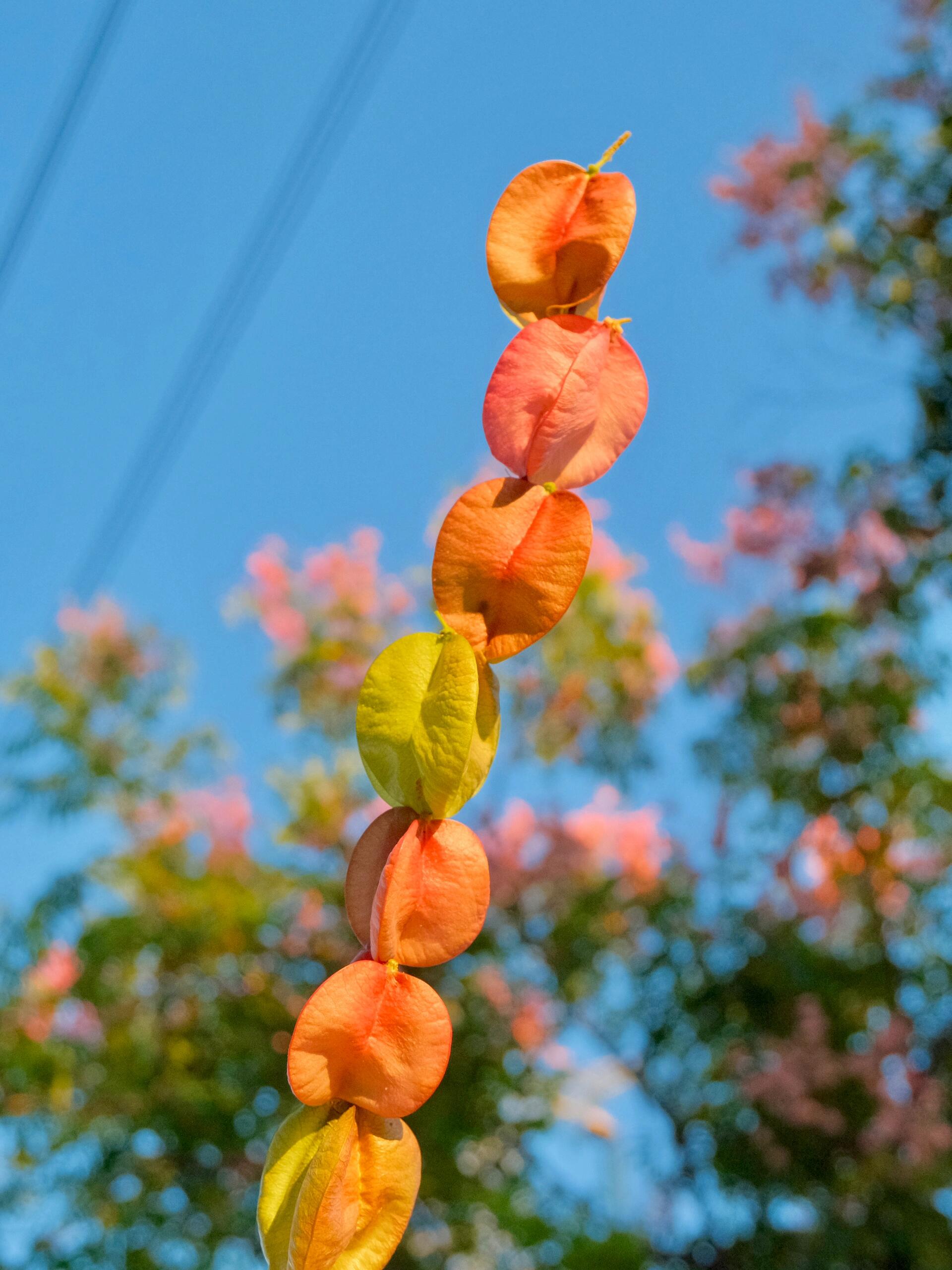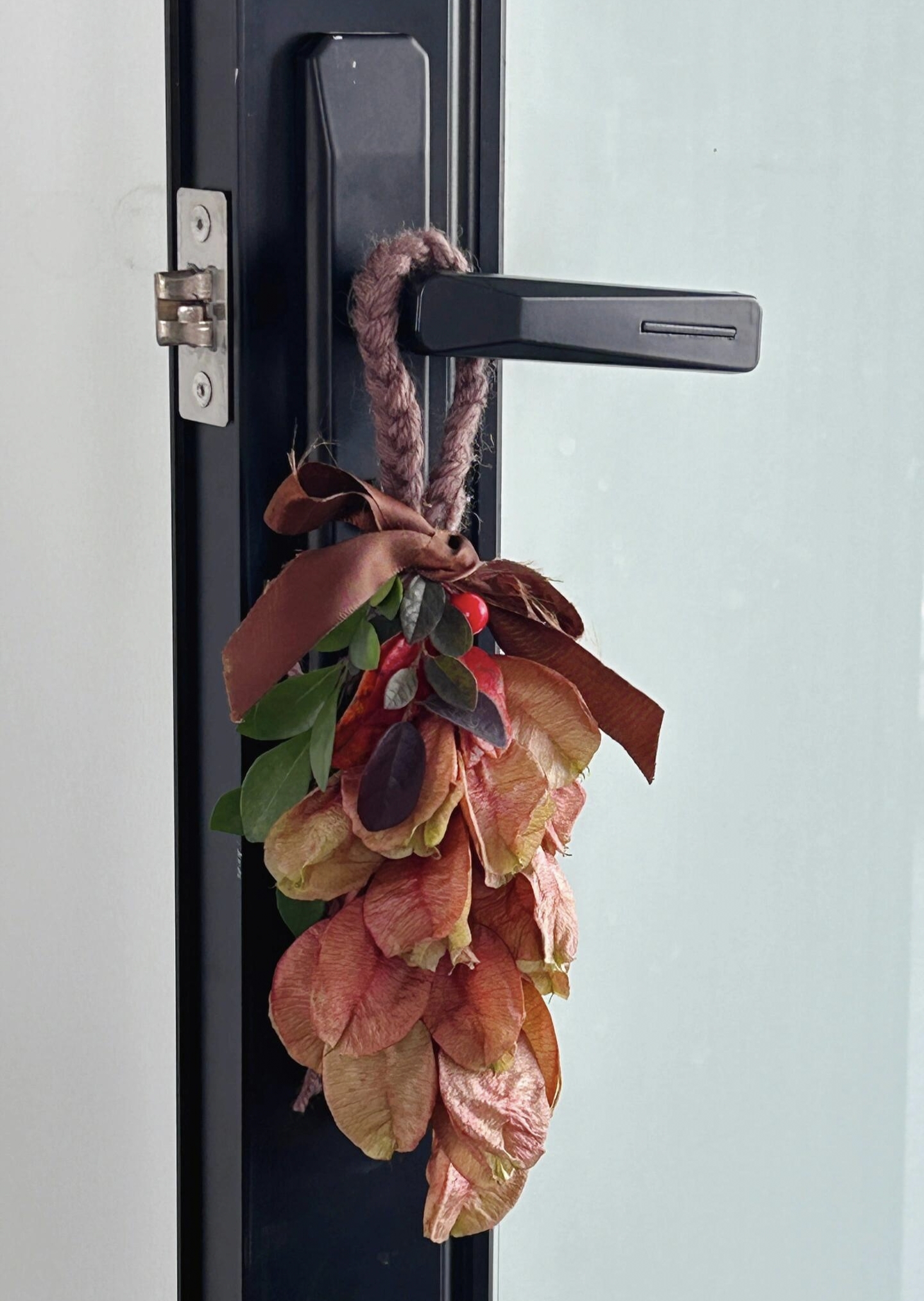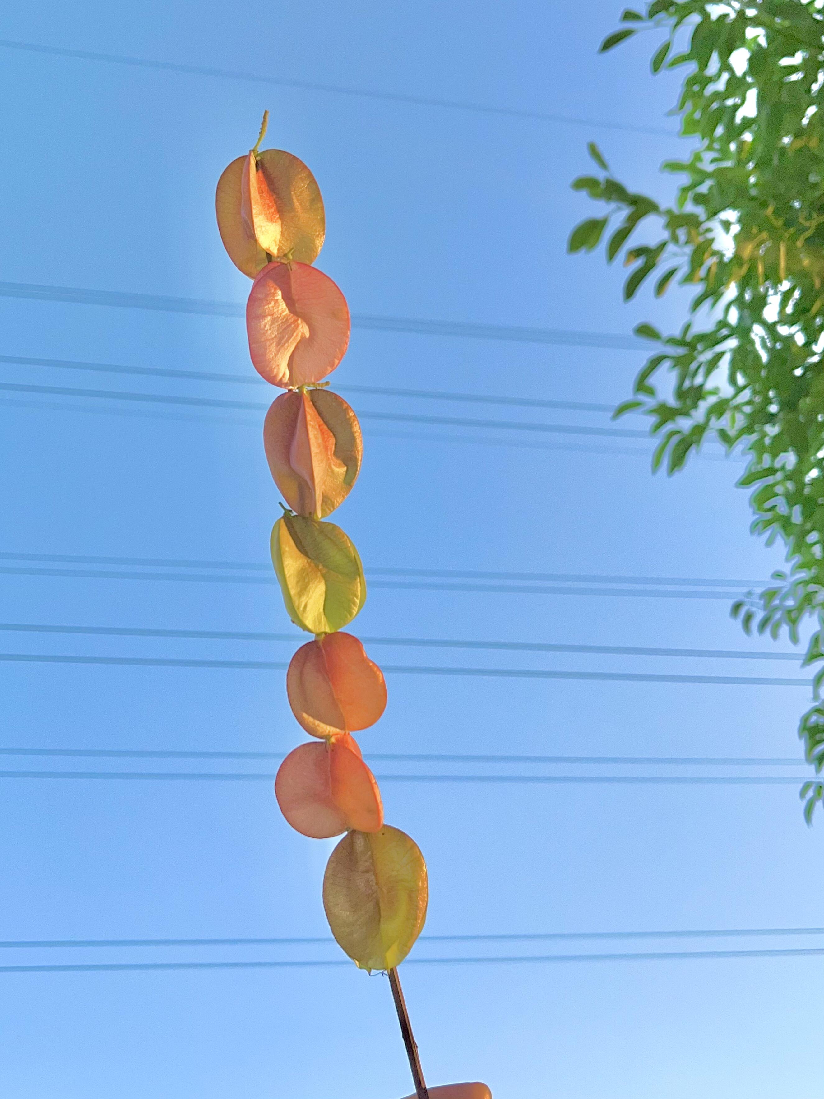 总要见一下史铁生先生书里的栾树吧 绿的叶,黄的花 一半在夏天,一半在秋天 先生在书里写道: 大树下,破碎的阳光星星点点; 风把遍地的小灯笼吹的滚动; 仿佛喑哑的响着无数小铃铛。 是啊,栾树就是一场盛大的秋天。 几颗干燥果实,配上风铃草的轻盈, 用棕色丝带和编织绳一扎, 瞬间变成门把手上的秋日挂饰!