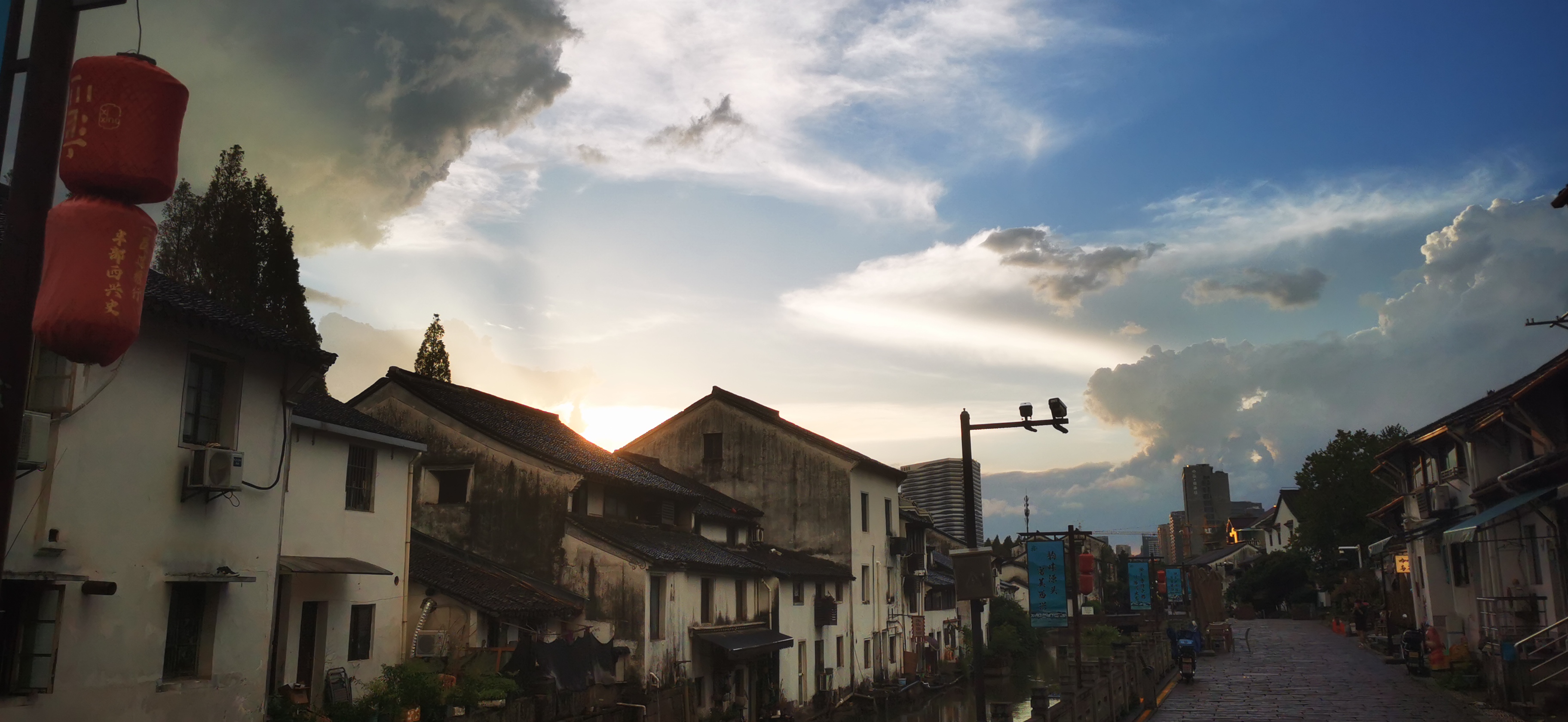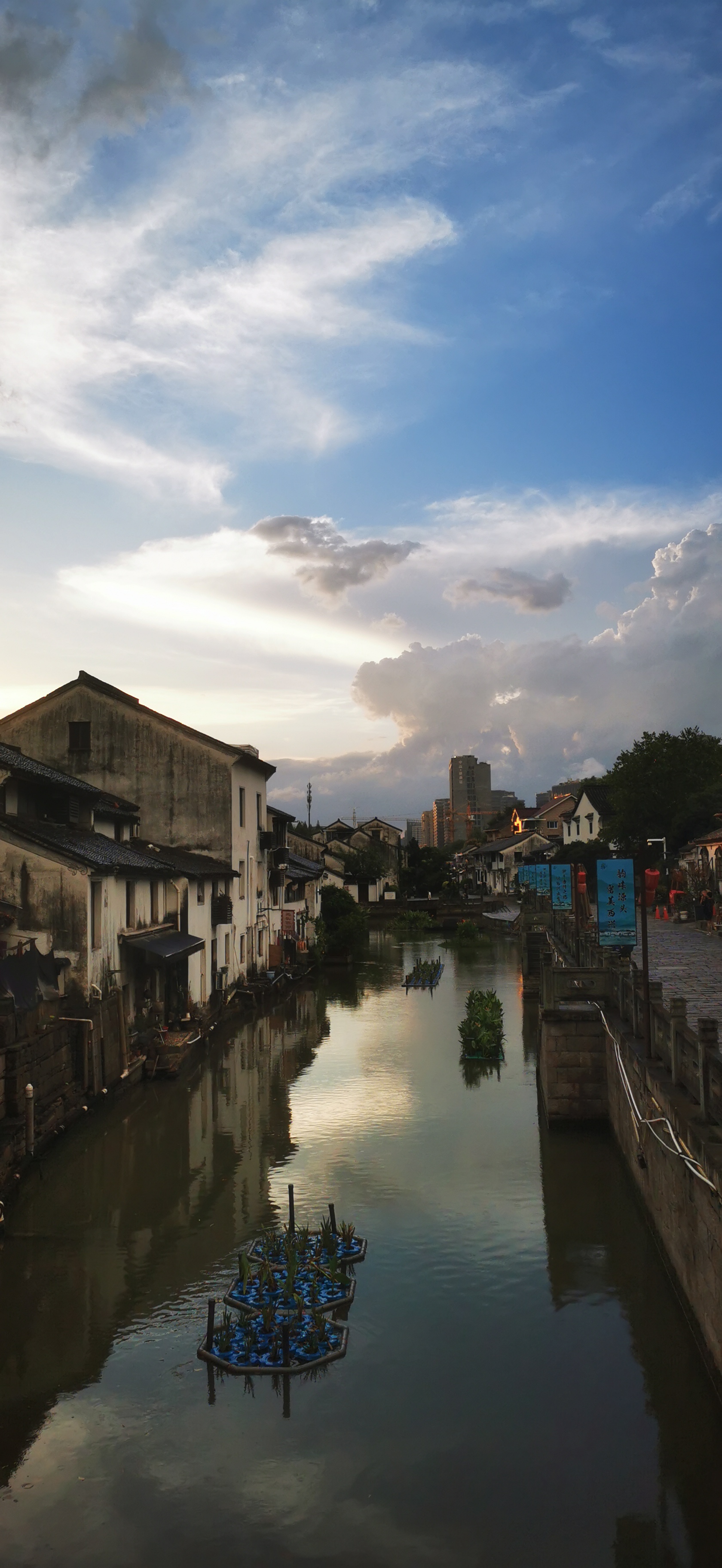 《老街的云与光》 当暮色轻吻青石板, 老街的云便在天际铺展成一幅写意的画。 蓝的天,白的云, 还有那被夕阳染成金橘的云絮, 在河面上投下碎银般的影, 和白墙黑瓦的老房子一起, 酿成一坛岁月的酒。 红灯笼在风里轻轻晃, 旧屋的墙皮藏着时光的褶皱, 远处的高楼却在云影里, 勾勒出另一种模样。 这是过去与现在的对话, 是水巷与都市的相拥, 在这片云与光的温柔里, 每一缕风都在诉说, 老街从未老去, 它只是把故事, 写进了云的褶皱, 和光的纹理里。