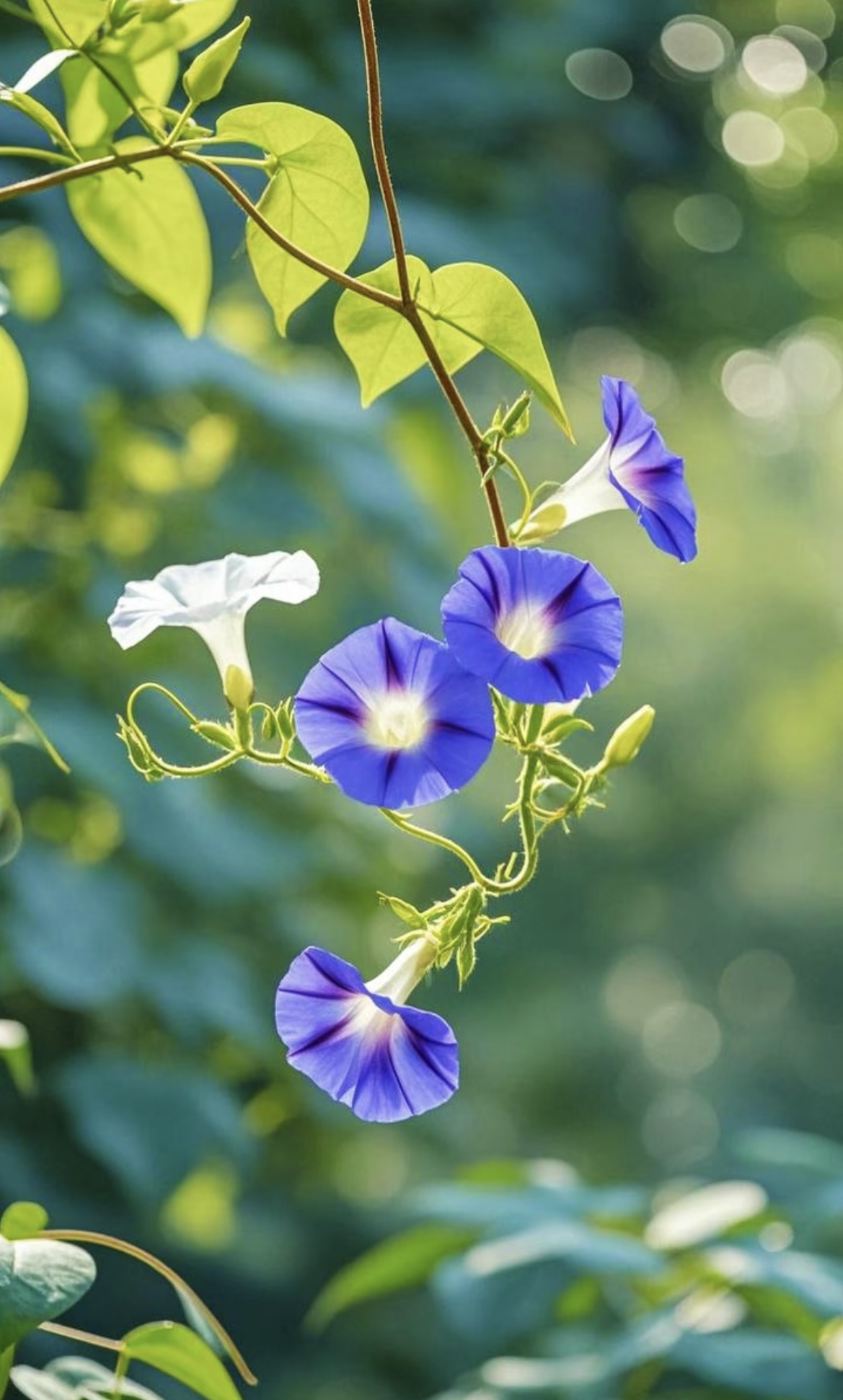 每天认识一款花|牵牛花 花种:牵牛花 【花种介绍】 别名:喇叭花、朝颜花、勤娘子 花语:生命的象征、友情的长久 科属:旋花科牵牛属 花期:6月-10月 外观:牵牛花以其漏斗状、五裂的鲜艳花朵而著名,花朵在清晨开放,傍晚闭合 赠送对象:适合送给朋友、同事 💦【养护投巧】 土壤:肥沃且透气性好,对酸碱度要求不高 光照:牵牛花需要良好的光照条件 水分:牵牛花耐旱且耐涝,但成长期最好提供充足水分 施肥:应适量施入有机肥、磷钾肥等,以增强抗寒性 温度:适宜的生长温度为18-23°C