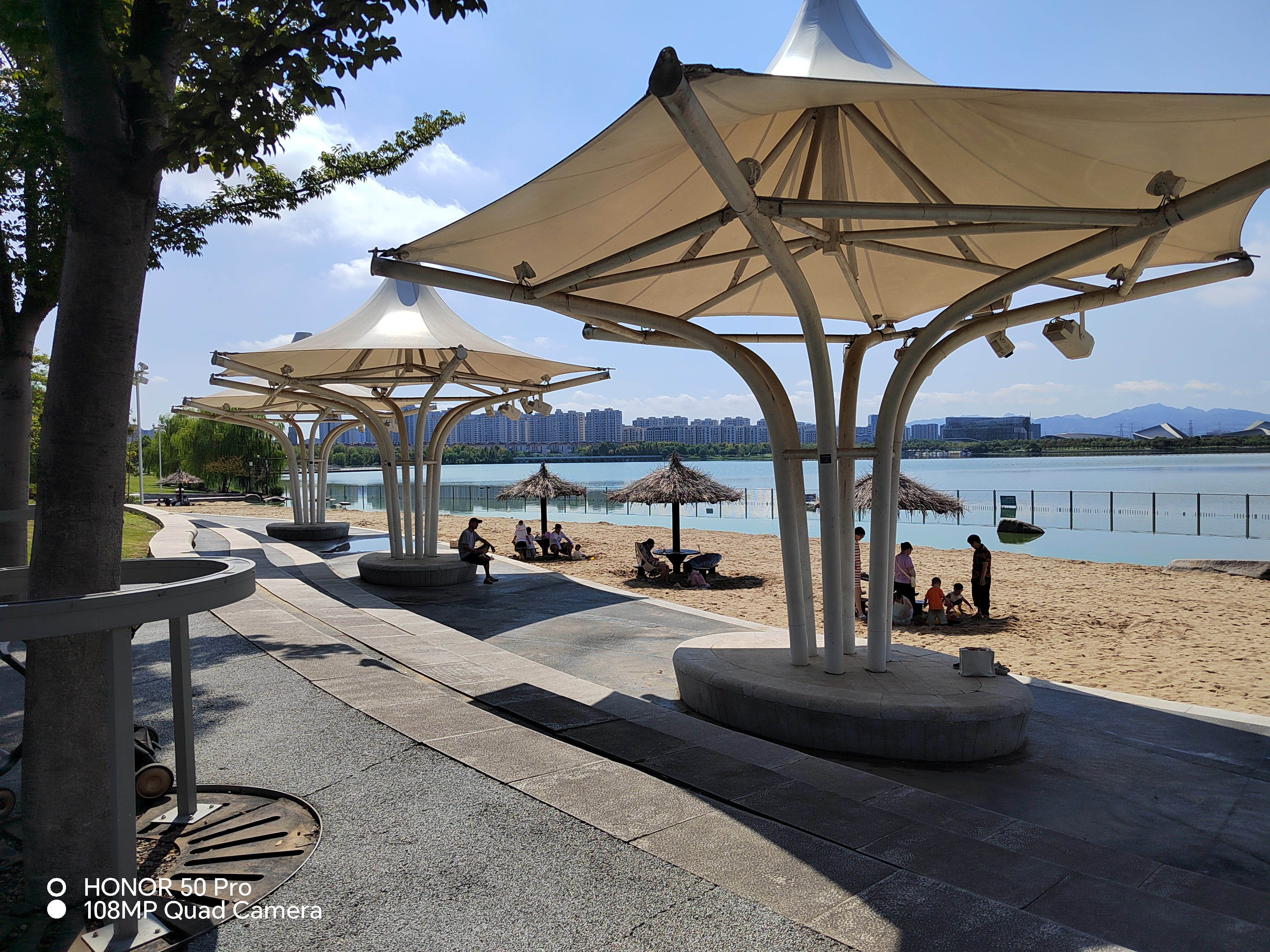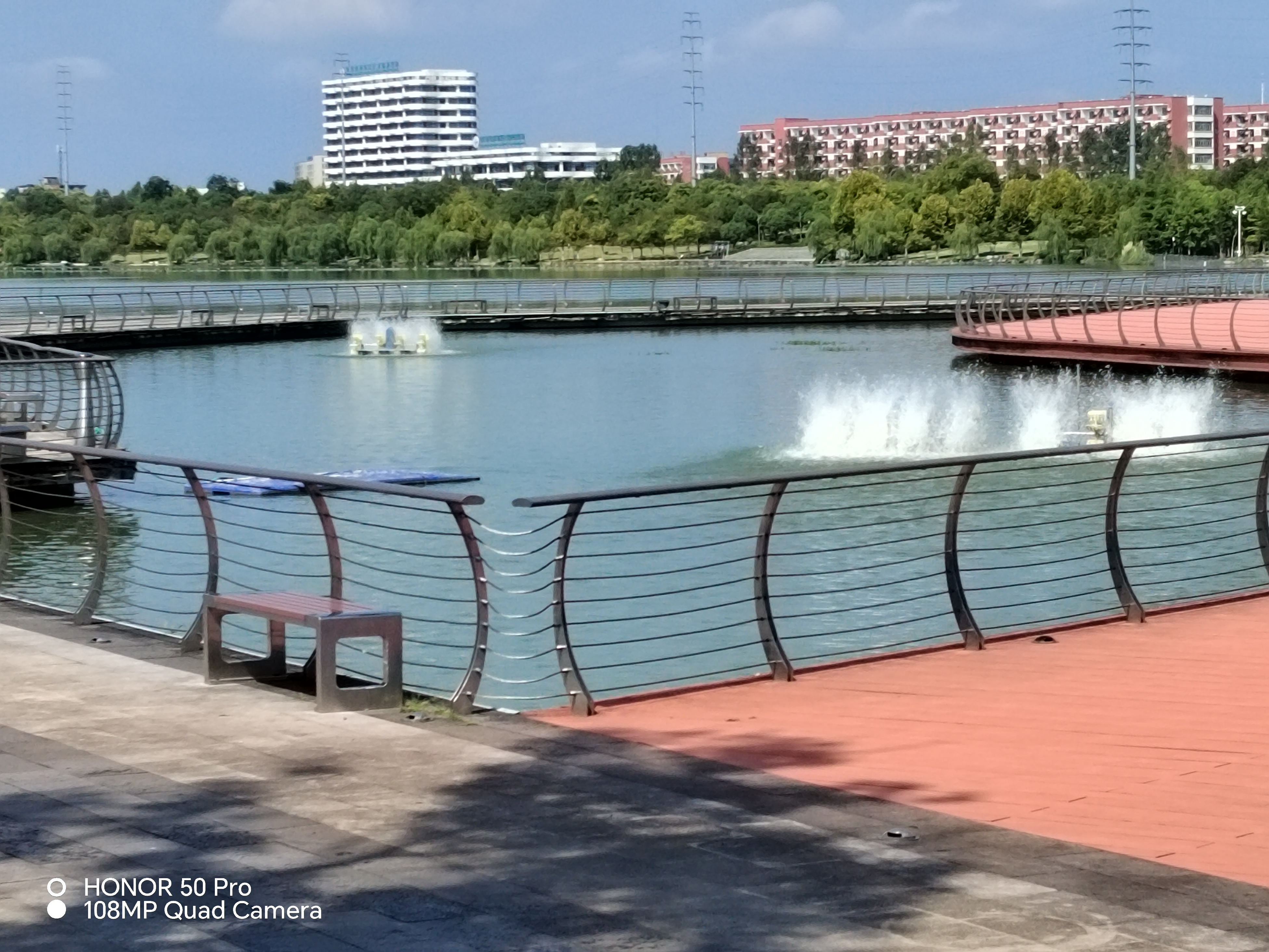 漫步湖海塘 周末,高温天漫步湖海塘。 白露时节的天气还是三十八九度的高温,阳光直射头顶火热。而我是不是神经病的,一个人在高温的炽烤下步行在湖海塘。 阳光照在脸上发烫,我尽量往树荫下走。当步行到一座湖中桥时,没有树荫的遮挡了,我顶着太阳快步通过四五十米长的桥体,便急着向边上的树林躲去。林中的树木高大,有松木、香樟及一些叫不上名的树木,着样子是人工围湖种植的。树林里小道弯弯绕绕,石板构筑。从树荫下走,可以躲避一些阳光。 出了树林,眼前出现一块空旷的天地,身体又暴晒在烈日下,远处的湖面上有两处喷着1人多高白花花的水幕,甚是好看,想必是水下的机械设备产生的效果。 高温天,平时游散在湖中的游船、快艇等静静地归宿在湖边一角避暑。 湖岸边的杨柳千丝万缕静静地低垂而挂,不见有一点的飘动。沙滩上几把大伞亭下,躲着三五人群,有大人,有小孩,或许是家庭组合。 向西走,又见一座横跨水中的桥梁,心想这公园基础设施建设不容易,为了贯通环湖人行道,水中连建二座桥。阳光下,我又一次快步通过了桥体。 行道树上,听到有“叽叽啾啾”的鸟呜声,却不见有鸟出现;湖中及小岛上也没见白露在飞翔、栖息的身影,这也是高温的原因吧,鸟也怕热的。 来到西面,眼前出现了一片茂盛的荷花园,在强烈的阳光照映下红彤彤的花蕾仍托展心胸,展现出鲜艳的色彩,似风华正茂的青壮年。这白露时节怎么还有这等荷花?我种植宣莲多年,现在这时候荷花应该快谢幕了。走近了发现这荷花蒂结出的莲蓬是干瘪的,是不结果的品种,或许是专供人们观赏的。 离开荷花,我又继续上路。一路上没碰到过一个人,僈傻地只有我一个人的身体在湖岸边的太阳底下移动。我时而躲着阳光,又顶着阳光,至正午时分,阳光更猛烈了,疲惫已上身。终历时两小时,环湖一圈。 回眸平坦广阔的湖海塘,想着它那不平坦的历史。 湖海塘位于金华市婺城区,总面积293万平方米。其中水体146万平方米,陆地147万平方米,还有林区115万平方米。是金华市面积最大的城市湿地,被称为“小西湖”。 据《金华县文史资料》记载,湖海塘始建于宋代,最初为解决下游农田灌溉问题,因雨季“湖大如海,旱季缩小似塘”,又元代大将胡大海率军挖塘蓄水,取名湖海塘。 新中国成立后,1950年1月,湖海塘启动了水力发电和灌溉工程,全线20公里工地每日四五千人施工,同年10月水电站正式发电,解决了金华城区97%的用电量,为当地首次水力发电。 20世纪80年代,湖海塘因周边养殖业污染沦为“臭水塘”,鱼虾绝迹。2013年,金华开发区启动改造工程,通过清淤、禁养、生态修复等举措,于2016年实现水质稳定达标Ⅲ类,并重建湿地生态系统,2023年其生态修复入选全省生态共富最佳实践名单。重现“白鹭翩飞,水下森林”的美景。 改造后的湖海塘公园以“十景”为核心景观,沿湖顺时针依次为“水漾晨曦、碧海扬帆、湖堤花锦、归园田居、溪堂秋雪、清江翠荷、琼岛流云、文沁观澜、柳岸烟雨、汀洲水暖”,融合自然景观与人文内涵形成环湖特色游线。 通过每年举办音乐季,水上运动比赛,环湖马拉松等活动,推动全民健身与赛事经济融合,年吸引游客超百万人次,创造近千万元收入,完成从“生态负债”到“生态资产”的转变。 了解了今日之湖海塘,使我理解了“绿水青山就是金山银山”的真正含义。