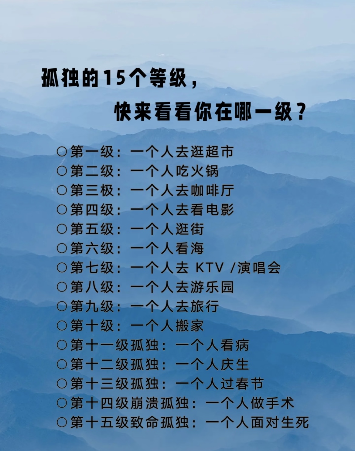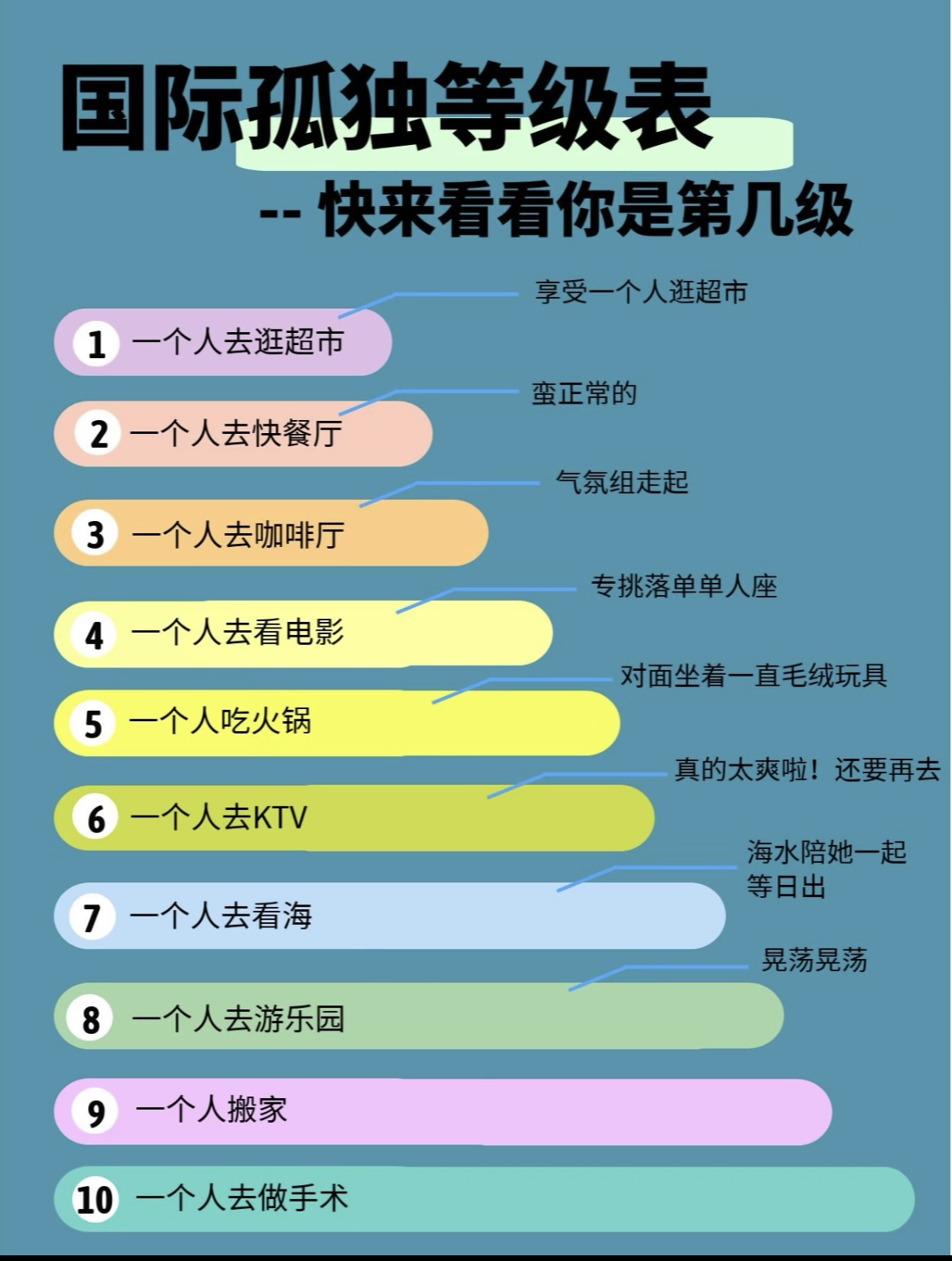 国际孤独等级表,看看你在第几级? 你能忍受几级孤独?