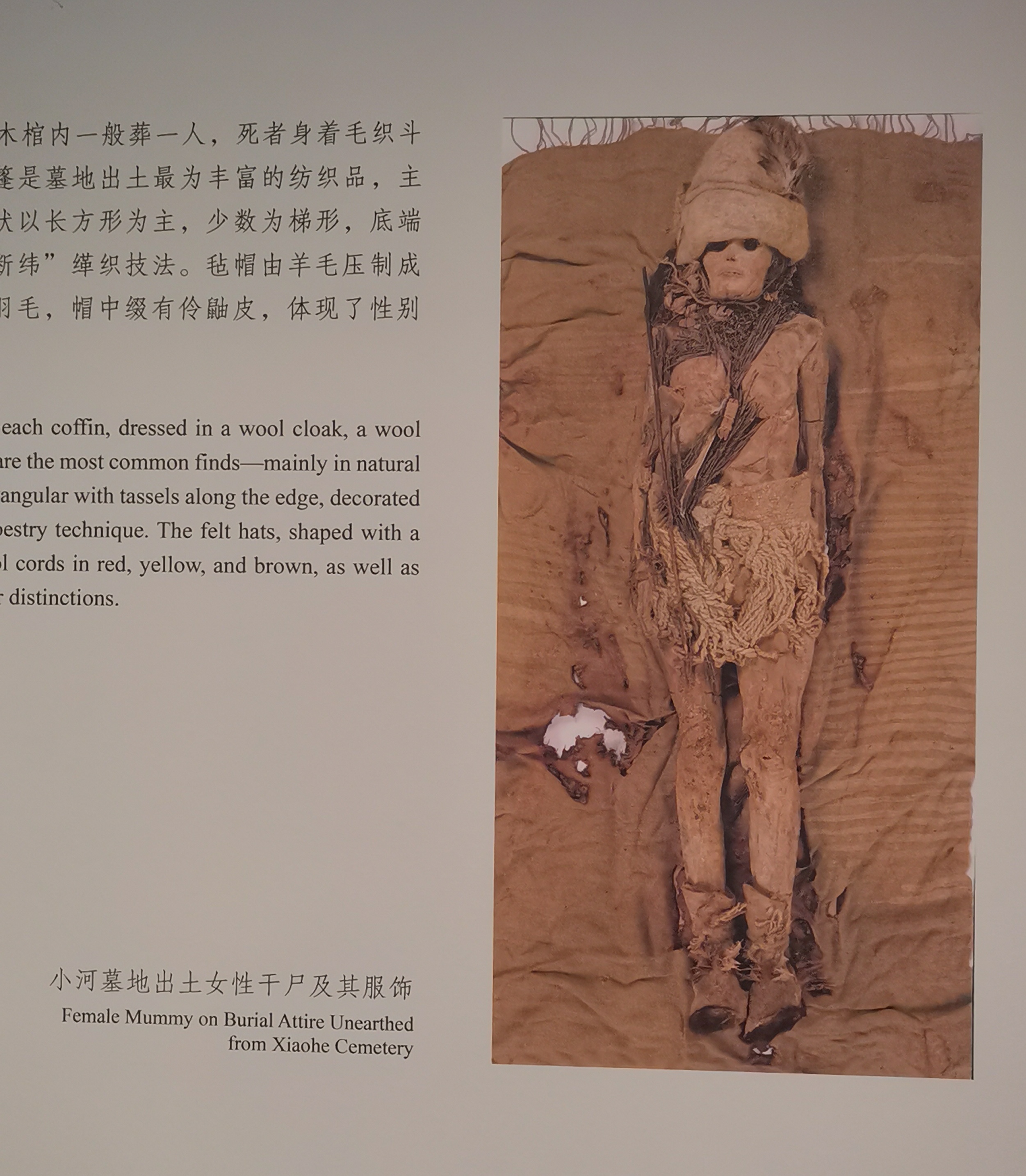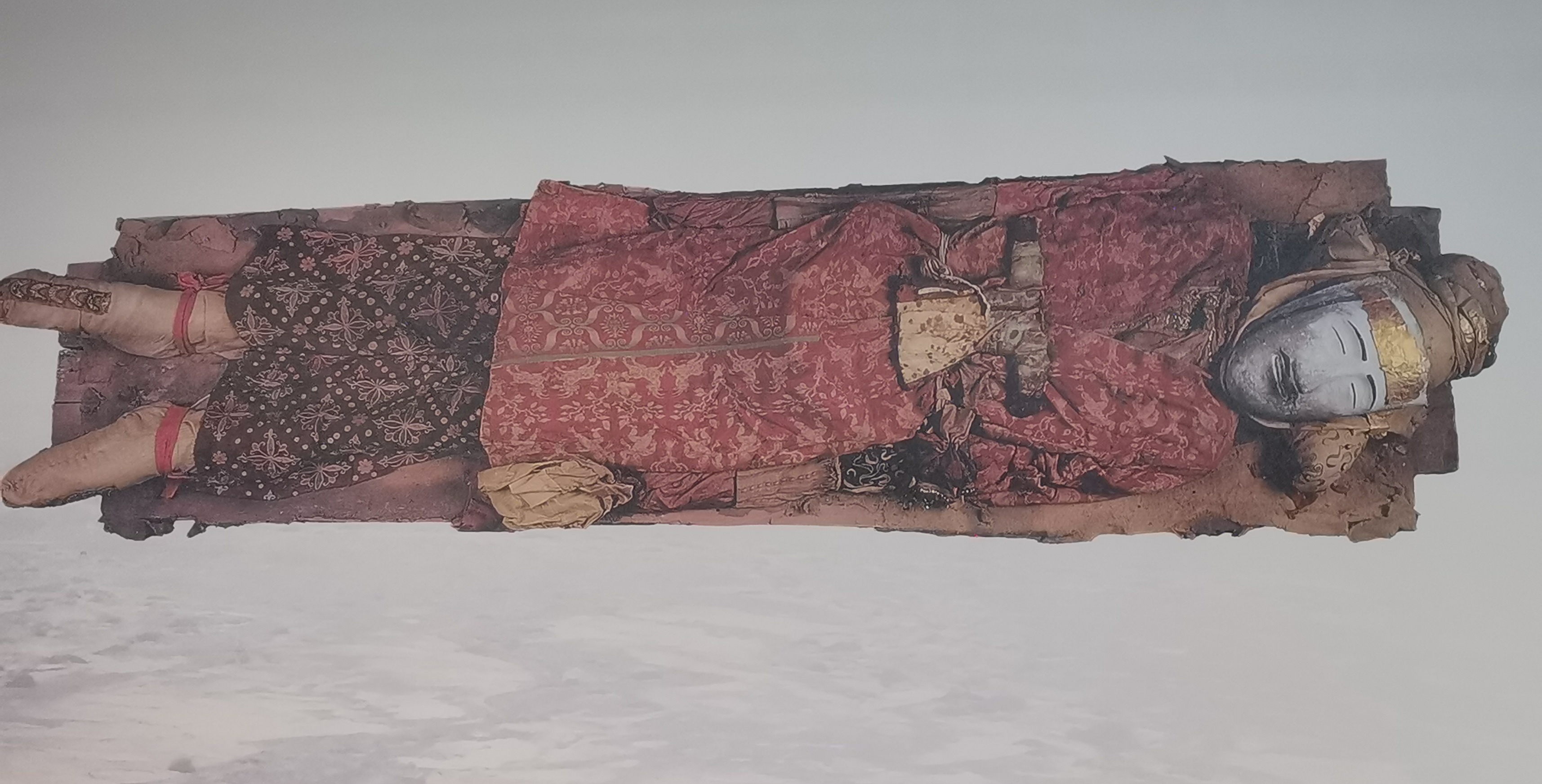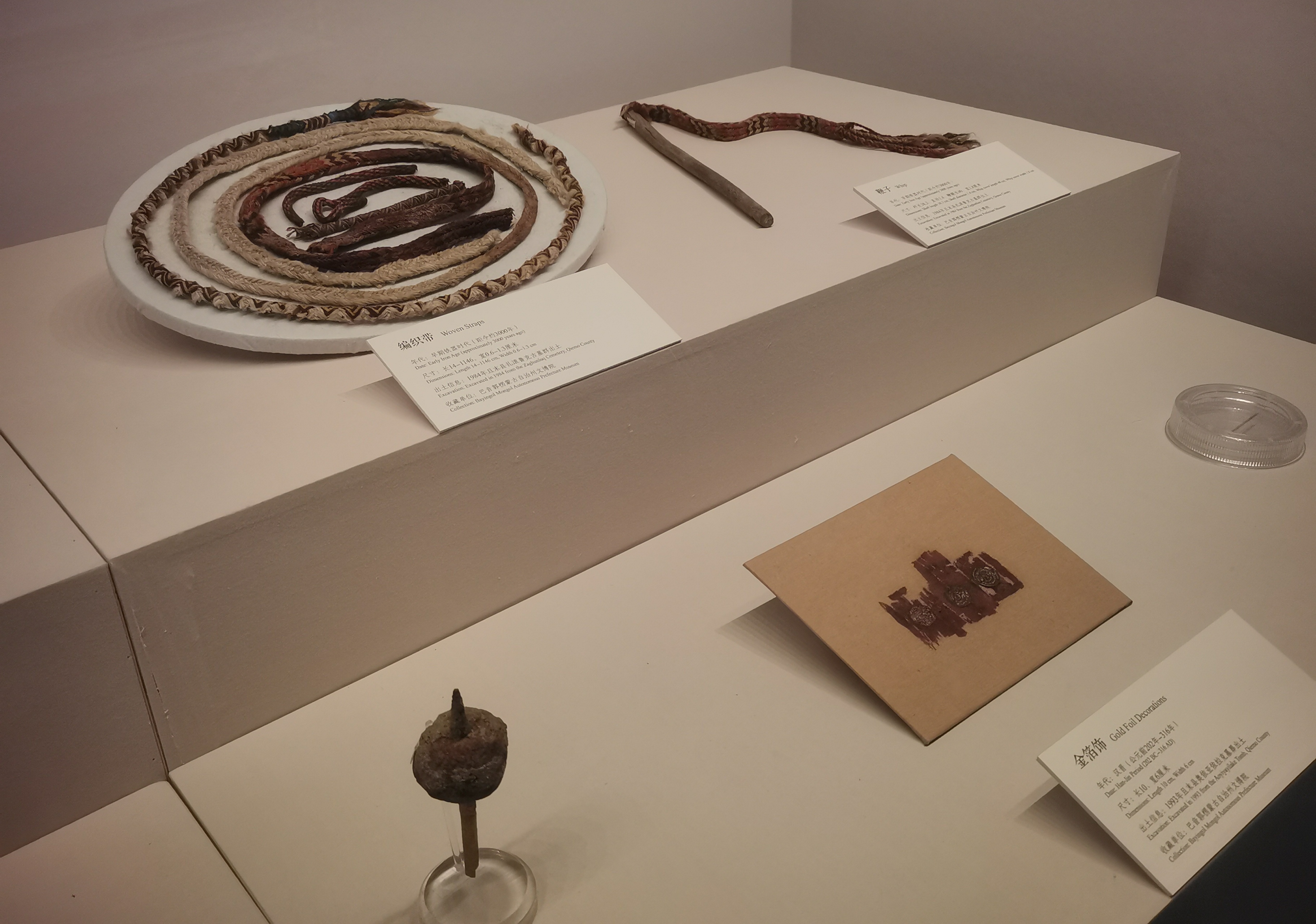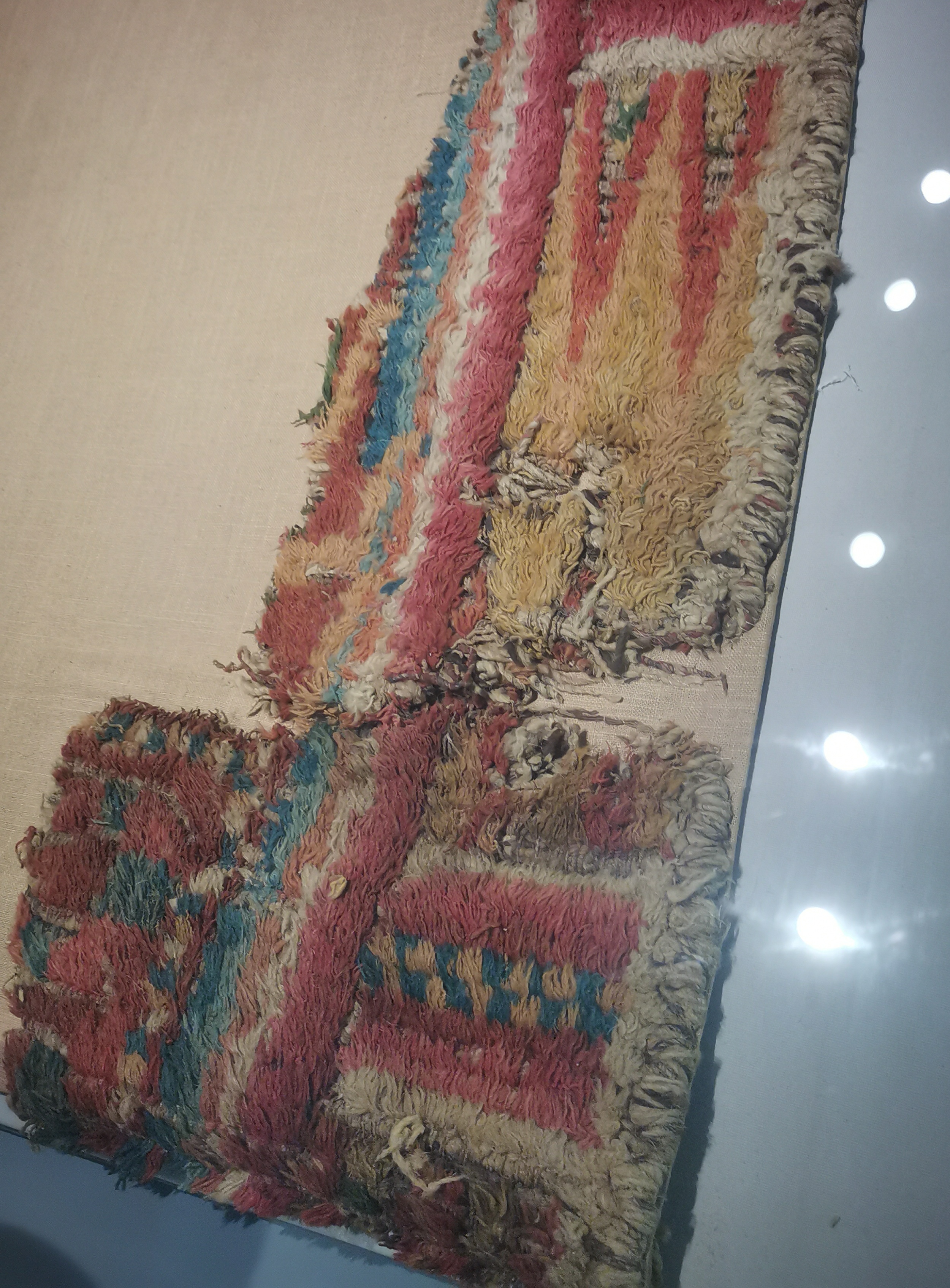 巴音郭楞蒙古自治州,简称巴州,蒙古语意为“富饶的流域”。丝绸之路南中两道均通过巴州。 西域三十六国在巴州境内有楼兰、若羌、且末、小宛、山国、乌垒、仑头、渠犁、焉耆、危须等11个“城国”和“行国”。西汉曾在乌垒(今轮台县)设西域都护府。 小河墓地出土的女性腰衣通常为短裙式,毛绳饰穗自然垂下。男性腰衣多为窄带式。腰衣主要用于遮掩性别器官,以羊毛原色为主。 营盘墓地位于尉犁县孔雀河北岸,处于丝绸之路"楼兰道"要冲,所出汉晋时期墓葬132座。墓中纺织品保存完好, 丝织物多源 毛织物以本地制作为主,部分融合西方技法。 第15号墓男干尸,棺饰与随葬物均融合东方、波斯和希腊文化元素,展现西域贵族的身份地位与文化认同。 除了常见的织染绣,营盘墓地还出土有彩绘文物、贴金衣,反映了东西方艺术与技术的传播。