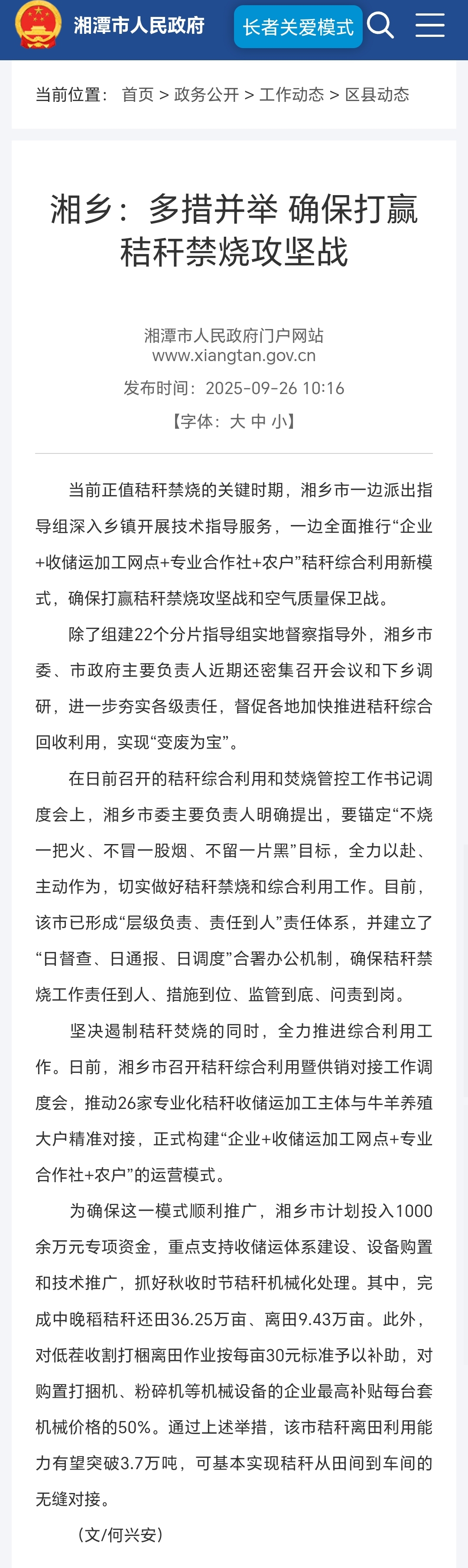 湖南湘乡市多举措打赢秸秆禁烧攻坚战