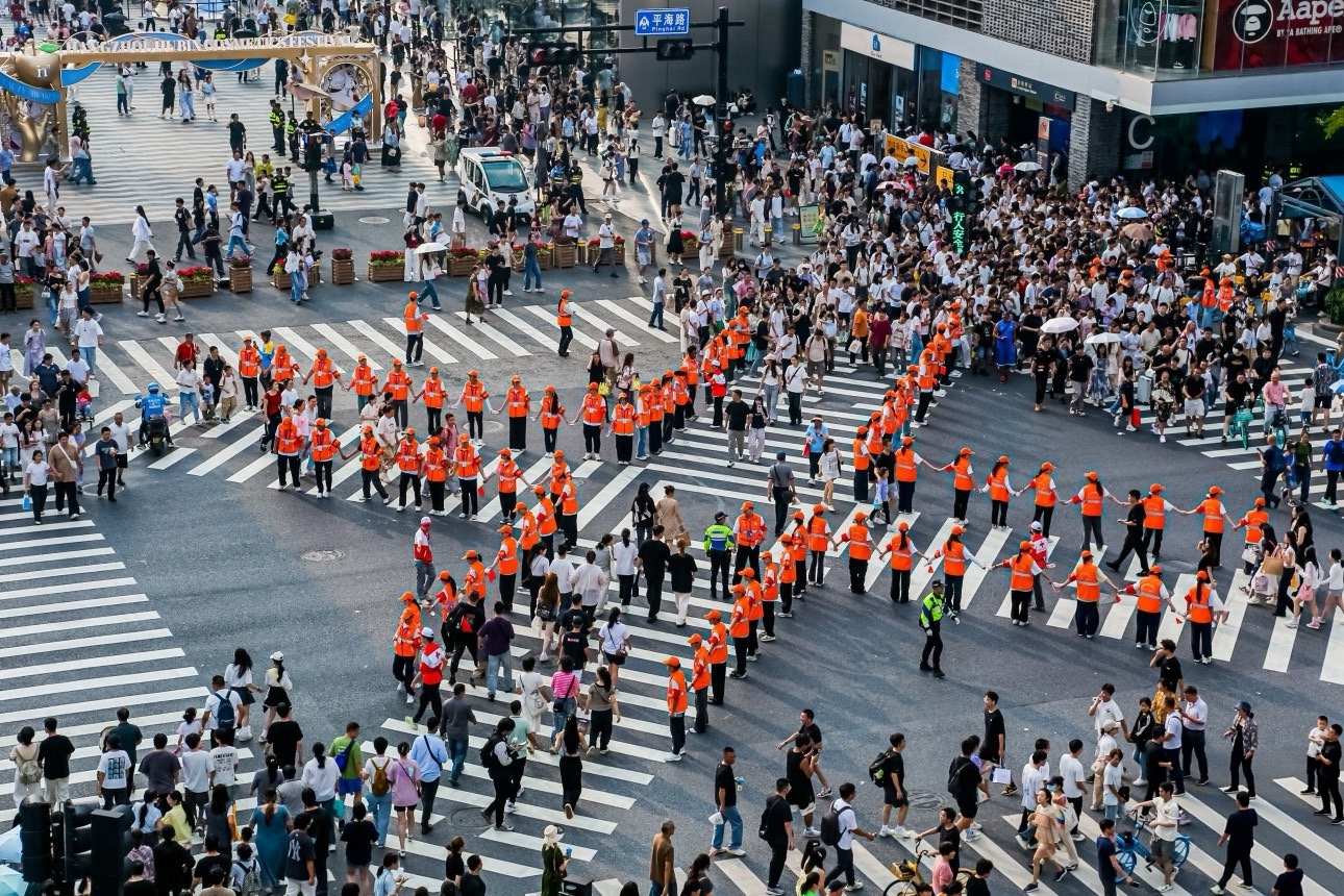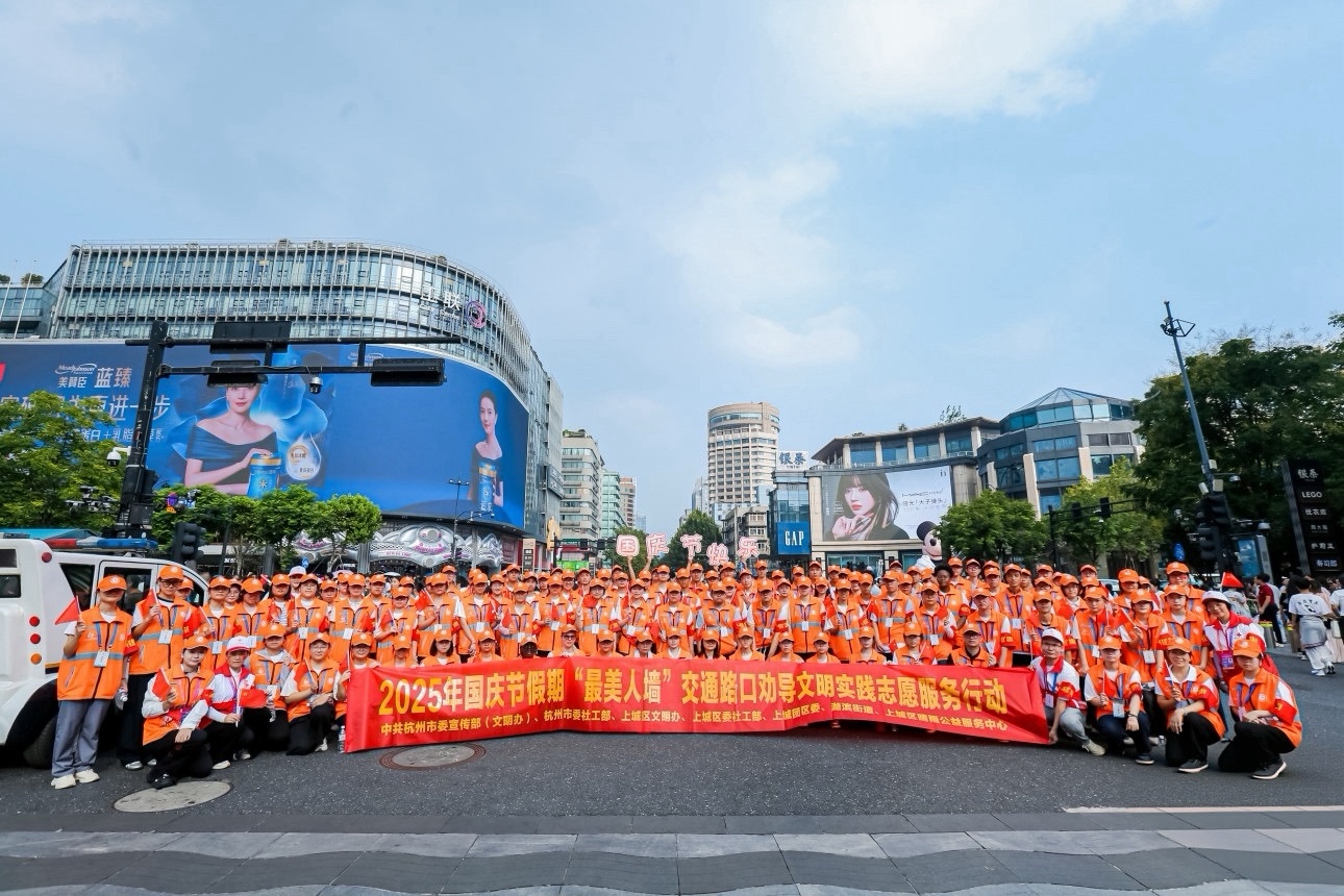 晴雨公益最美人墙一呼百应志愿服务队❤️ 队形升级为3.0人墙巨阵👍共创美丽杭城! 给所有的志愿者们👍👍👍