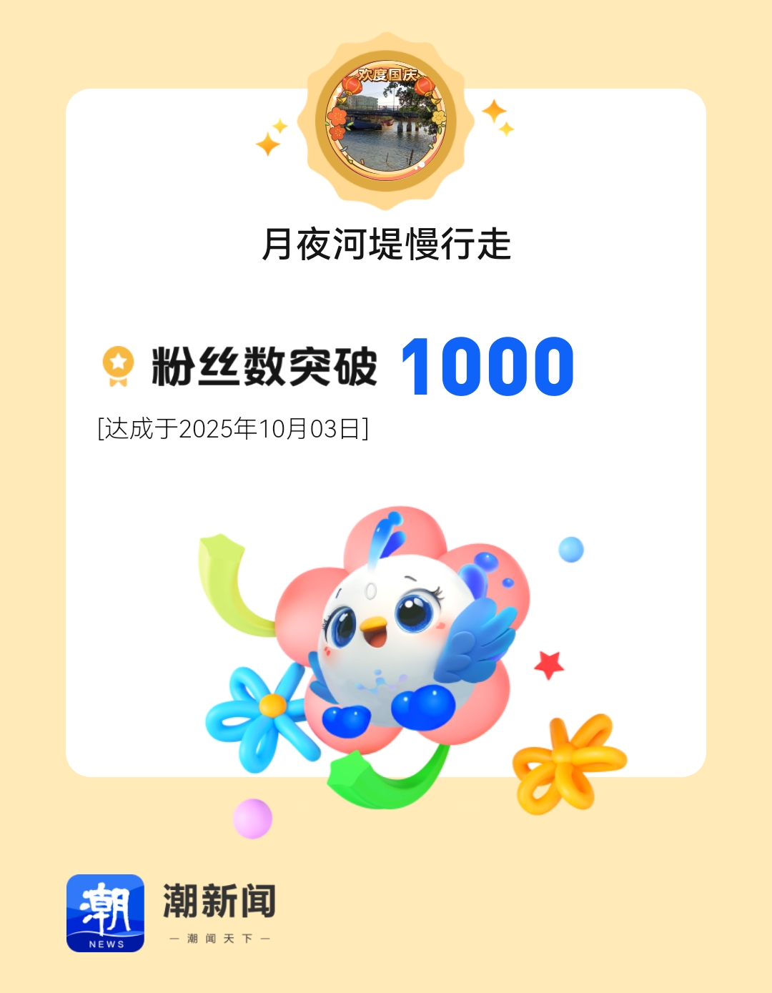 我在潮新闻已收获粉丝1000,来我的主页看看吧!