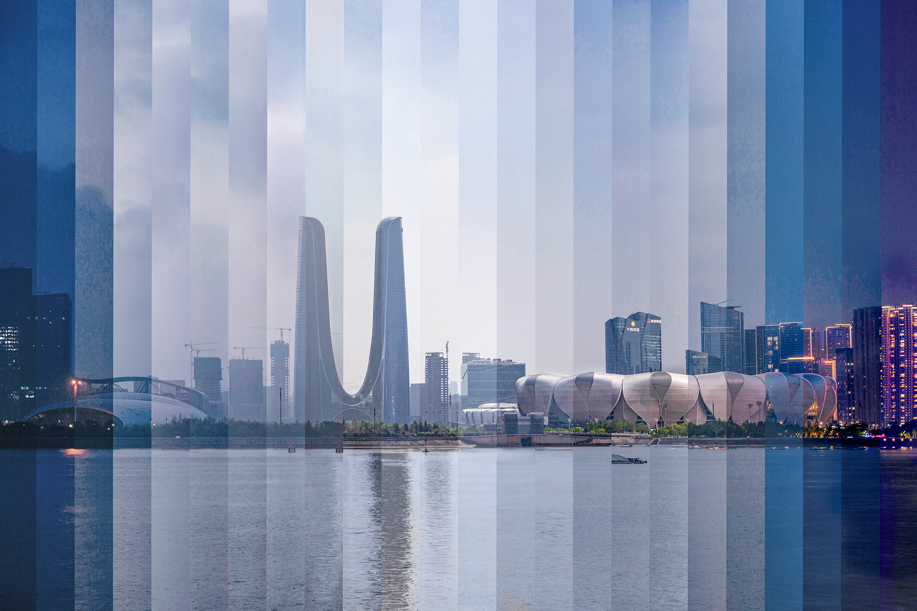 《杭州的新地标_奥体中心》,作者章利根,拍摄于杭州城市阳台。
