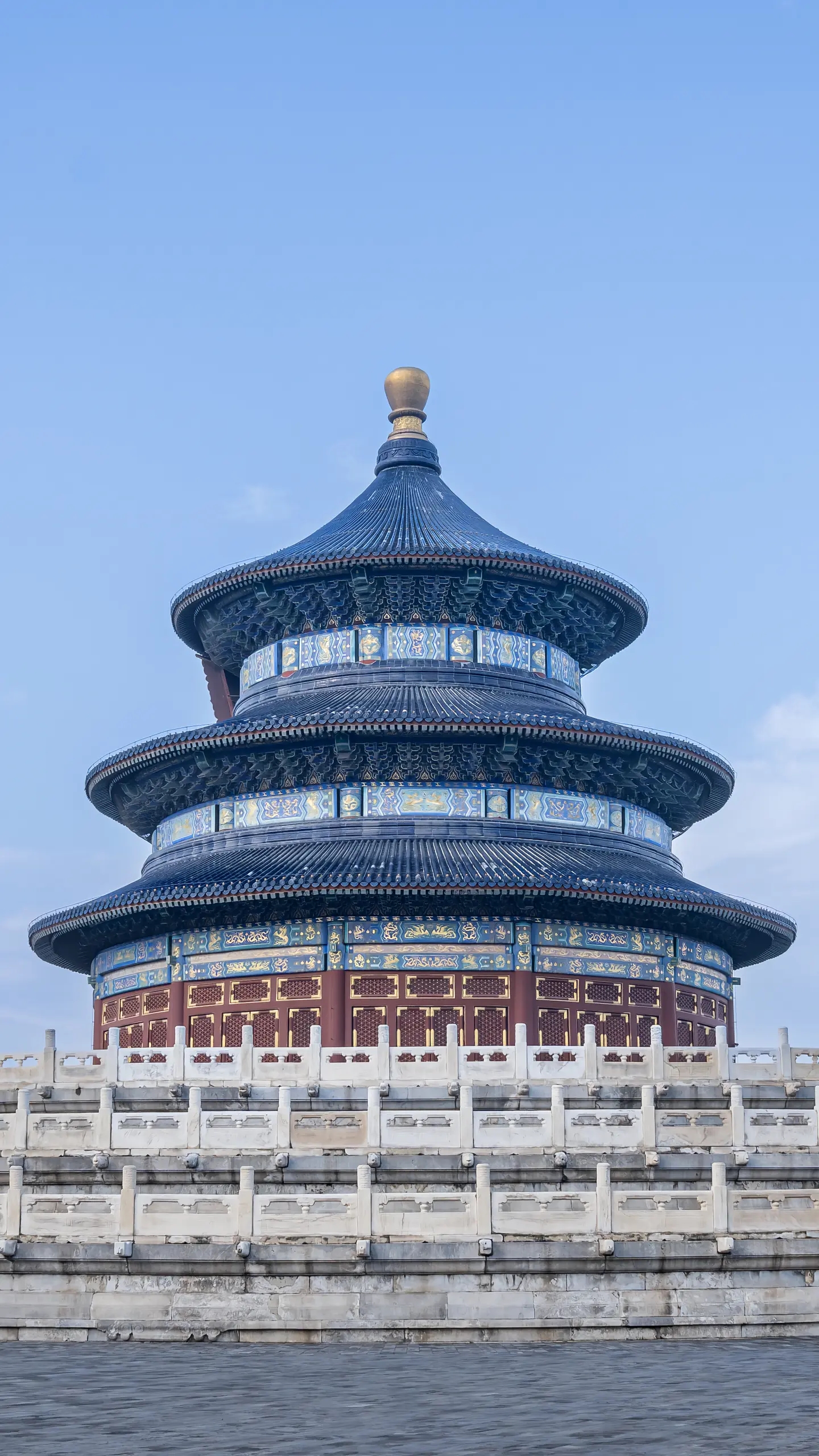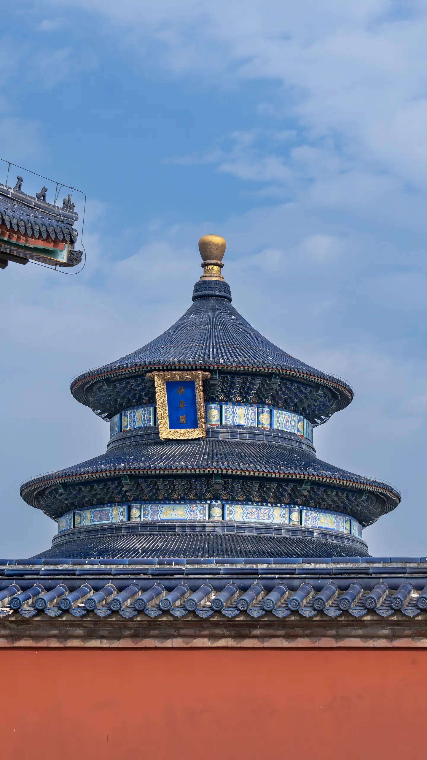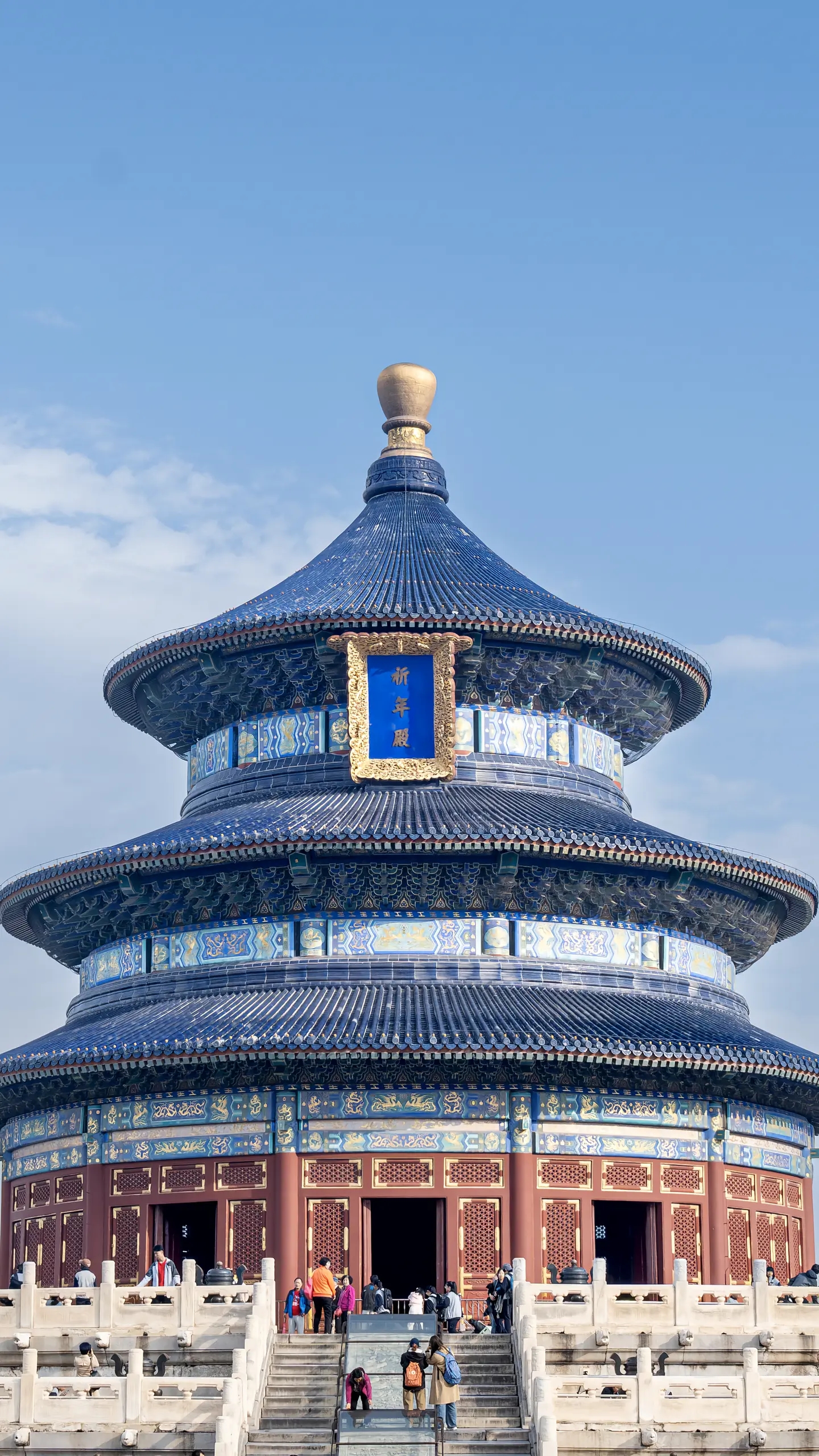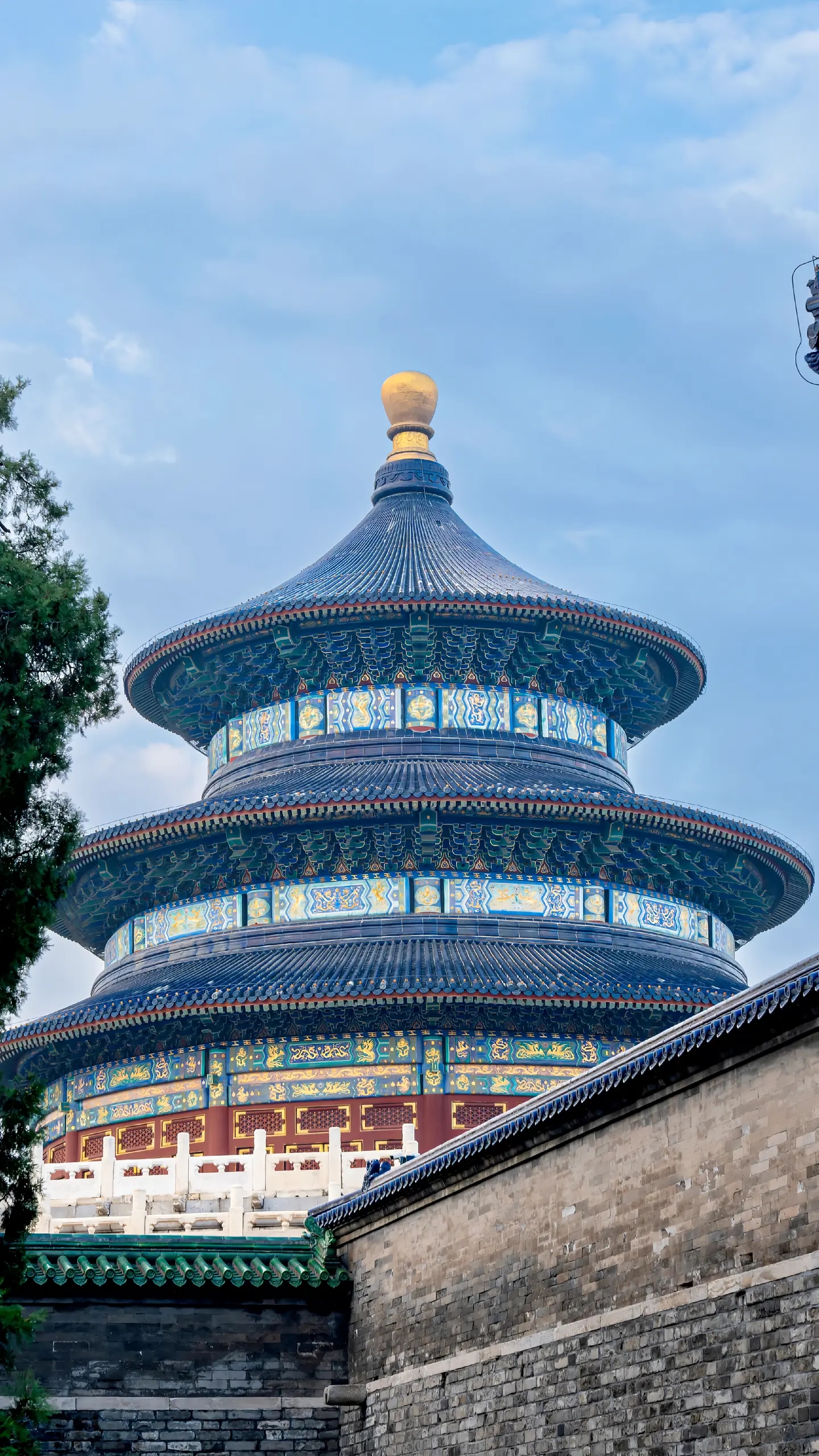晨光漫过天坛的朱红宫墙,将六百年的青砖染成暖金,檐角琉璃瓦在秋阳下折射出流光,如凝固的星河坠落人间。沿着丹陛桥缓步向前,祈年殿的鎏金宝顶刺破云霄,与飘扬的国旗隔空相望,一蓝一红,皆是华夏脊梁的底色。