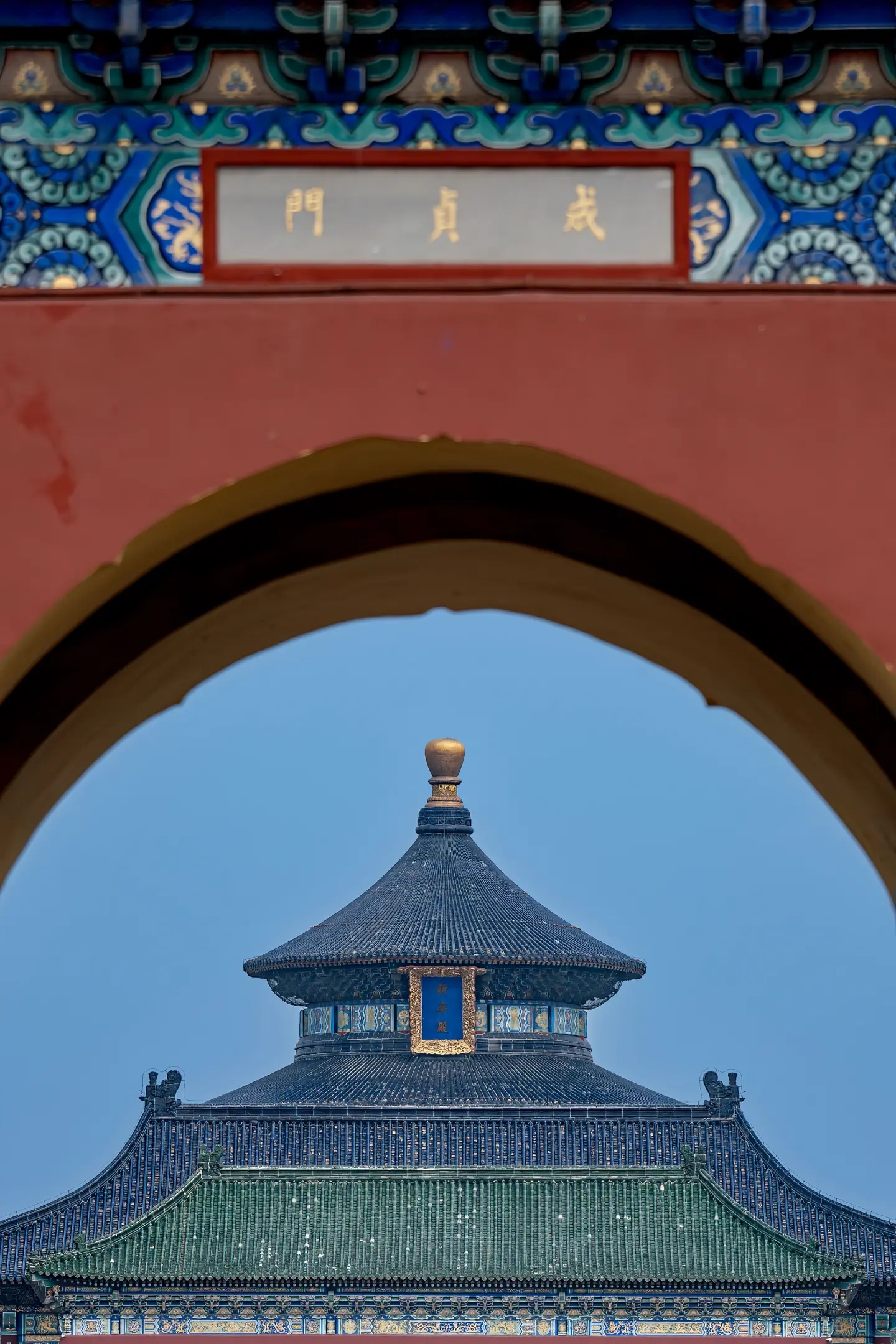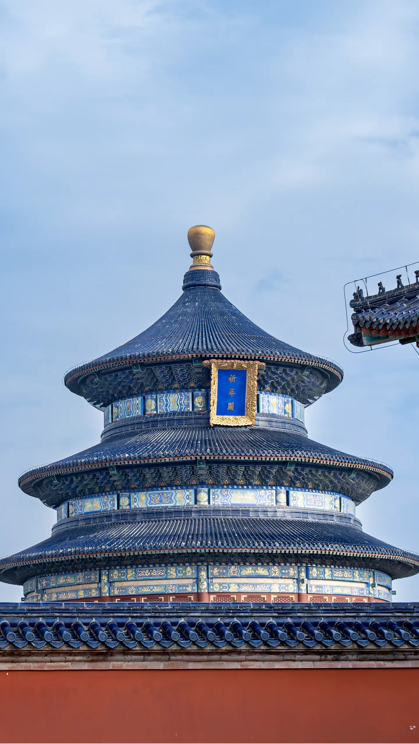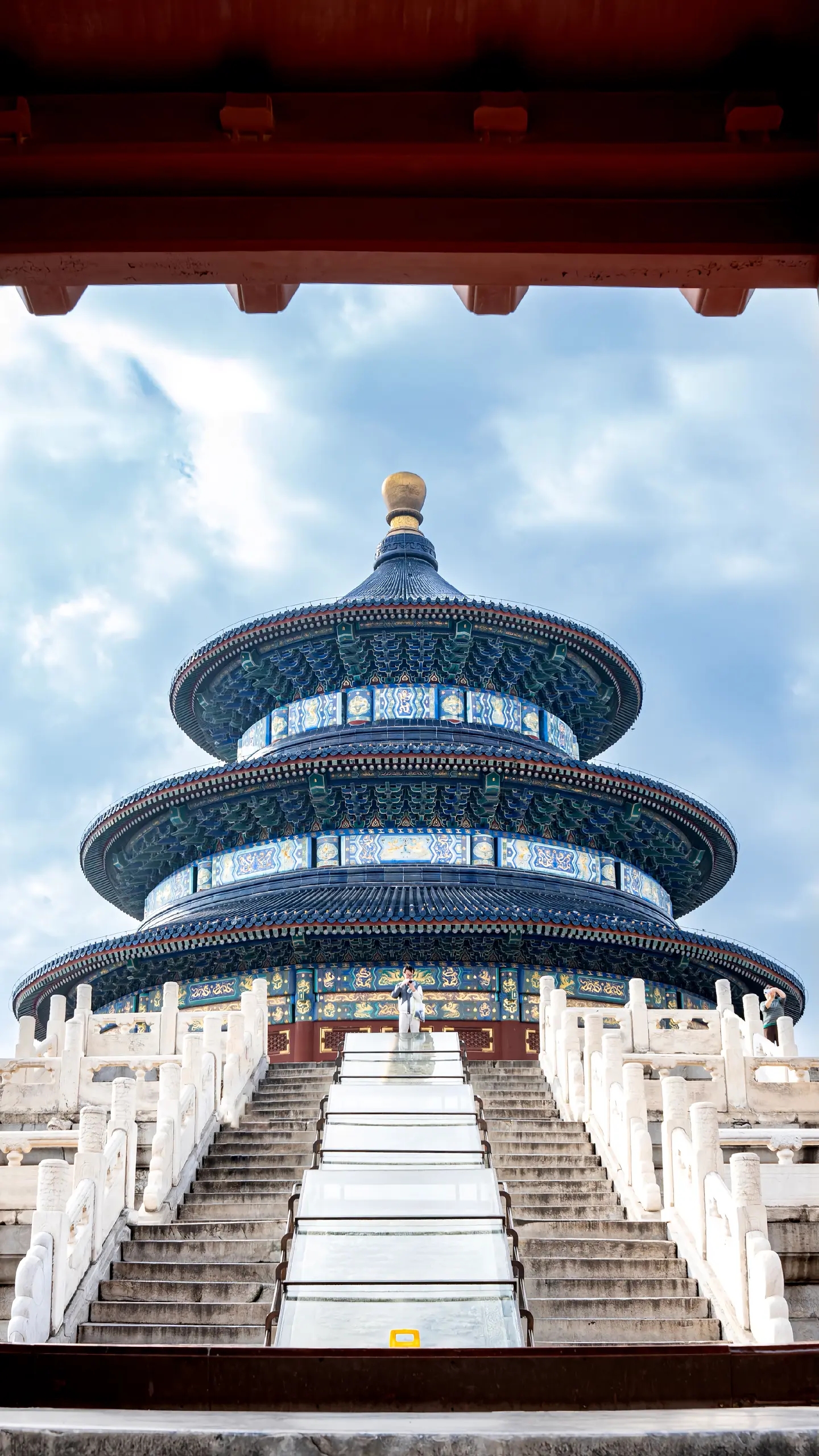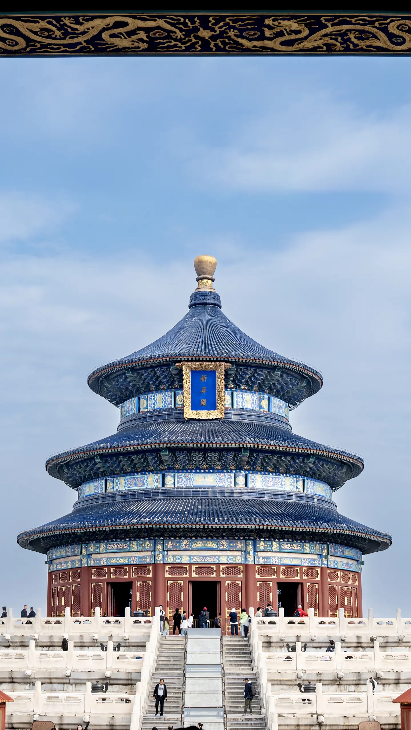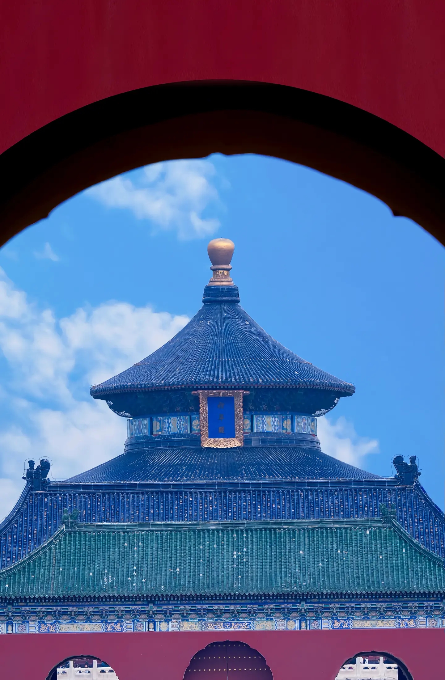 晨光漫过天坛的朱红宫墙,将六百年的青砖染成暖金,檐角琉璃瓦在秋阳下折射出流光,如凝固的星河坠落人间。沿着丹陛桥缓步向前,祈年殿的鎏金宝顶刺破云霄,与飘扬的国旗隔空相望,一蓝一红,皆是华夏脊梁的底色。
