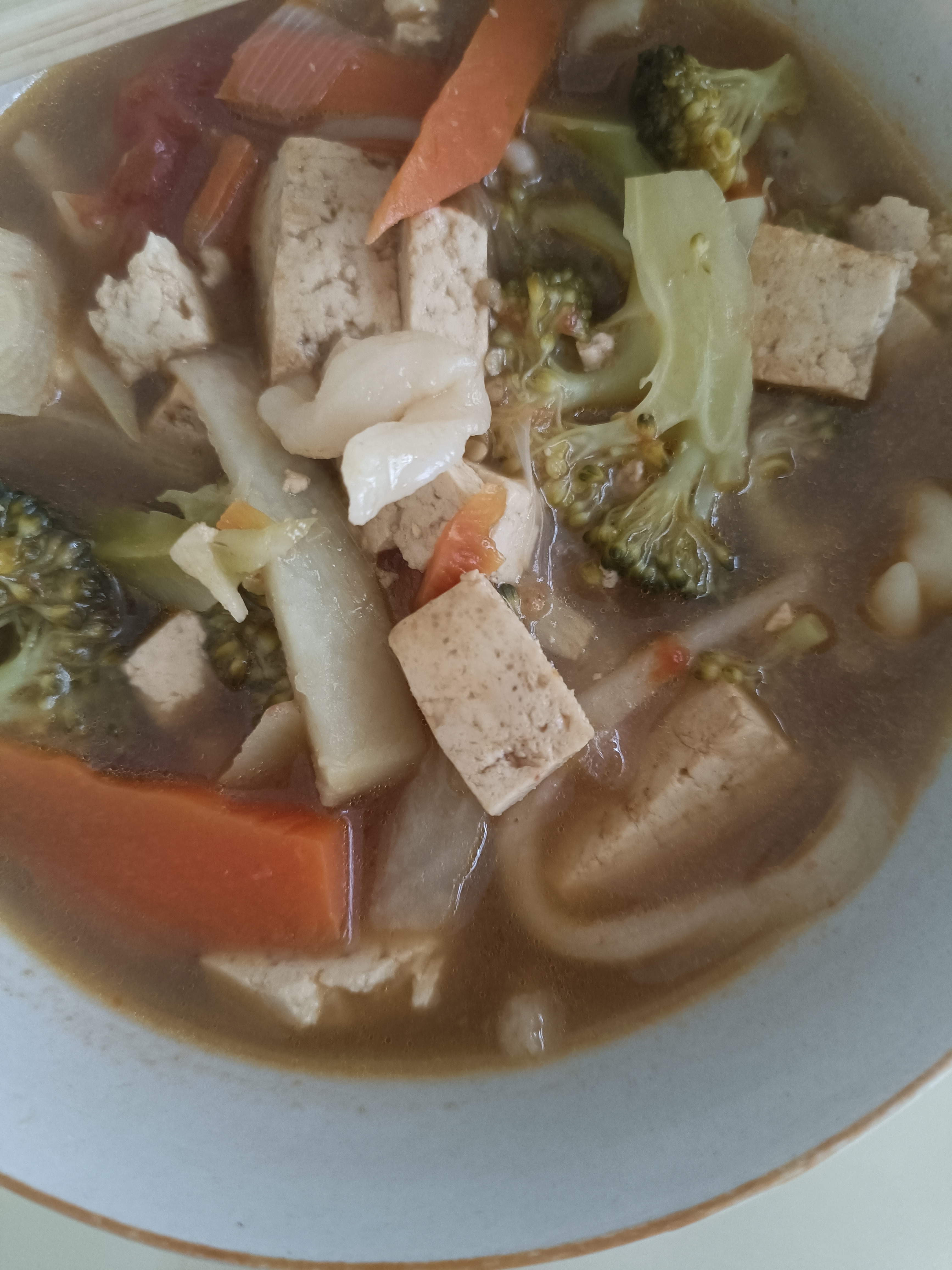豆腐泡着澡,西兰花和胡萝卜在开派对,白菜负责打汤,今天的素菜比肉还忙!🍲🥬