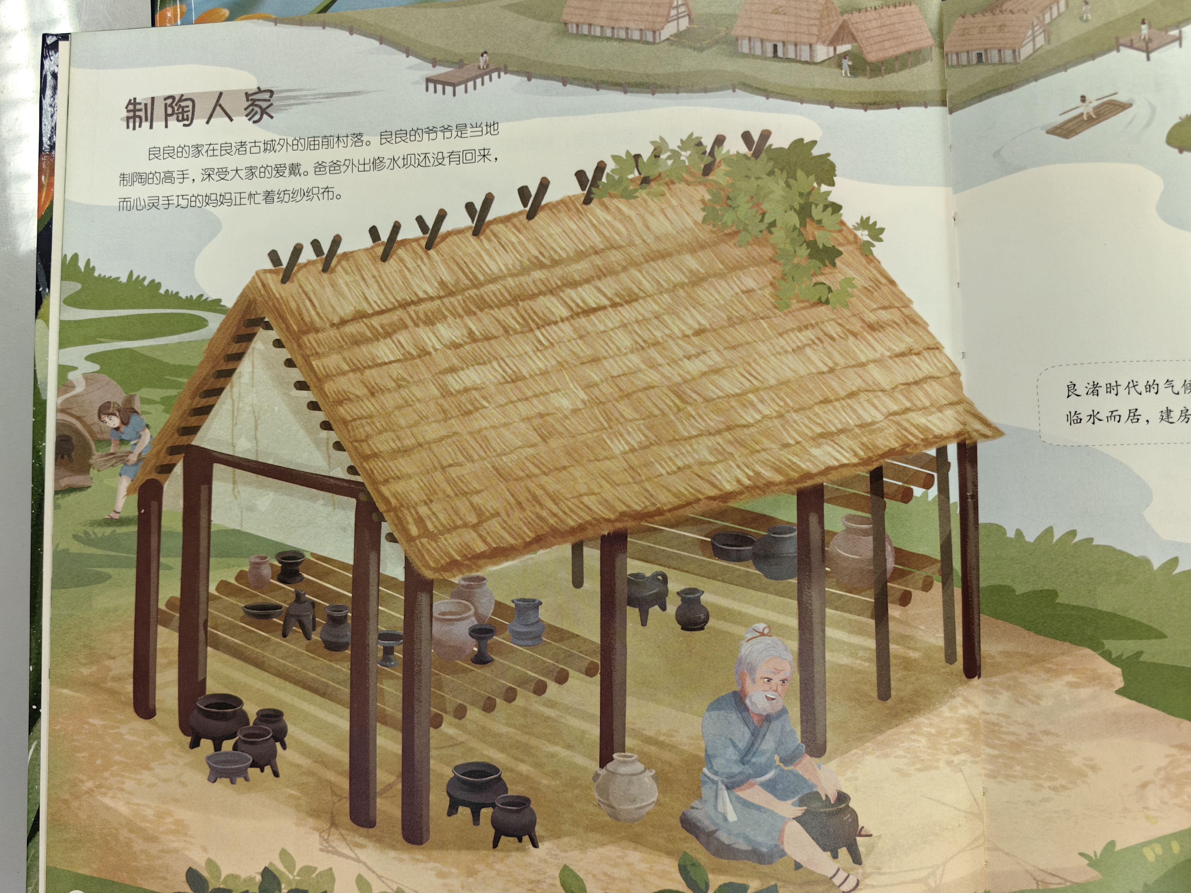这套关于良渚的儿童绘本,插画的房屋和展厅里的对比,真的很还原!太厉害了