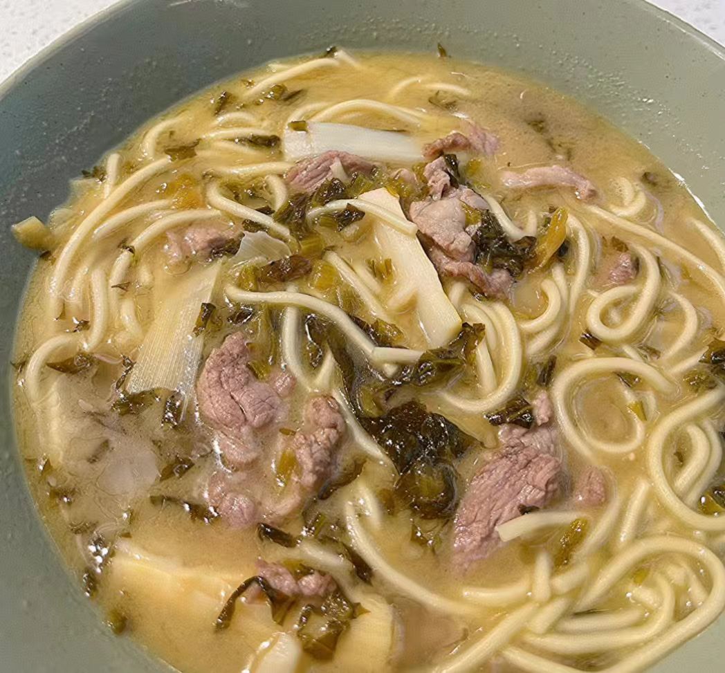 杭州人真的很喜欢吃面,早上吃上一碗片儿川幸福加倍! 片儿川汤底浓郁鲜美, 笋片、肉丝、雪菜真的可以鲜掉眉毛。