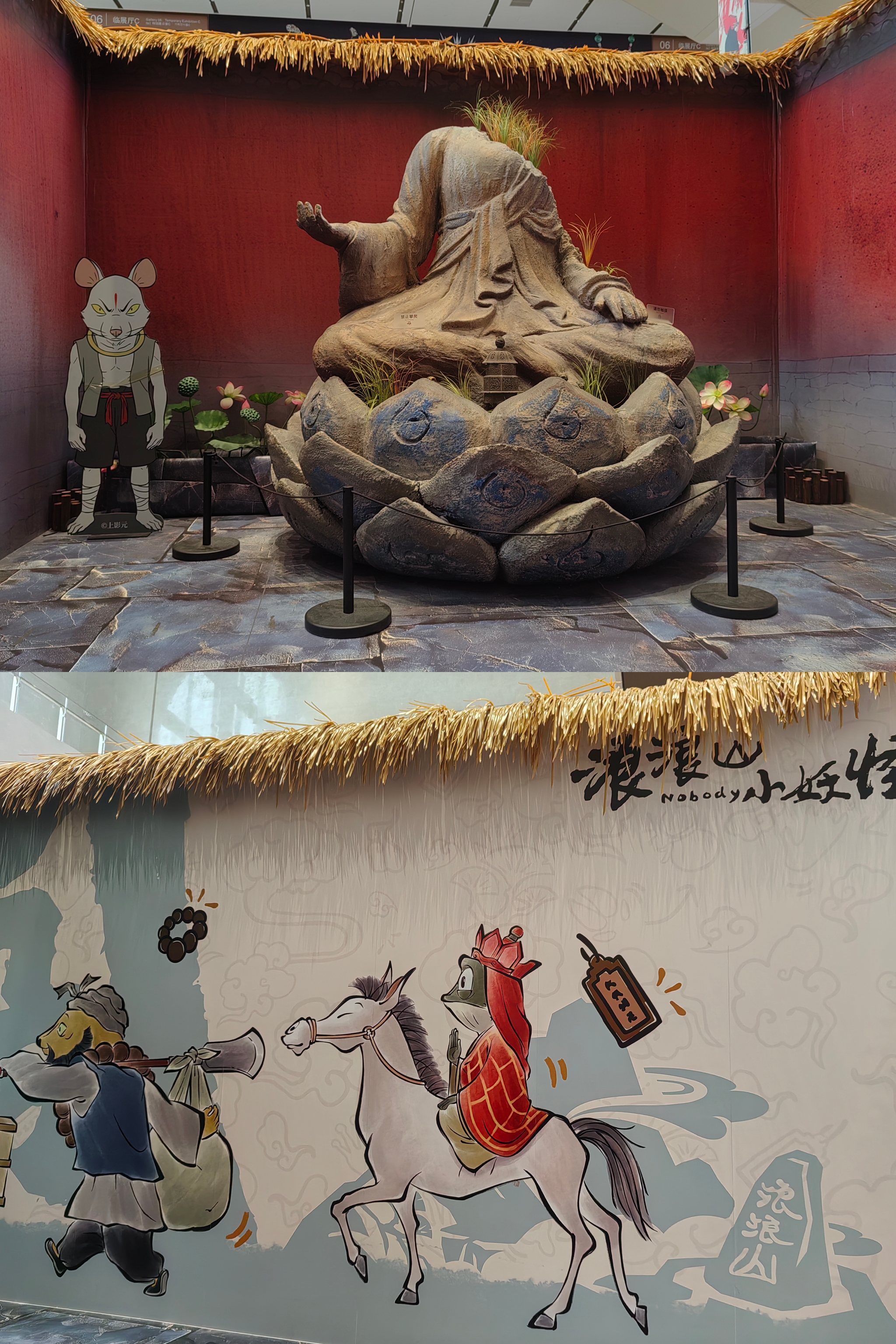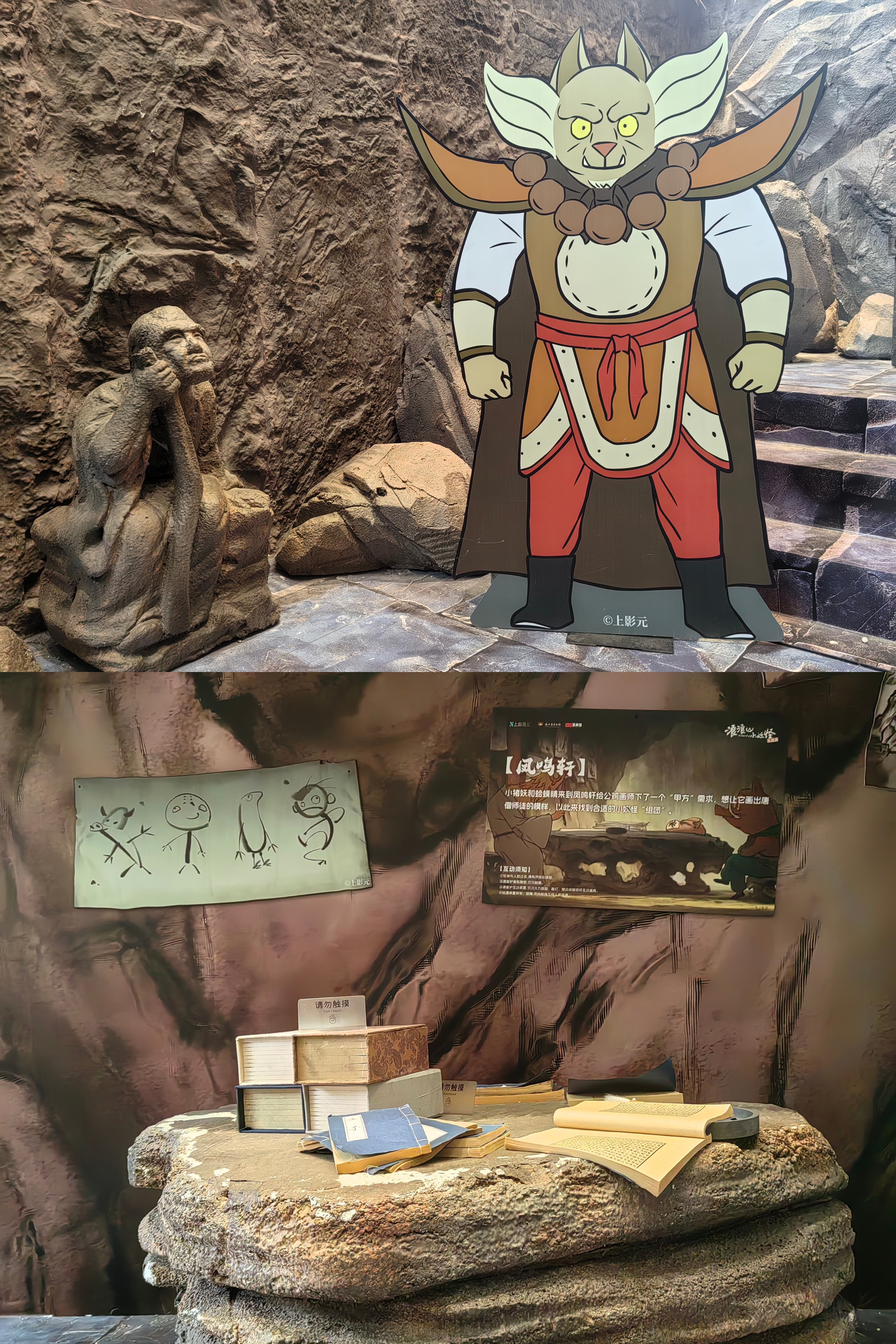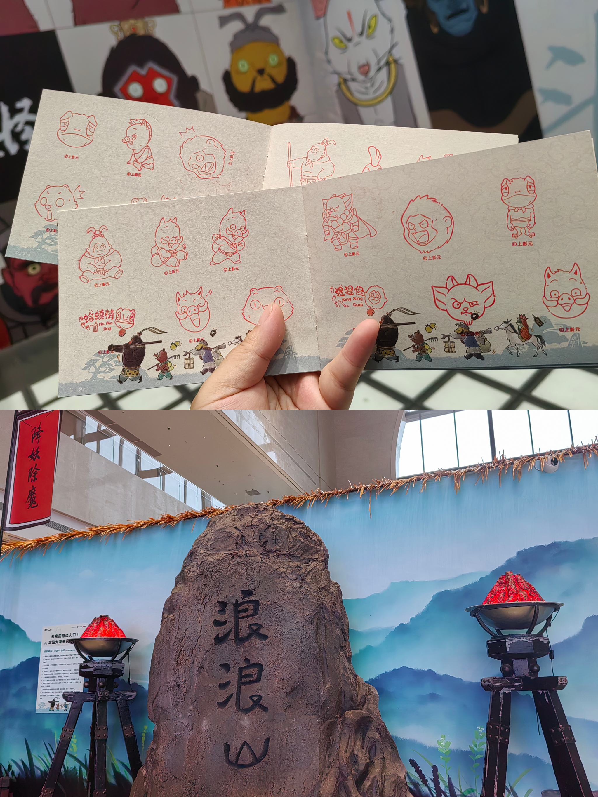 周末来浙江博物馆,看《浪浪山的小妖怪》首展。展厅不大,主要是互动游戏和集章,还原了小雷音寺和双狗洞的部分场景。 适合盖章控和游戏控,用时40min,遛娃可能会更久。59米含透卡、集章册和徽章等特典礼包,相当超值。贴纸搭配导览册做个手账,还挺别致的,“猪事顺利,呱目相看”。 还原了群妖斗法的动画场景,配合热血台词,让人梦回大电影,比如“要是见死不救,取经又有何用”。 破次元的闯关游戏都挺简单的,击鼓战妖魔,格格部落踩蓝色,皮影人接元宝,用沙包打怪、用脚踩怪,决战黄梅怪,分分钟大汗淋漓! 收费印章超多,章面偏小,墨很清晰,文创产品比问童子家不要便宜太多。 不谙世事的孩子,只是踩影子就笑得开怀,可生活中负重前行的成年人,谁又能笑着走出浪浪山呢。 迷失在社会规训中,对抗着潜规则,又有几人能活出自己喜欢的模样呢!