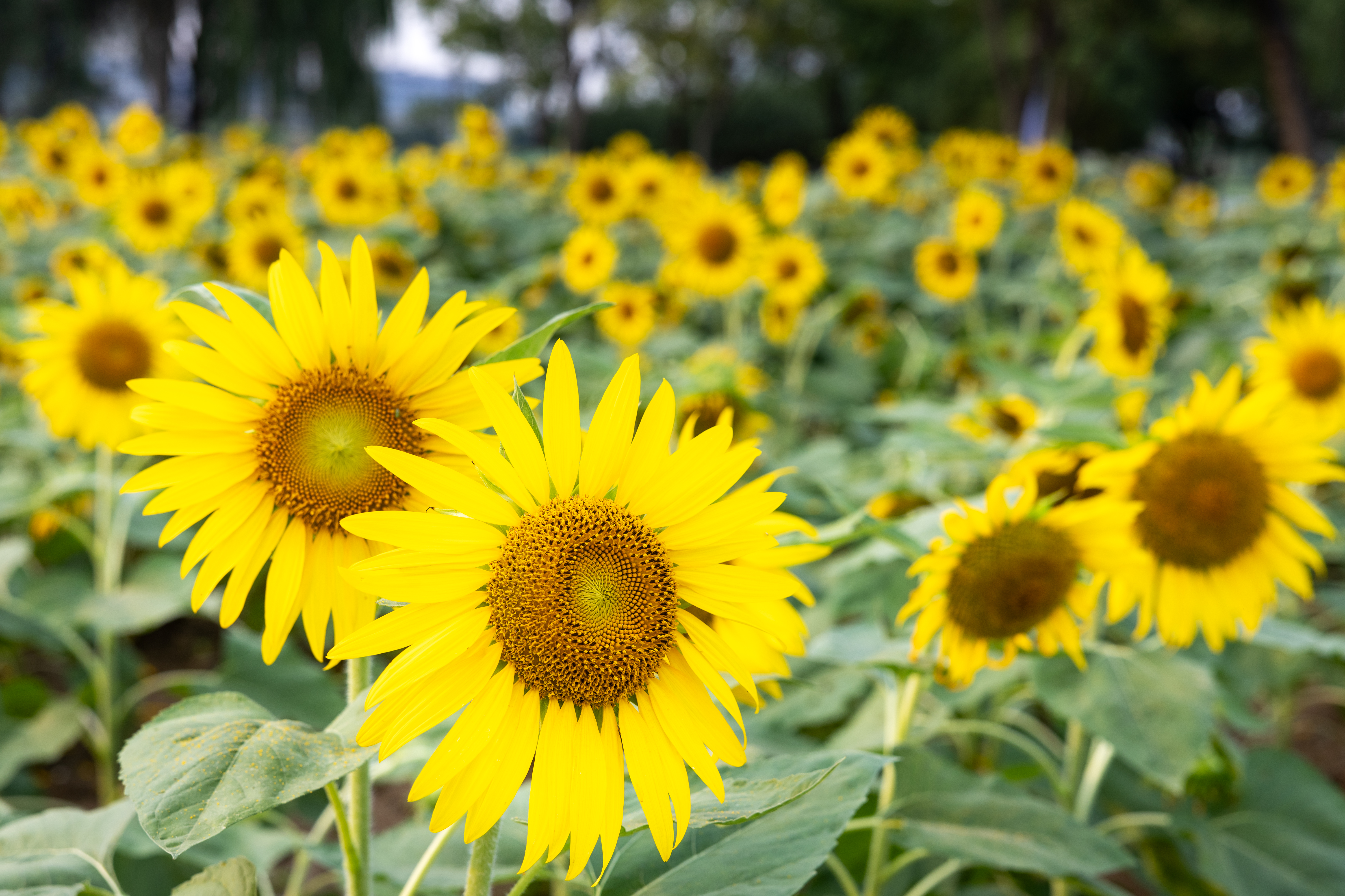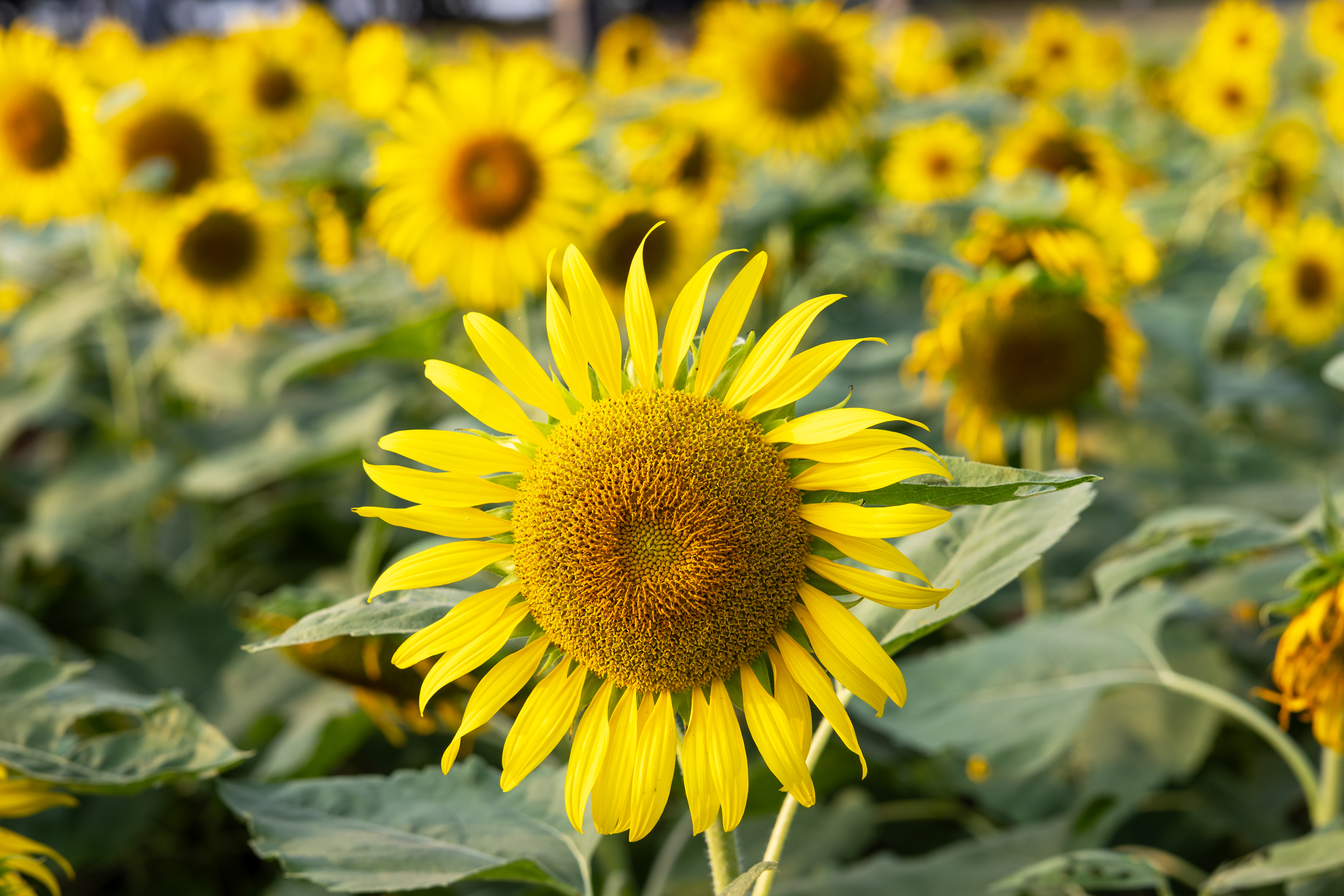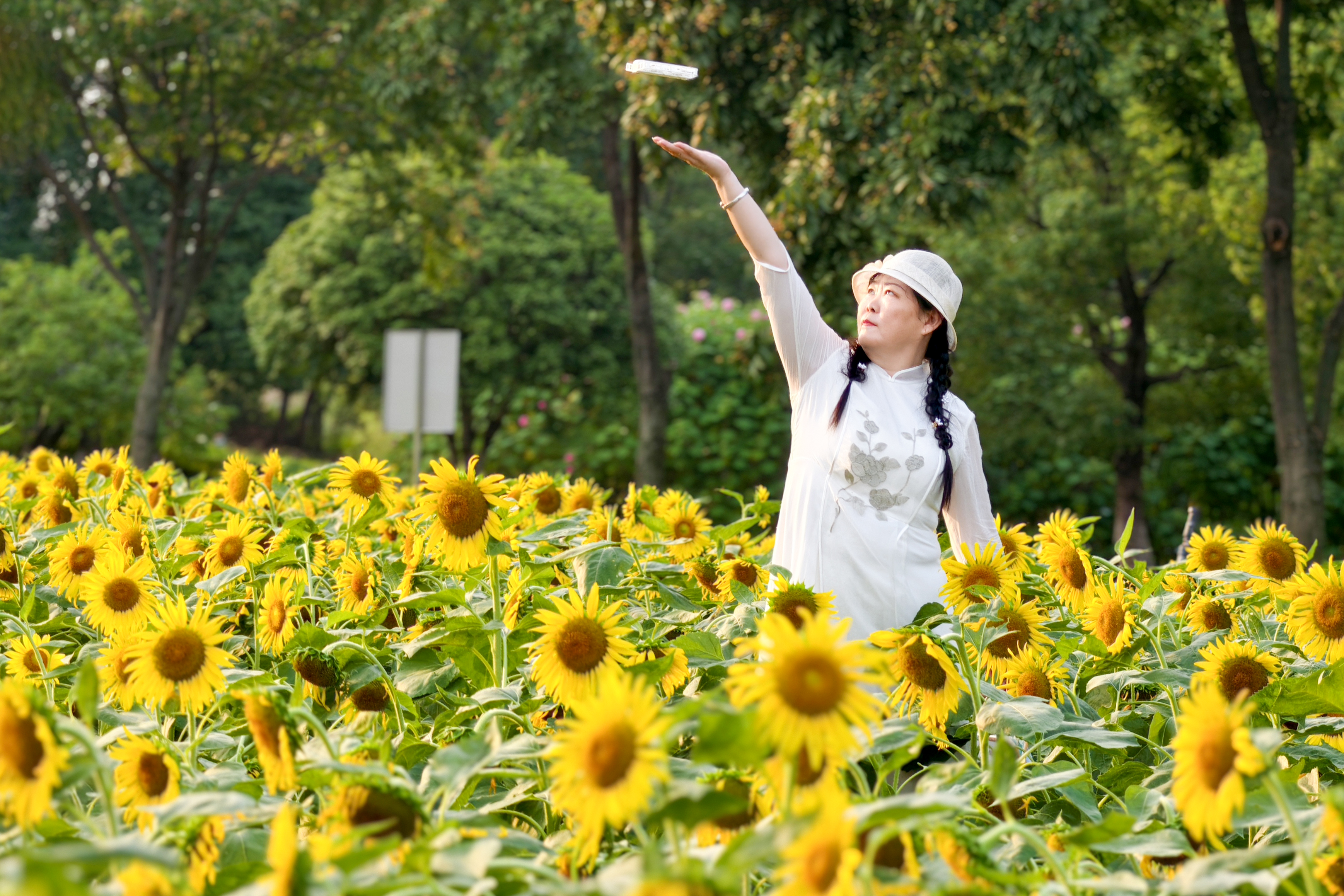 长兴三河湾看向日葵追太阳 向日葵开得正盛,花盘圆滚滚,风一吹,园盘晃悠悠,活像一个个装满阳光的圆瓷盘,外层那黄色的齿边儿齐刷刷。夕阳洒金光,向日葵治愈系!