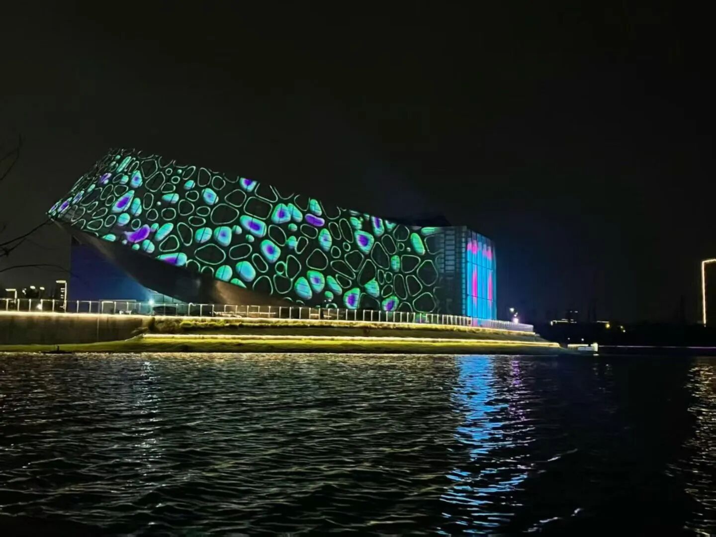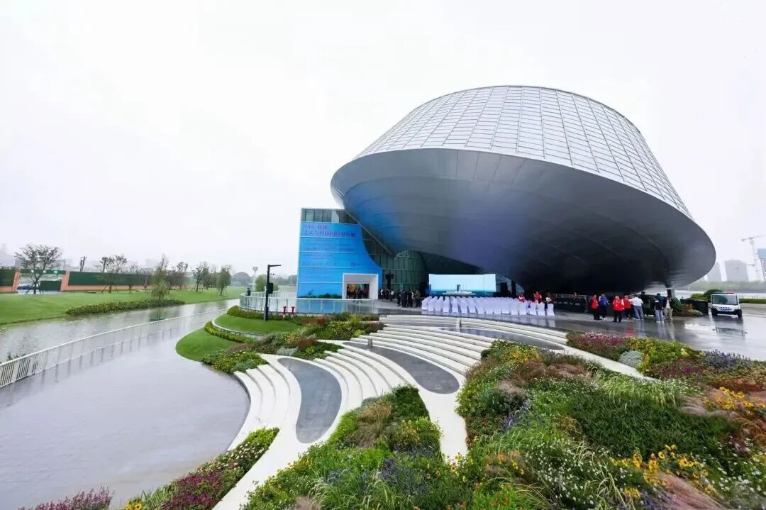 良渚玉湖公园里的余杭美术馆启用了,颜值打几分? 余杭美术馆建筑面积为6160平方米。馆身以双环同构的圆璧之形,营造出“悬浮”于天地之间的意象