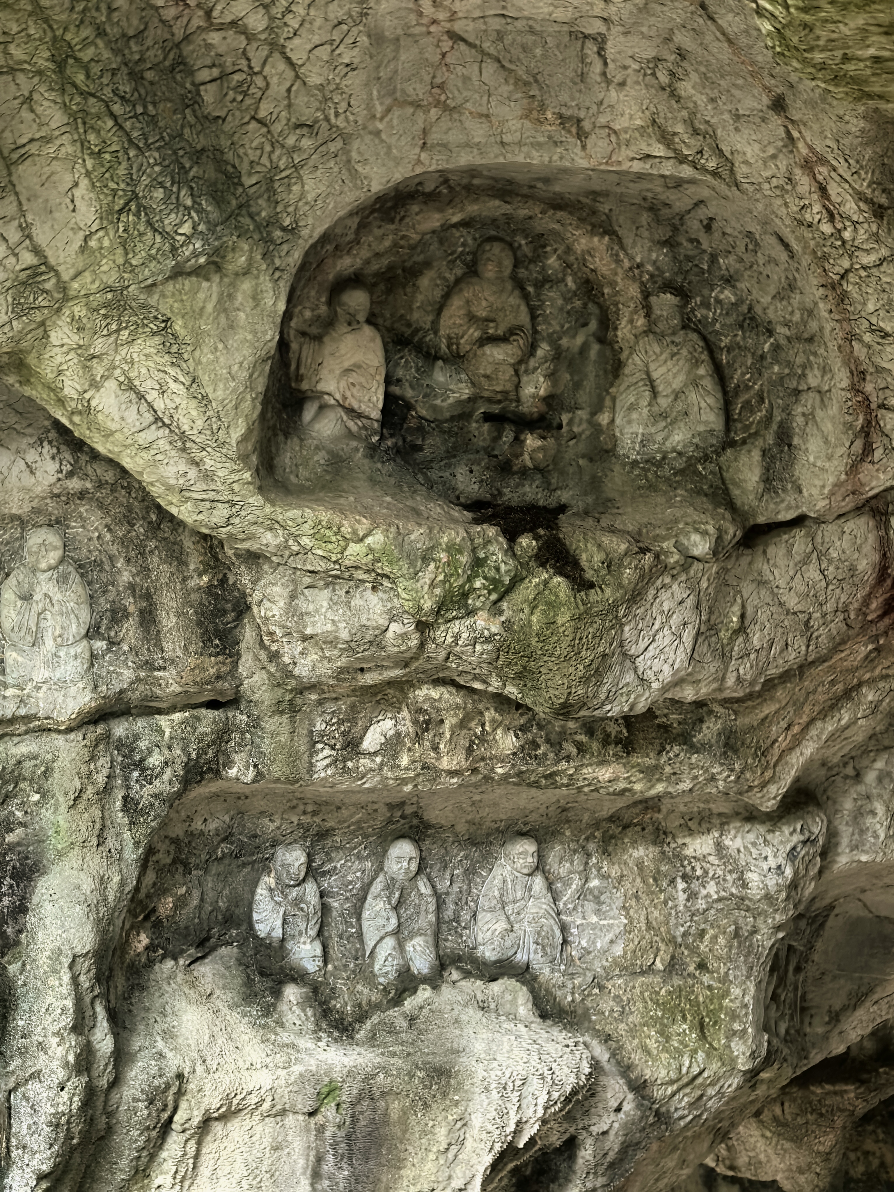 秋意缱绻,石屋洞时光的幽梦里,石刻神像星罗棋布,或古朴苍劲,或灵动飘逸,每一座都镌刻着岁月的故事,似在诉说着往昔的繁华与沧桑。 熙宁六年的出游朋友圈赫然在目,恍惚间与苏轼苏颂隔空相逢。那年两位老市长与友人结伴西湖一日游,或许曾在此驻足,赏这奇石怪洞,吟诗赋词,将满腔才情挥洒在这方天地。 园内桂香隐隐萦绕,似有若无,撩拨着心弦。那淡黄的花朵,藏在翠绿的枝叶间,如点点繁星,散发着独属于秋的温柔与芬芳。在这石屋洞中,秋的韵致、历史的厚重与桂香交织,让人沉醉不知归路。