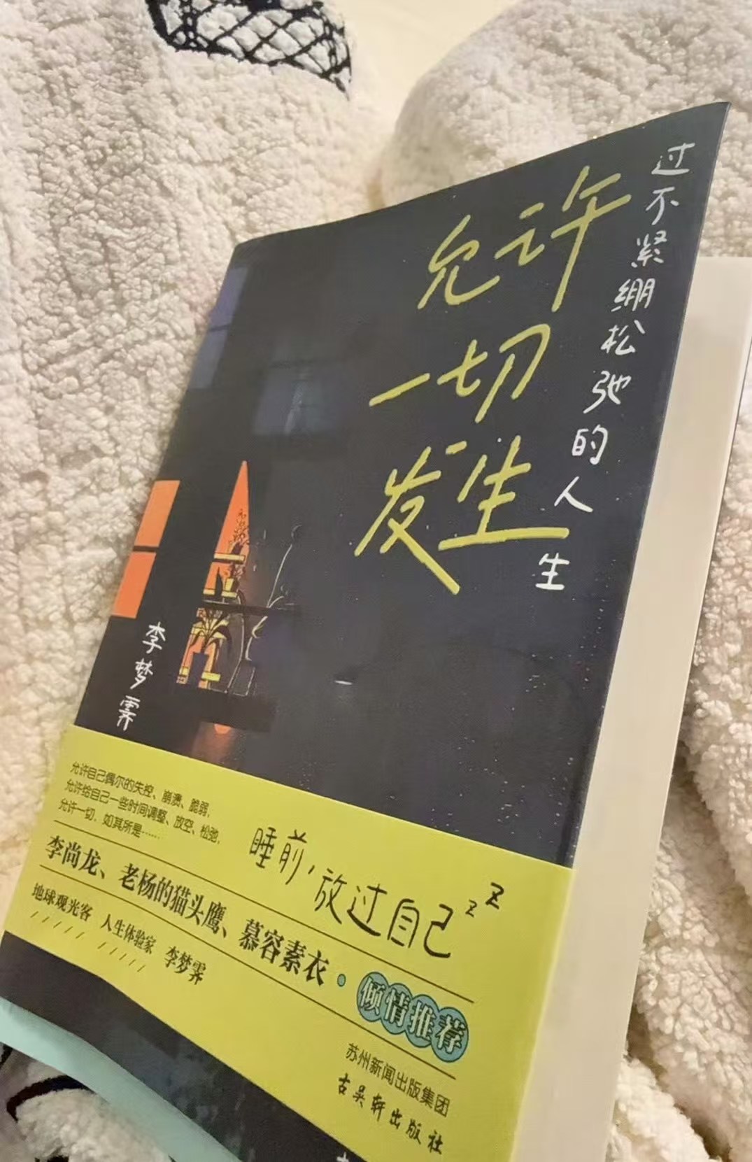 秋天已悄然而至,秋风微凉,没有什么比沉浸在书的世界更惬意的了。 当我们不开心的时候,不妨读读这本《允许一切发生》,很多也就释然了。她书中的话,治愈我们的心灵,允许一切发生,允许不完美,允许一切,如其所是。一个敢于为自己做决断,生活在热爱里,不要去过度焦虑未来,爱自己,允许停下脚步,最终活成自己想要的样子