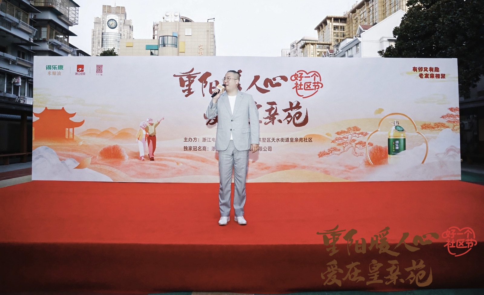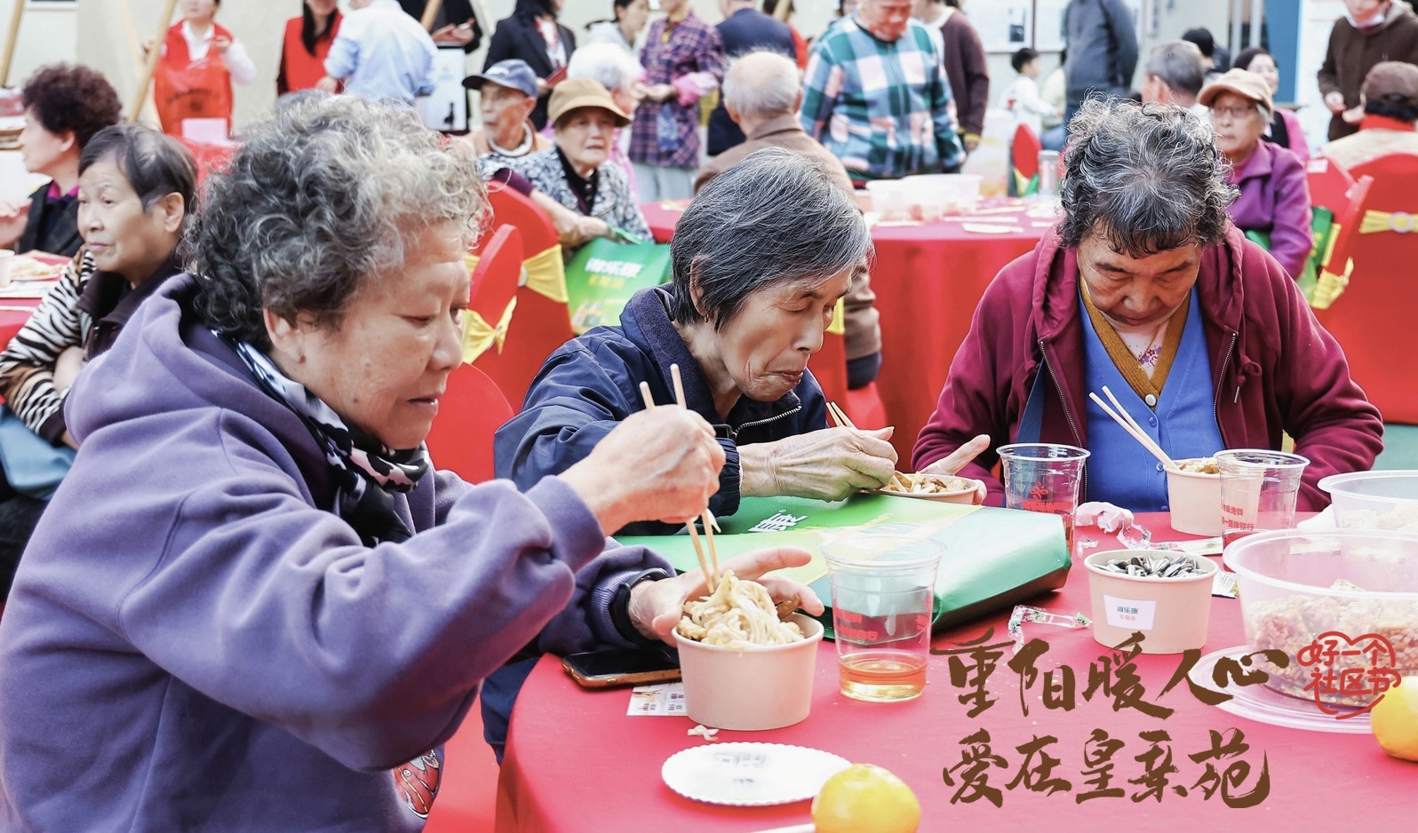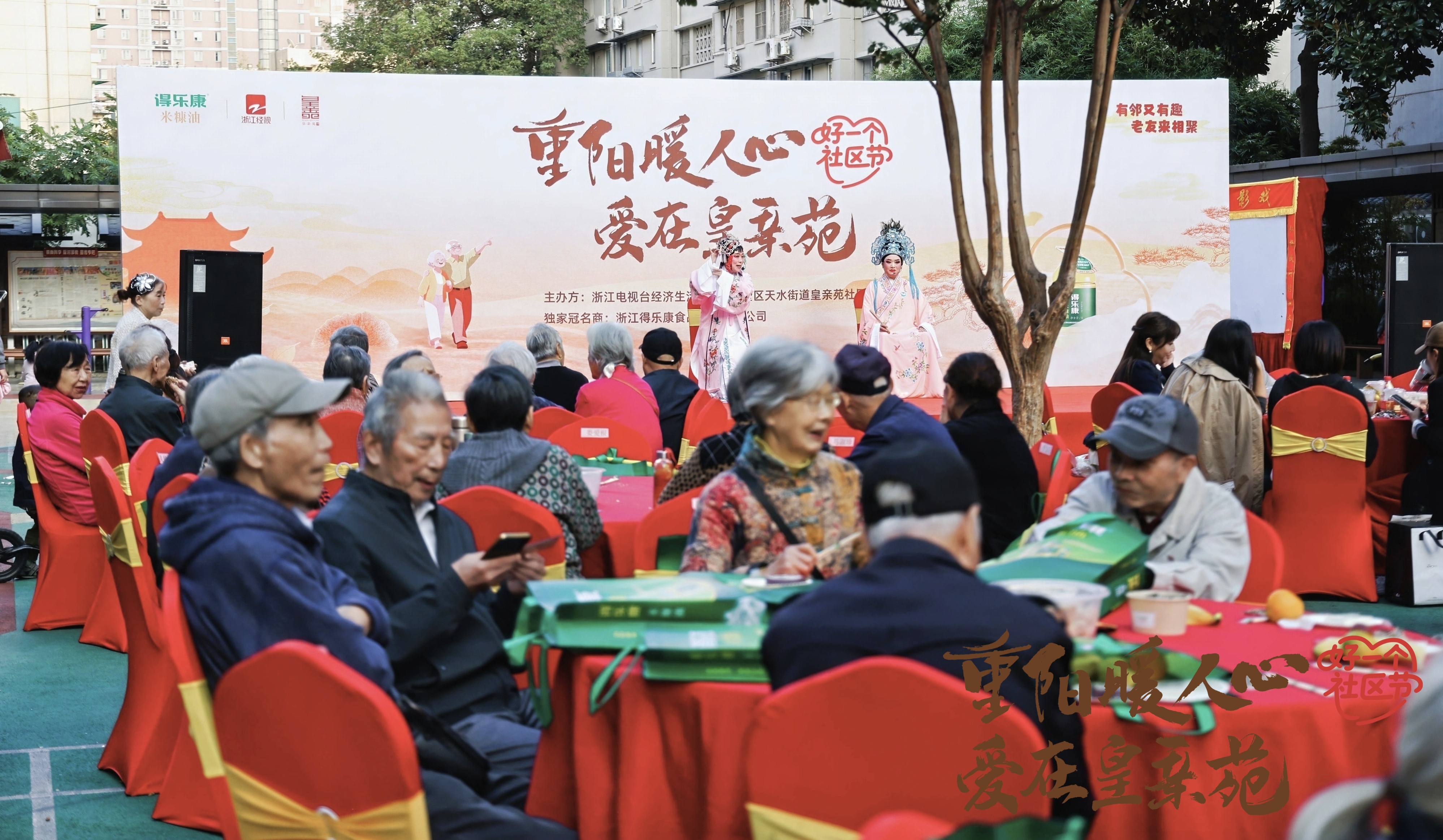 文润社区 浓情重阳 | 皇亲苑社区开展重阳节活动,温暖整个金秋! 10 月 28 日,皇亲苑社区联合浙江经视、得乐康等单位共同在社区健身广场开展“重阳暖人心,爱在皇亲苑”主题活动。 台上:相声、皮影戏、合唱接连登场,热闹不停;台下:老人围坐尝长寿面、重阳糕,一口含心意,一幕显温情。这场重阳活动让 “尊老爱老” 的传统美德在欢声笑语中静静流淌,也为这个金秋留下了最动人的记忆。