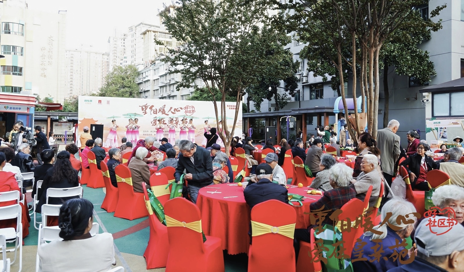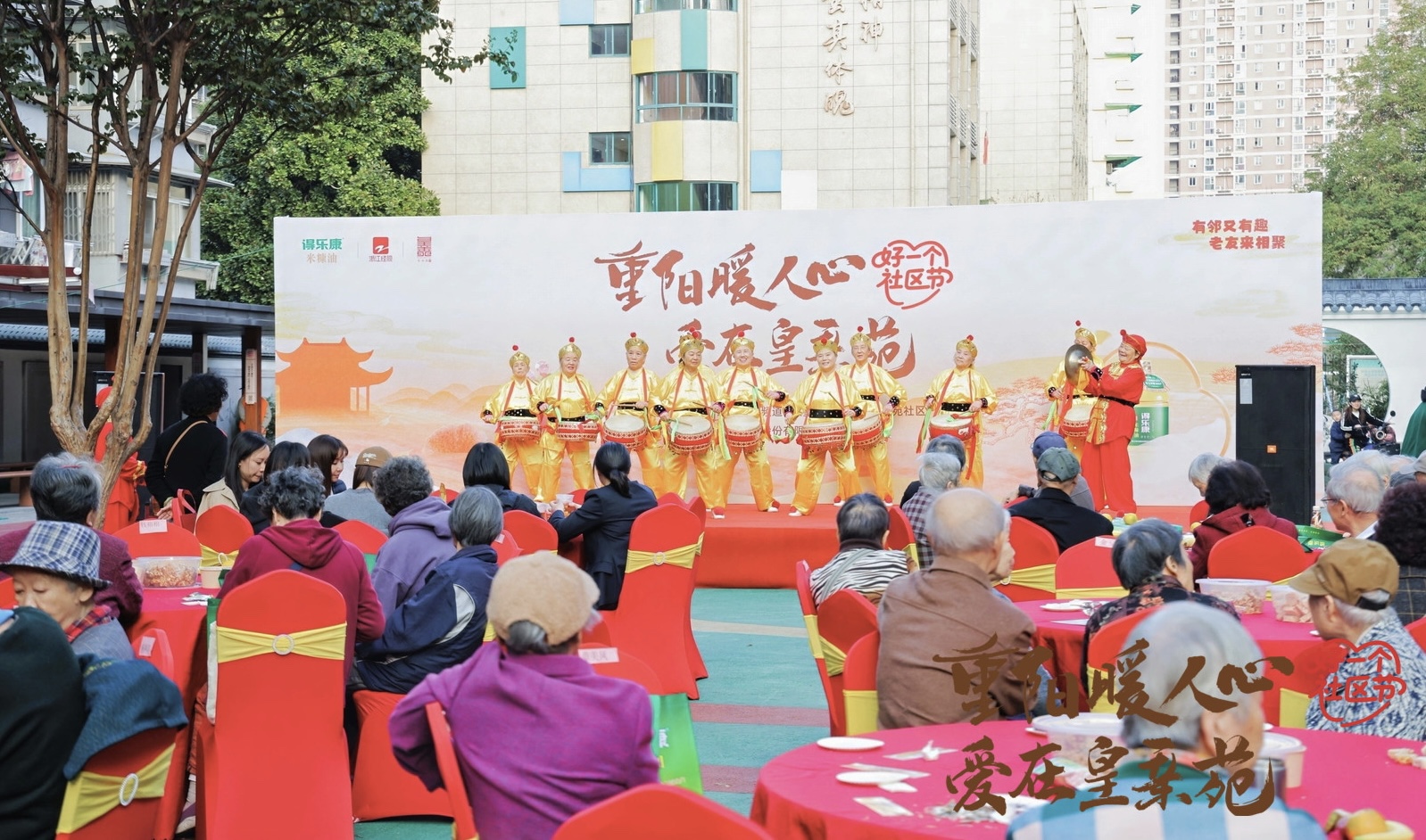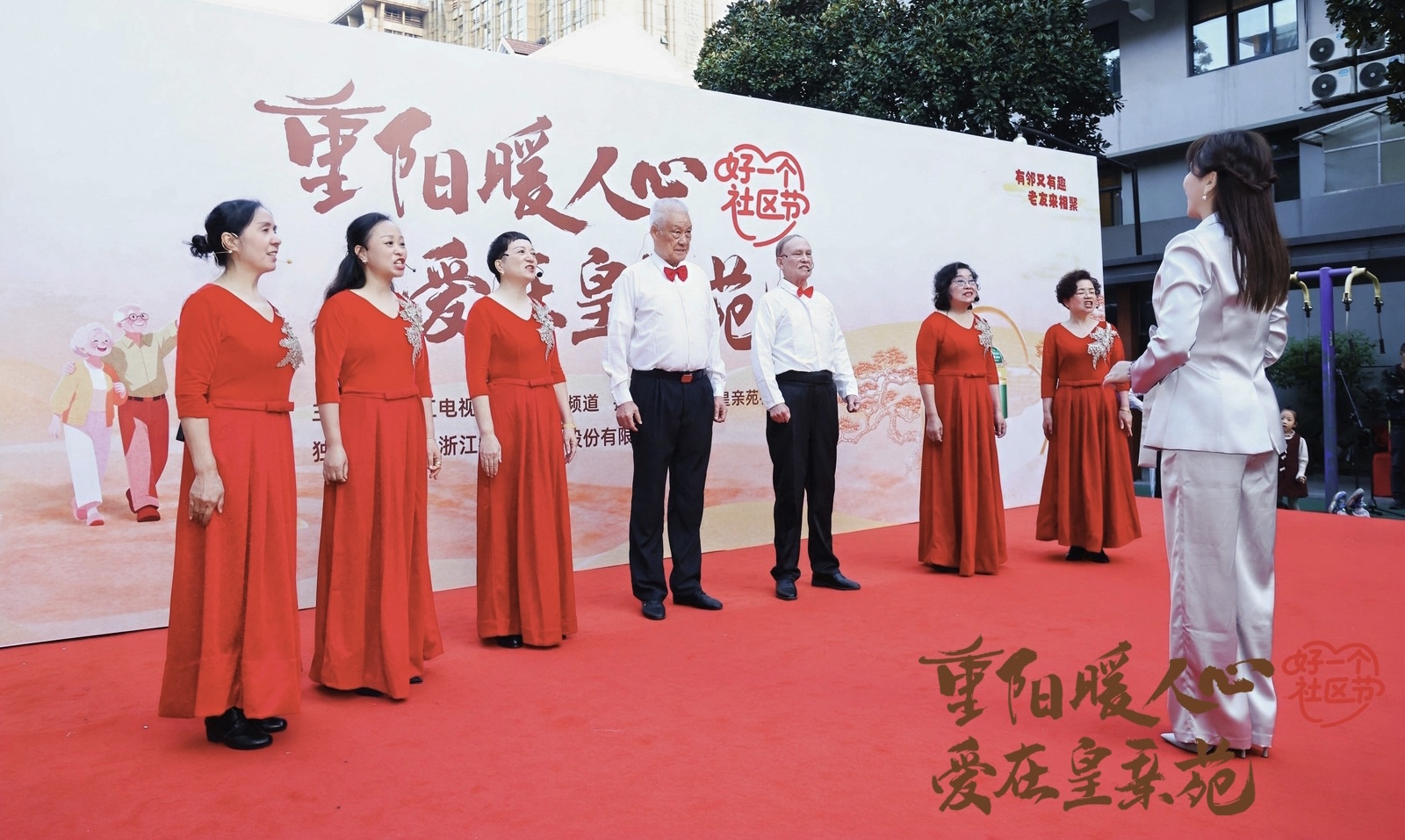 文润社区 浓情重阳 | 皇亲苑社区开展重阳节活动,温暖整个金秋! 10 月 28 日,皇亲苑社区联合浙江经视、得乐康等单位共同在社区健身广场开展“重阳暖人心,爱在皇亲苑”主题活动。 台上:相声、皮影戏、合唱接连登场,热闹不停;台下:老人围坐尝长寿面、重阳糕,一口含心意,一幕显温情。这场重阳活动让 “尊老爱老” 的传统美德在欢声笑语中静静流淌,也为这个金秋留下了最动人的记忆。