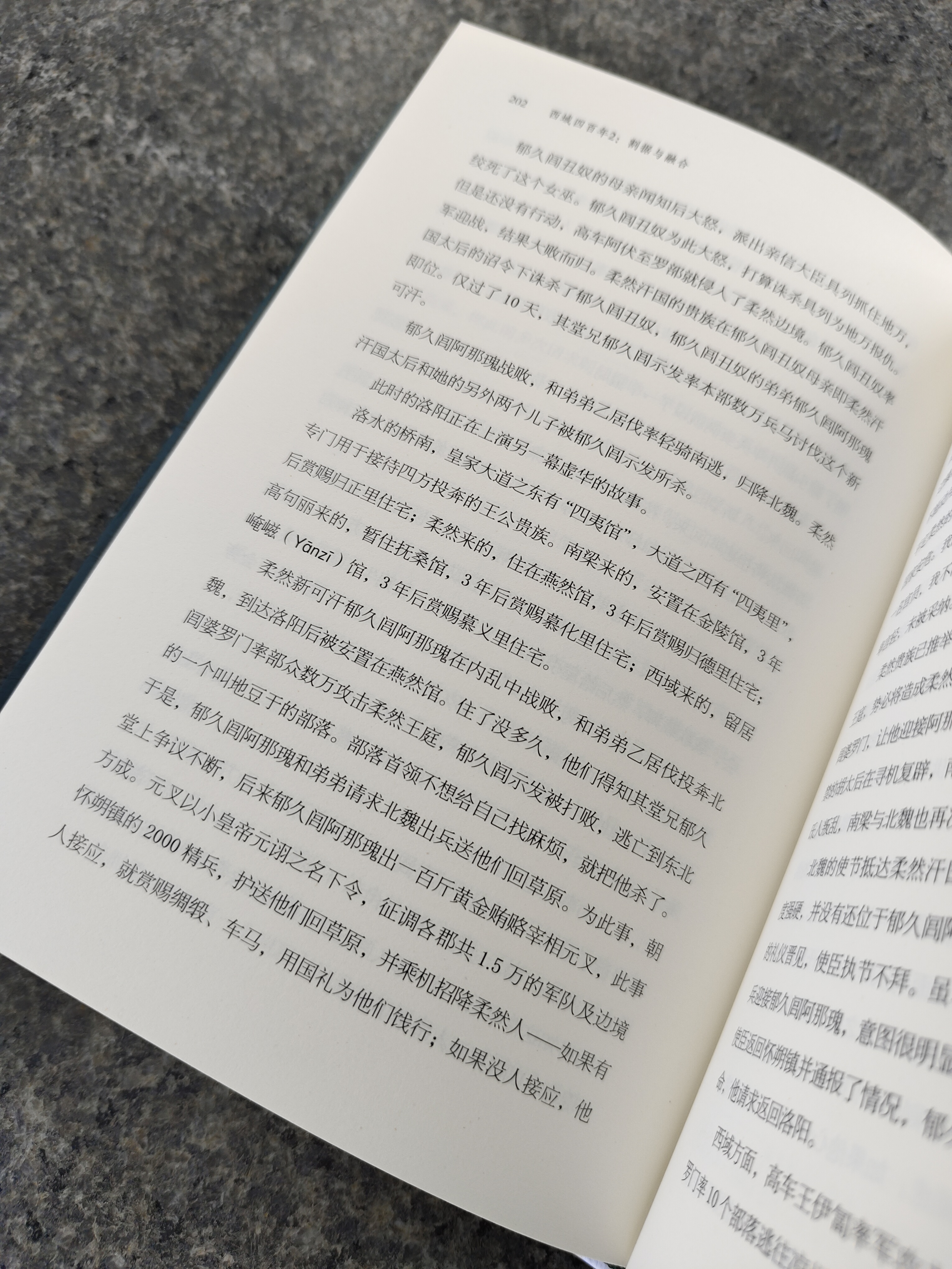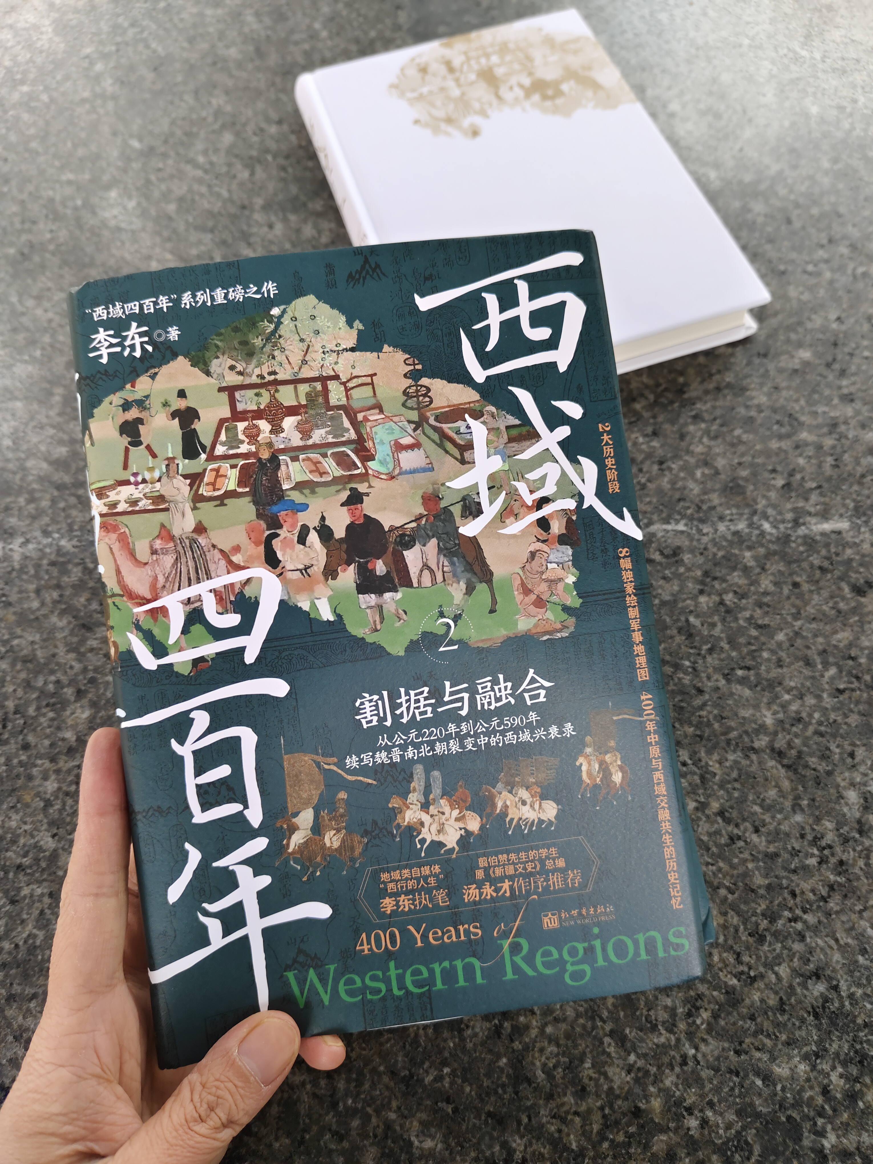 历史文化类书籍推荐阅读49:《西域四百年 2:割据与融合》 读过李东撰写的《西域四百年:汉匈争夺战》,令我对那片遥远的土地有了许多深刻的认识,没想到,这部书居然还有续集。想都没想,立马入手《西域四百年 2:割据与融合》。 这本书延续了李东前一部的风格,在宏大的历史叙事面前,作者不仅着重于大的历史发展脉络,同时也着眼于对历史有较大影响的小人物、小事件。正是这样一种整体与细节兼顾的框架下,将我们带入到汉匈之战之中。 400 年的纷纷扰扰,中原发生了重大变故,西域也上演了一幕又一幕历史大剧,对西域的认知,许多人停留在胡人或游牧民族这几个词上,或者再多些便是丝绸之路、敦煌壁画...... 在我心里,却一直有个谜,那就是匈奴人后面去哪了? 作者没让我失望,开篇便交代了这件事。作者认为,匈奴人并没有“消失”,而是与汉人或其他民族融合在一起了。比如,建安二十一年(公元 216 年),曹操将南匈奴单于呼厨泉安置在邺城,把南匈奴一分为五,使其与当地汉人杂居。曹魏代汉后,南匈奴贵族宣告自己是汉王朝刘姓皇族的外孙,取消 “挛提” 姓氏,改姓 “刘”,以官方形式主动融入汉族。 还有一部分人在匈奴内部分裂后,融入到其他民族里,有的融入到了鲜卑族,有的则与乌孙人、塞人、月氏人、羌人等融合,形成了其他族群。 还有一部分匈奴人很可能到达了欧洲。公元 4 世纪,欧洲出现了匈人,其身材、面庞和风俗习惯有东方人的特征,故有学者猜想认为他们是中国汉代北匈奴的后裔。 与第一部相比,这部作品更注重于描述民族融合、变迁与发展的过程,第一部主要讲述了汉匈之间持续 400 多年的争夺战,而第二部则从公元 220 年东汉末年曹魏建立到公元 590 年隋文帝一统中国,讲述了魏晋南北朝裂变中的西域兴衰录。这一过程中,虽然也有战乱与纷争,但更多的是文化与技术的交流互通,这为大唐开创国际盛世奠定了强有力的基础。