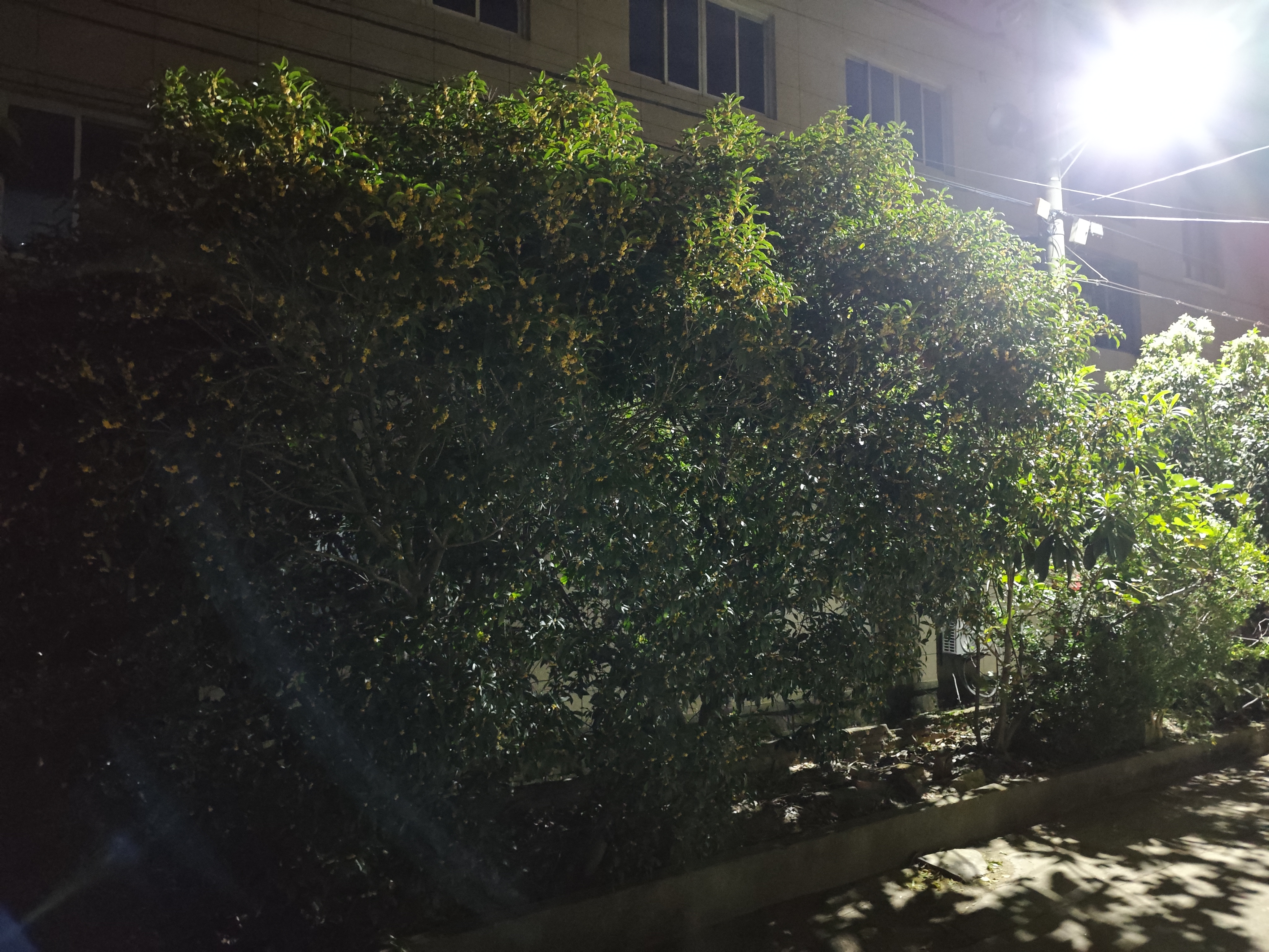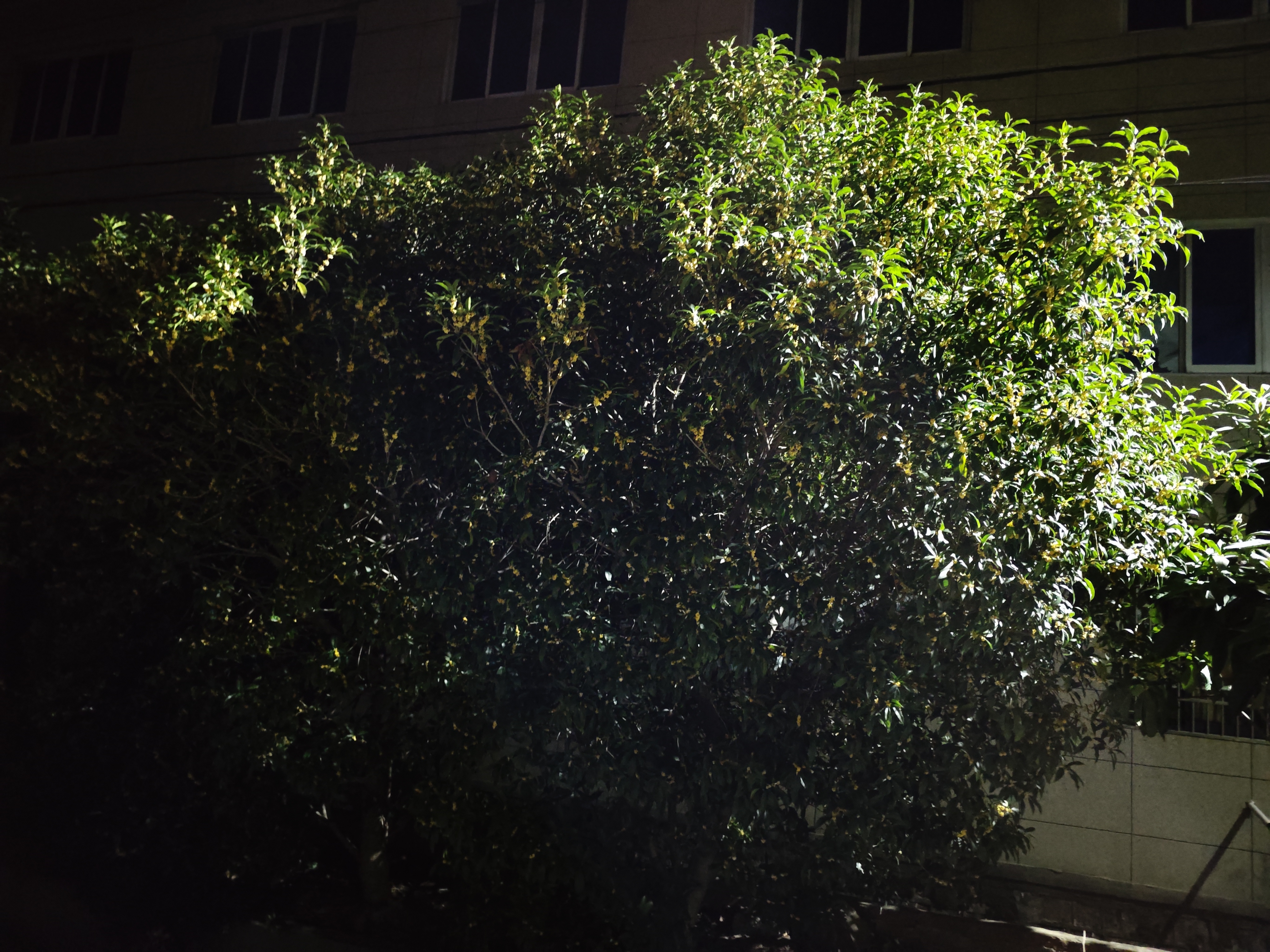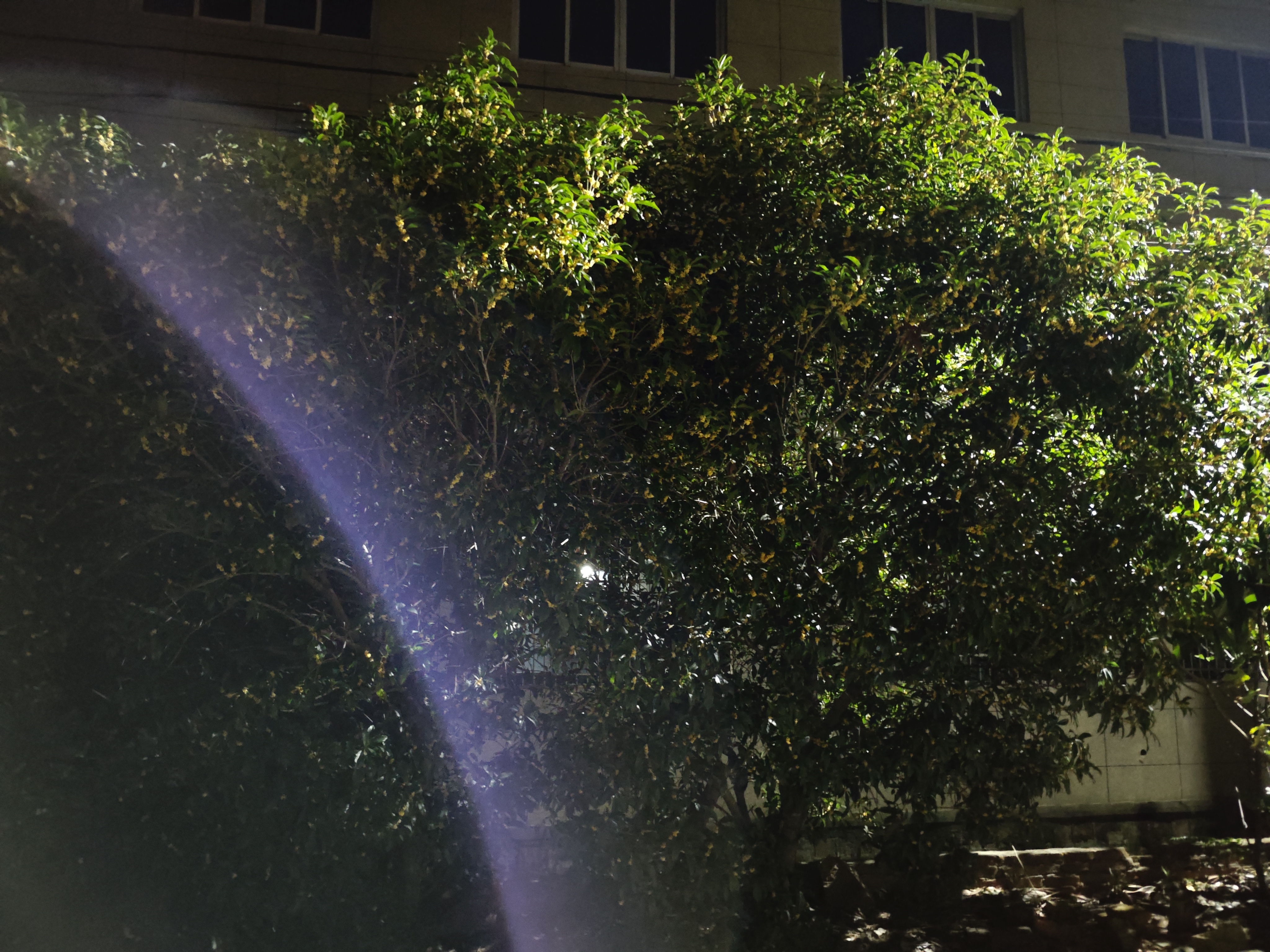 夜桂与光晕 夜色如一块被墨汁晕染的丝绒,温柔地裹住了楼宇的棱角。那株桂树,便在这夜的怀抱里,舒展着它葱茏的梦。 月光?不,更像是某盏灯,悄悄漏下的一缕牵挂,斜斜地切过桂树的枝叶,在深绿的幕布上,织出一道淡紫的虹。那光,似是带着温度的手指,轻轻拨弄着桂叶的琴弦,每一片叶都在这触碰里,微微颤动,将藏在脉络里的心事,抖落在夜的风里。 桂树的花,是夜的星子,细碎地点缀在绿浪间。它们怯生生的,却又忍不住,将那点金黄的秘密,酿成一缕缕甜香,随着风,随着光,悄悄漫溢。在光的轻抚下,那些小花仿佛镀上了一层朦胧的银边,像是从旧时光里走来的精灵,带着岁月沉淀的温柔,又带着此刻被光拥抱的雀跃。 楼宇沉默地立在桂树身后,窗棂里的黑暗,是另一个世界的入口。而桂树,是连接两个世界的桥,它用枝叶承接光的问候,用花香传递夜的私语。那道紫的光,像是时光的裂隙,让我们得以窥见,这寻常夜晚里,不寻常的温柔——桂树在夜中生长,光在桂间流转,而我们,是这温柔景致里,偶然驻足的、心怀感动的过客。